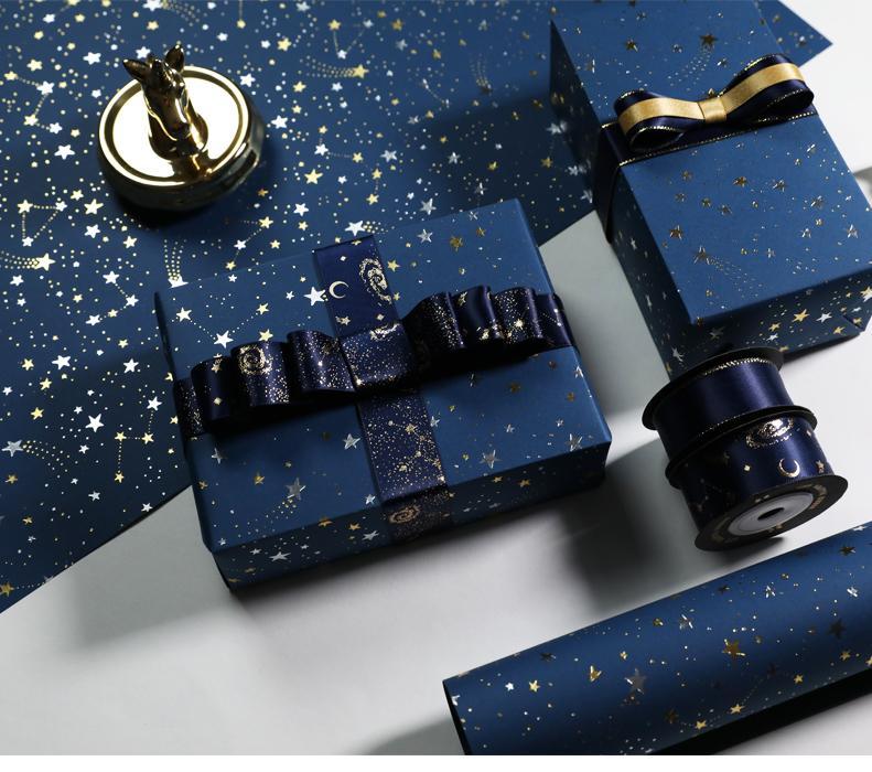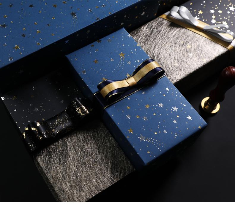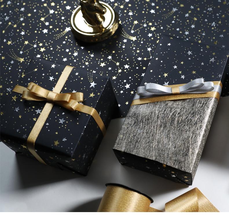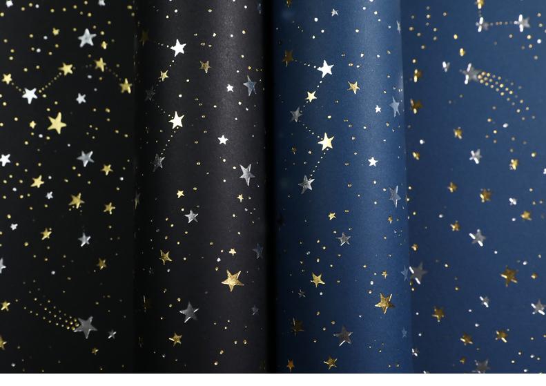 Papel de regalo original plateado con estampado en caliente de meteorito, caja de regalo, juguete para guardería, centro comercial, vacaciones, decoración artesanal.