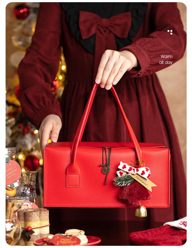 Portable leather bag, Portable leather bag + christmas card, Portable leather bag + christmas card + christmas tree bell pendant