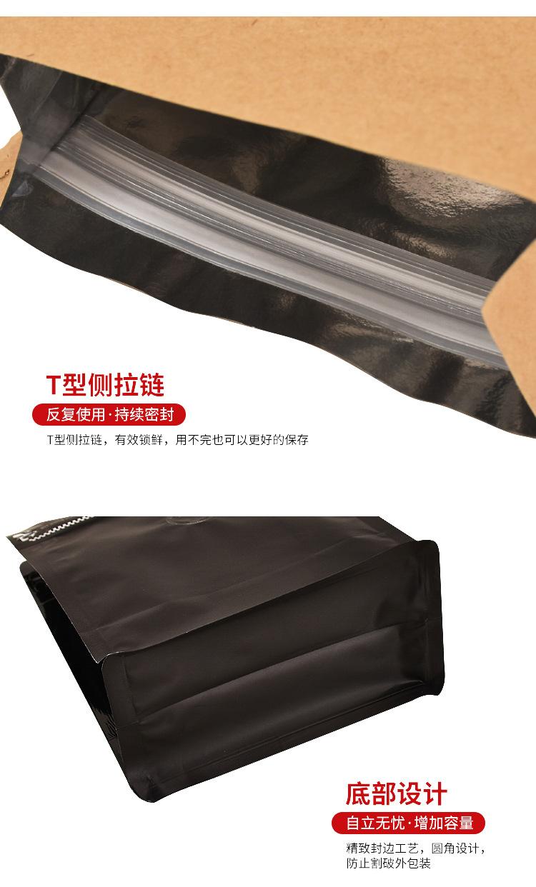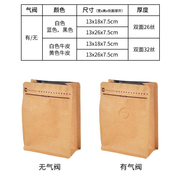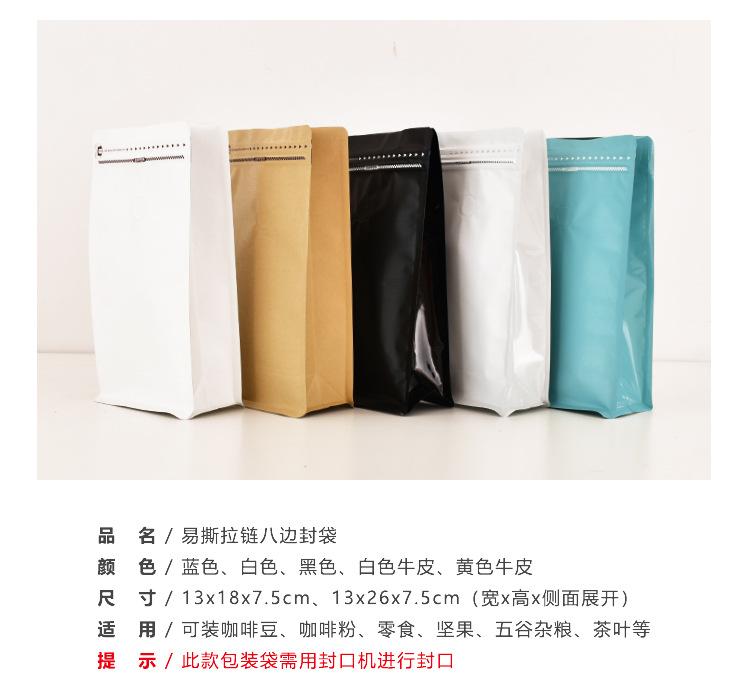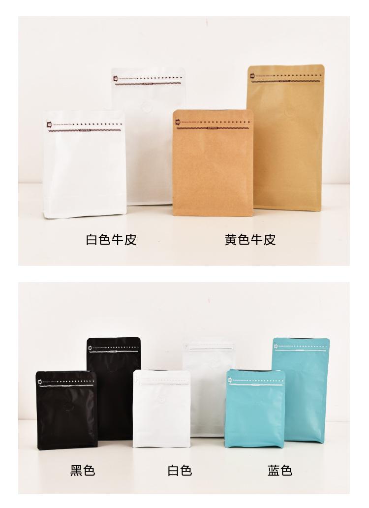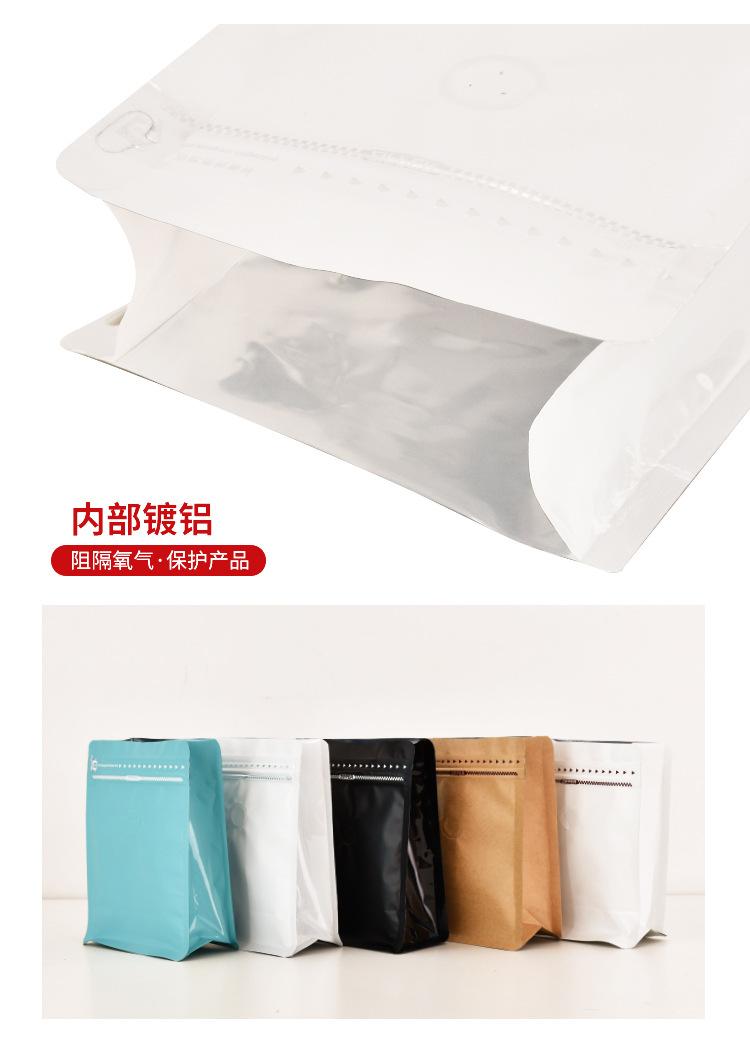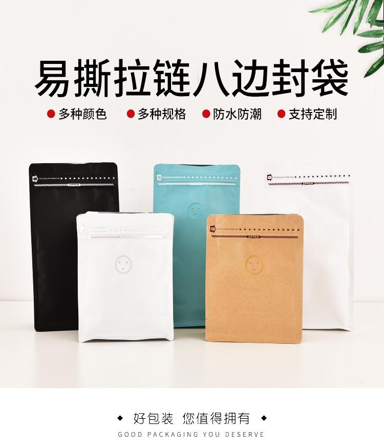 Bolsa para empaquetar granos de café, bolsa con válvula de aire unidireccional fija, bolsa de aluminio sellada de ocho lados de colores, bolsa de café sellada con papel kraft