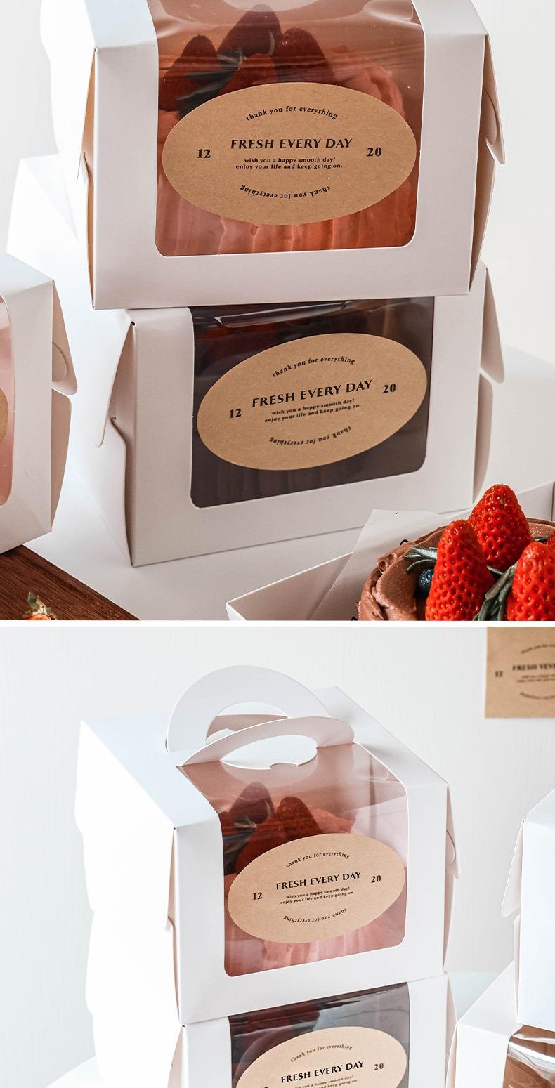 4inch korean window cake box + accessible luxury english transparent stickers - 40 pieces