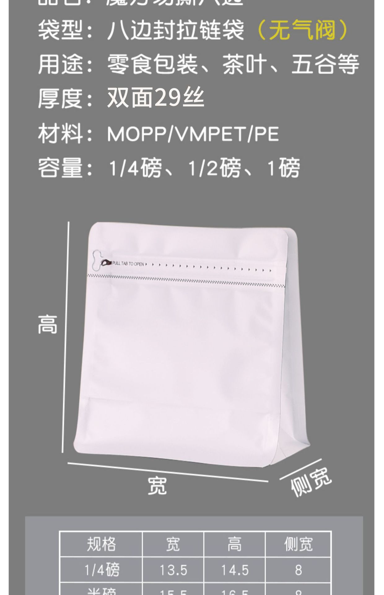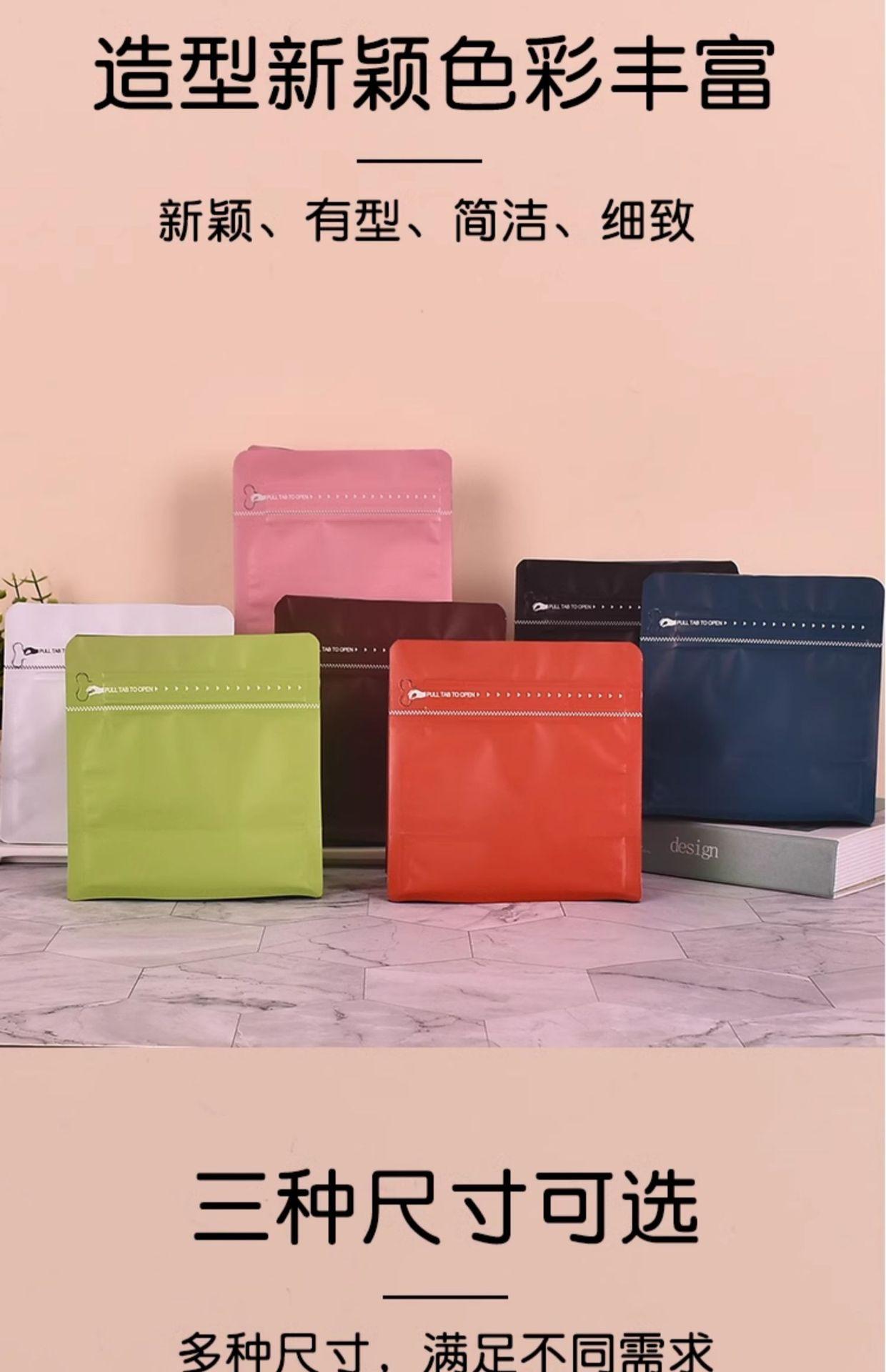 Bolsa de café colorida con válvula de aire unidireccional, cuadrada, con sellado de ocho lados.
