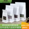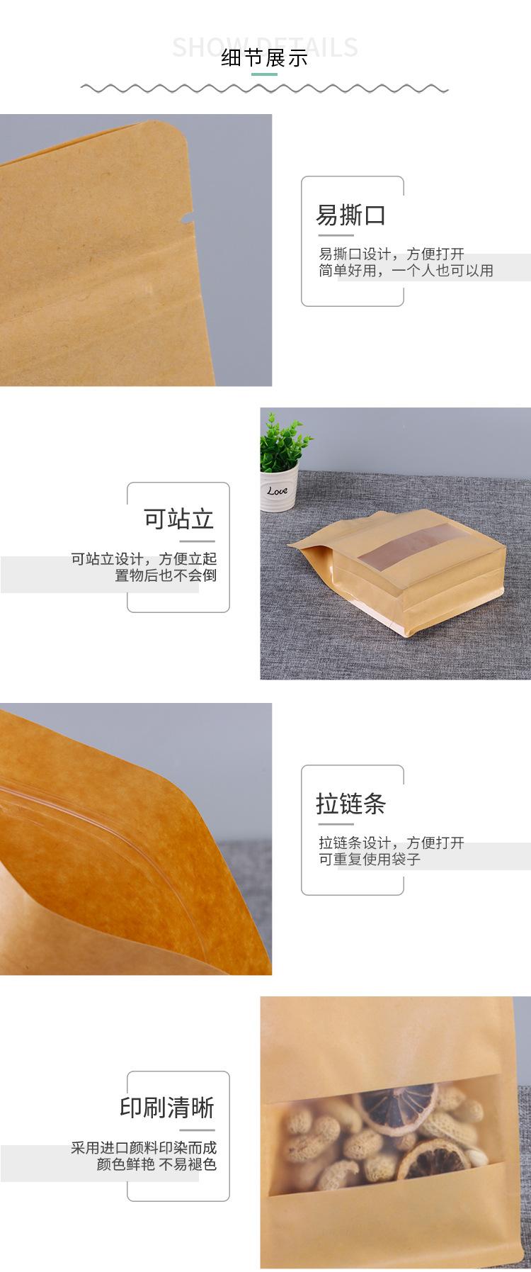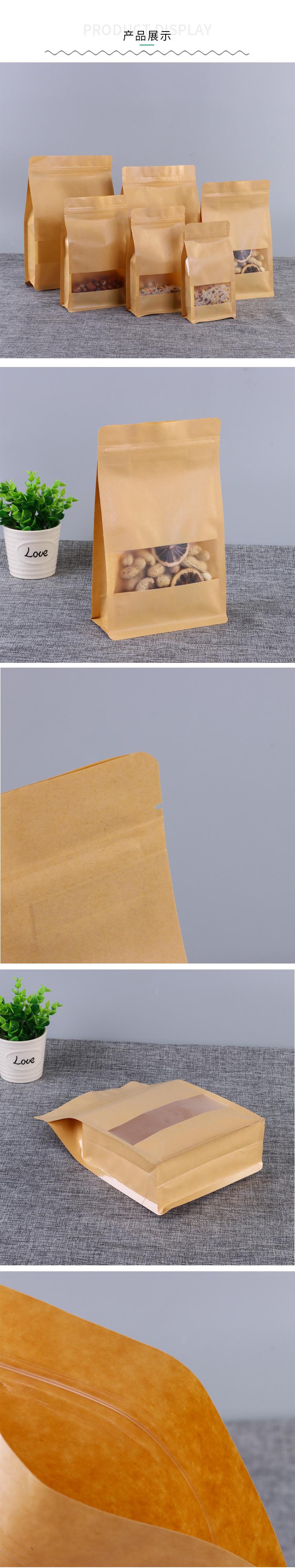 Bolsa de Embalaje de Papel Kraft Amarillo con Sellado por Ocho Lados para Té y Alimentos, Bolsa Stand-Up con Ventana, Bolsa de Papel Kraft con Cierre Zip, Biodegradable y Respetuosa con el Medio Ambiente