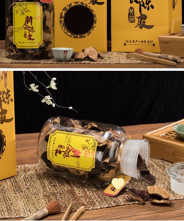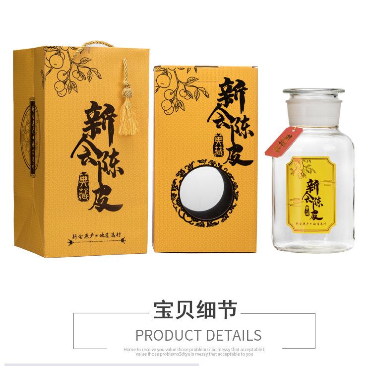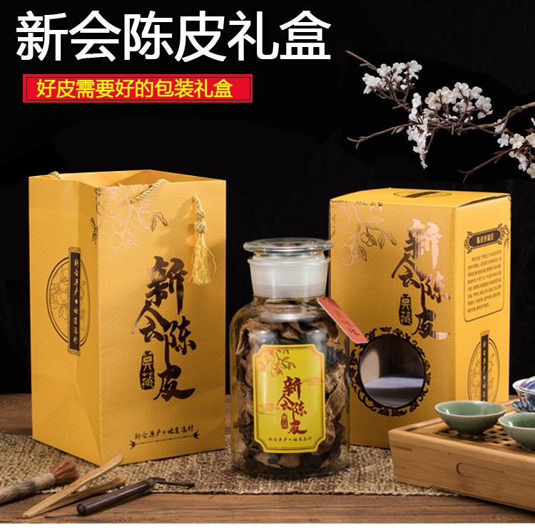 Nueva Caja de Regalo de Cáscara de Mandarina Xinhui 250g Caja Vacía Botella de Vidrio Amarillo Dorado Bolsa Caja de Regalo Tarro Sellado