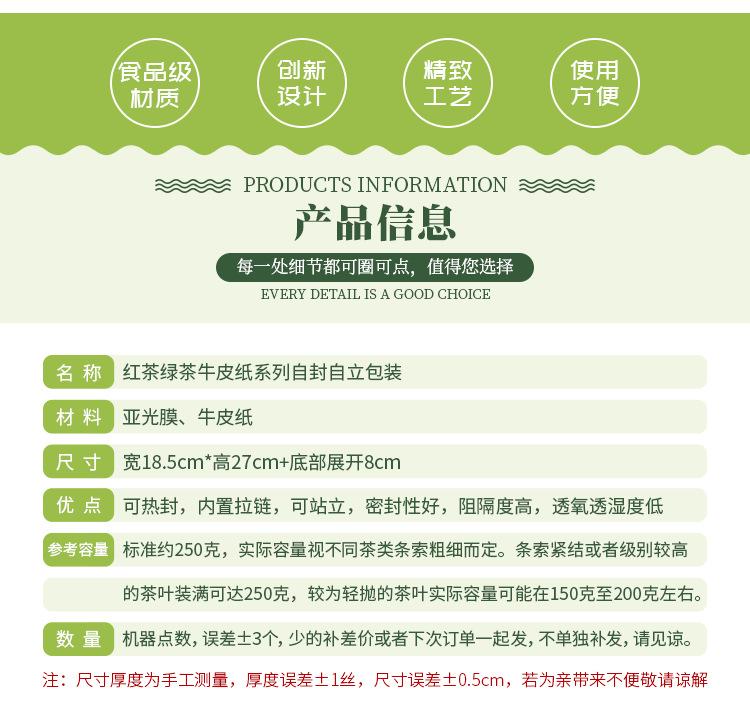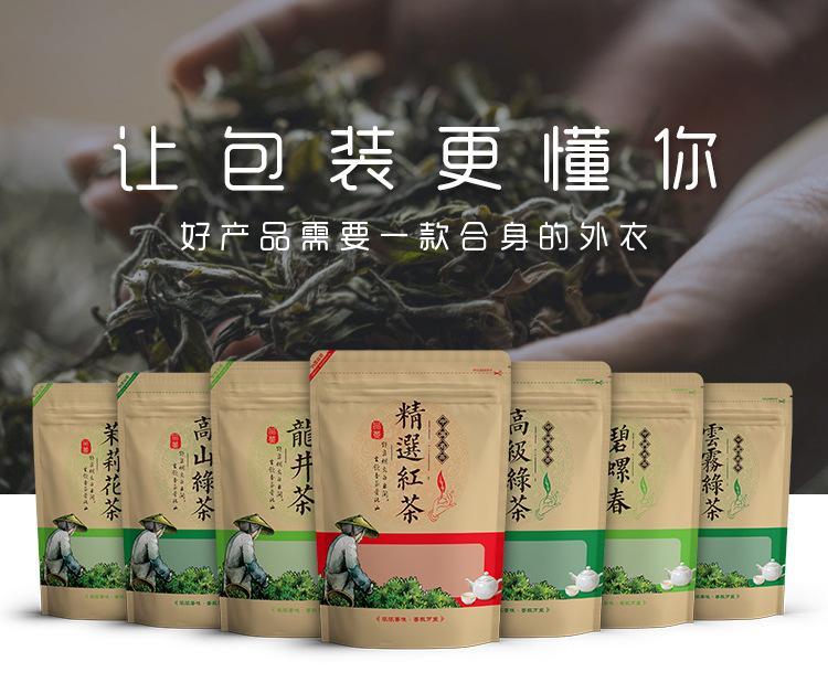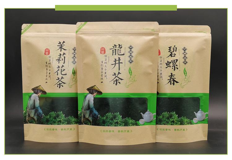 Nueva bolsa de embalaje de té bolsa de papel kraft 250g media libra bolsa de té verde alpino té Longjing biluochun bolsa sellada