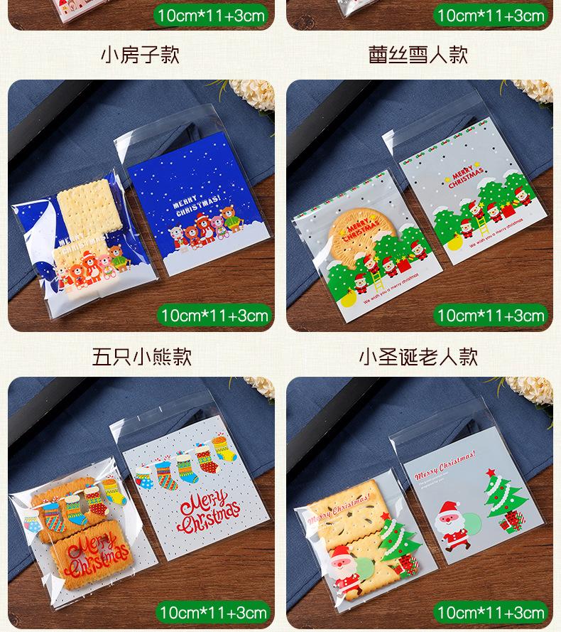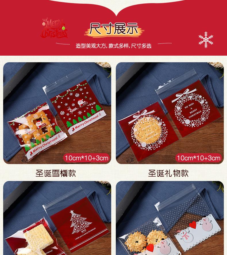Una variedad de empaques coreanos para hornear fondo rojo trineo de Papá Noel bolsa autoadhesiva bolsa para empaquetar galletas 100/bolsa