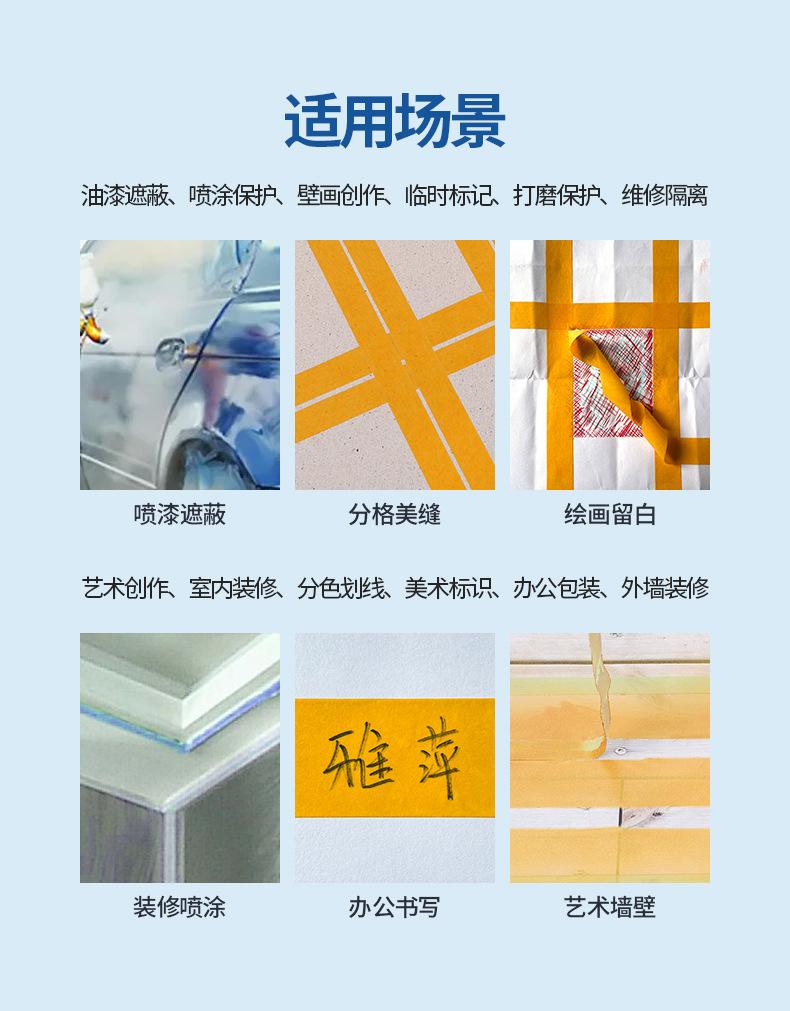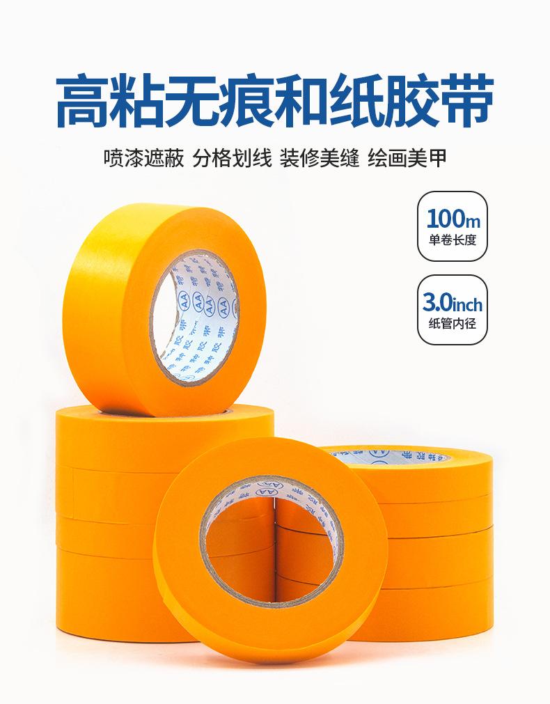 Papel de enmascarar y cinta de papel de 100 m, pintura en aerosol decorativa de alta adherencia, sin costuras, fácil de rasgar, pegatinas de papel de color al por mayor
