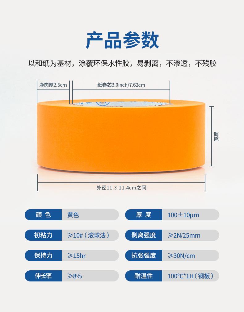 High-viscosity yellow washi tape (decoration, spray painting, beautiful seams, color separation and marking); 100m long*3cm wide [60 rolls in a box]