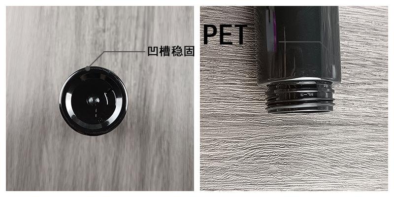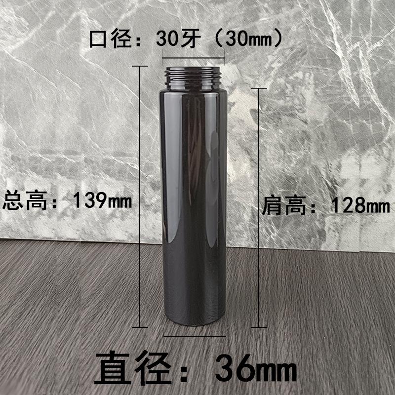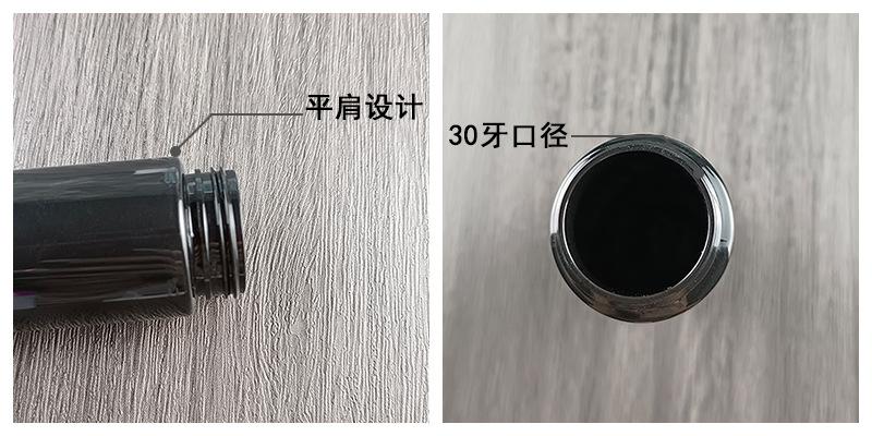 Botella de hombro plano de 100 ml y 30 dientes, color negro, para gel de ducha, champú, envase químico diario para viajes, venta directa de fábrica