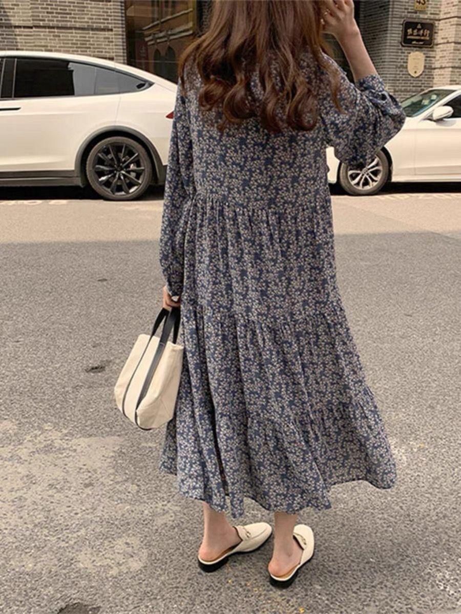 Vestido Platycodon Estilo Hepburn Retro Francés para Mujer 2024 Nuevo Otoño Estilo Coreano Suelto Talla Grande Elegante Falda Larga