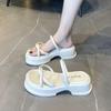 Zapatillas de suela gruesa de moda para mujer, de PVC, con suela suave, para el baño, antideslizantes, de red roja, para verano, venta al por mayor