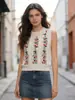 Top de punto calado con bordado floral resistente para primavera y verano transfronterizo, nuevo estilo dulce, top sin mangas de cuello redondo, camiseta básica para mujer
