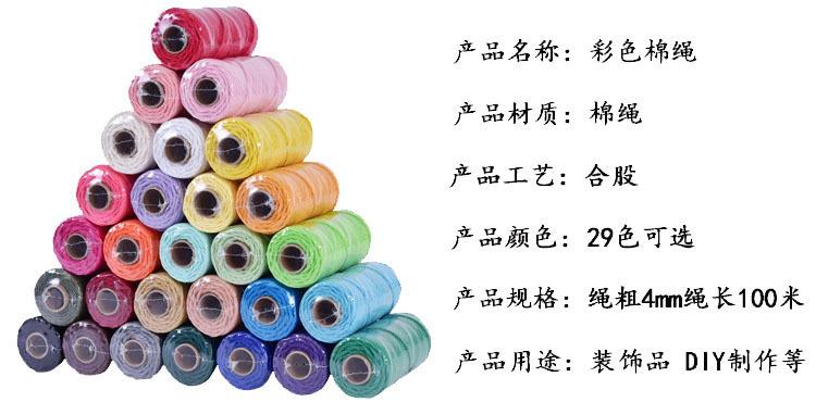 Cuerda de algodón de color de 4 mm diy tejida a mano cuerda de algodón gruesa y delgada cuerda para tapiz tejido cuerda para atar cuerda decorativa