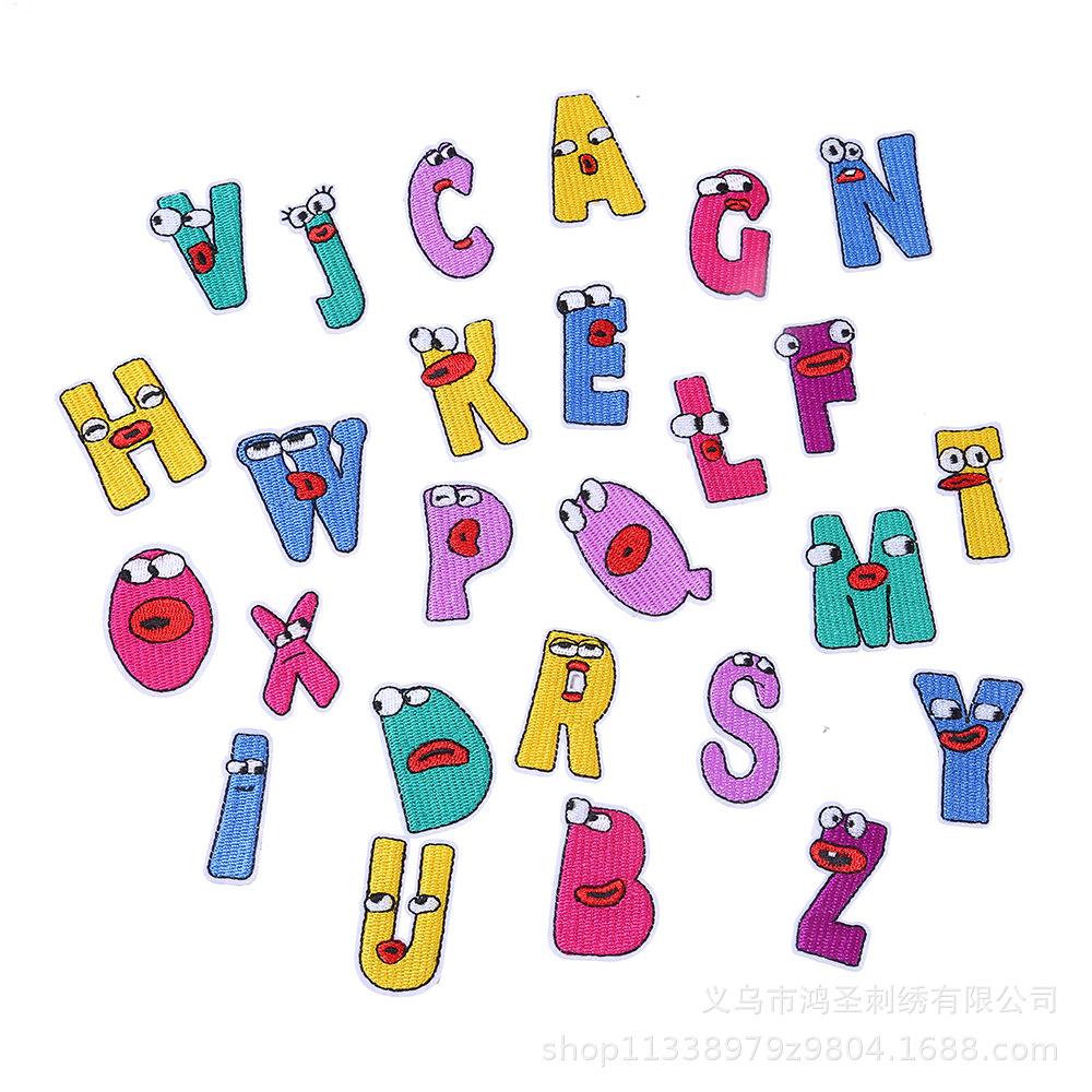 Calcomanías de Tela Bordadas 26 Letras Inglesas Calcomanías de Tela de Dibujos Animados Lindos Accesorios de Ropa Calcomanías de Tela Bordadas Accesorios de Ropa Decorativos