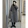 Abrigo de lana cortavientos de alta calidad con botones de plástico de colores para mujer, con hebilla decorativa y hebilla larga irregular.