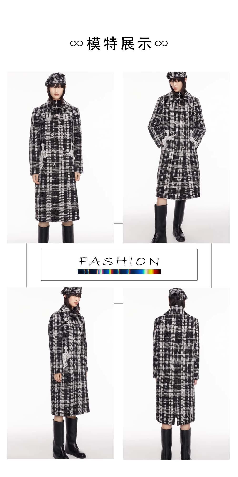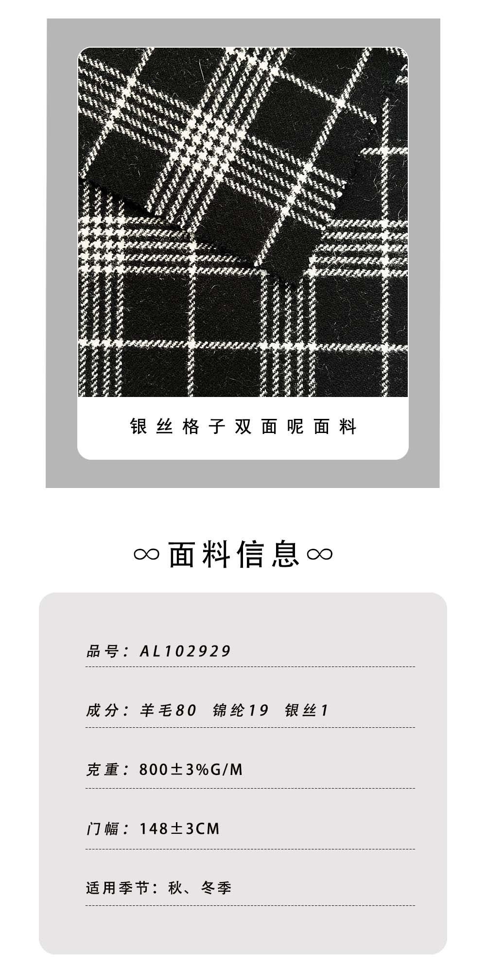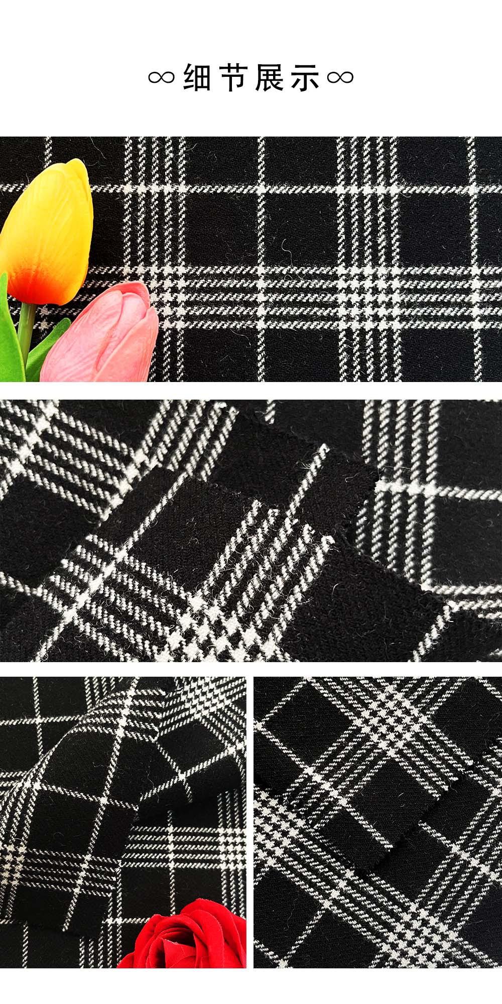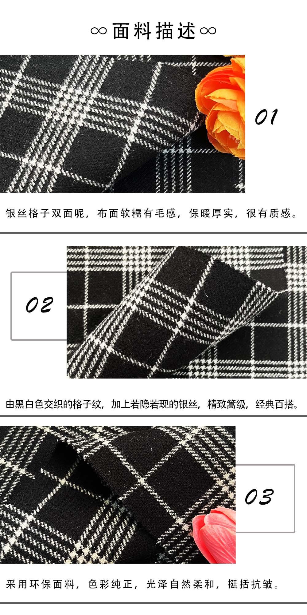 Seda Plateada Tela de Lana a Cuadros Blanco y Negro Abrigo Exterior Mezcla de Lana Tela de Moda Cuadros Material de Lana de Doble Cara