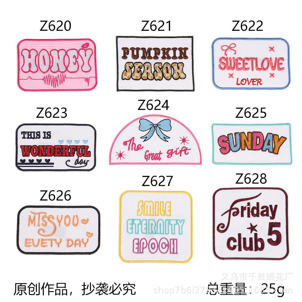 Venta caliente transfronteriza en stock de pegatinas de tela con bordado de letras, adhesivo termofusible para ropa, equipaje, parche bordado decorativo, venta al por mayor