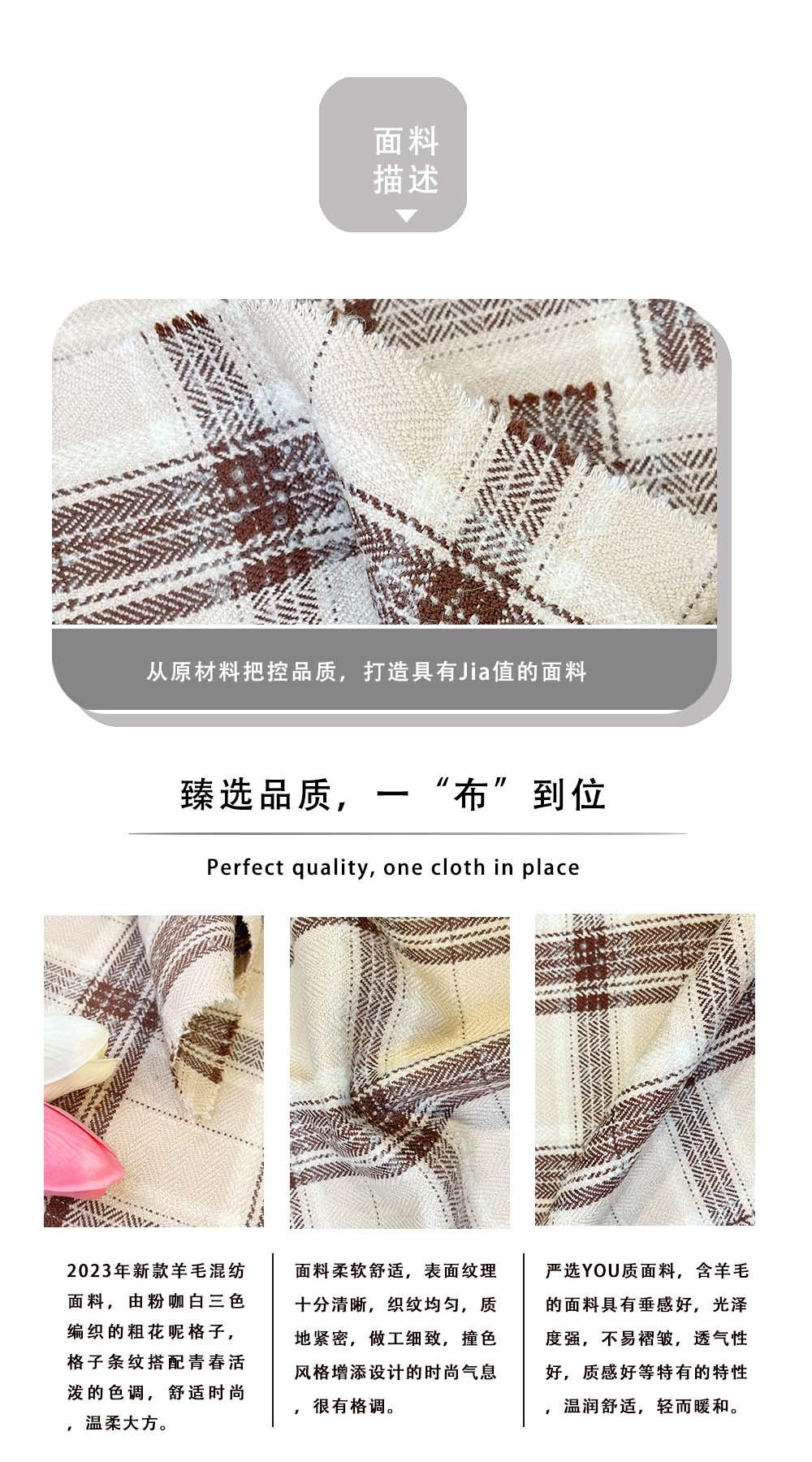 2023 Nuevo Tejido de Lana a Cuadros Tejido a Cuadros Mezclado con Lana Abrigo de Otoño e Invierno Ropa Exterior Tejido de Moda