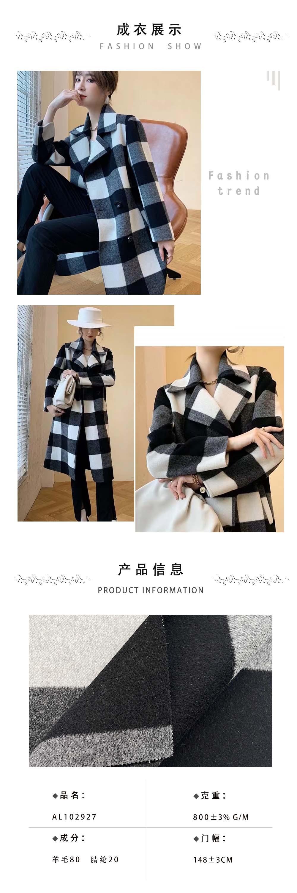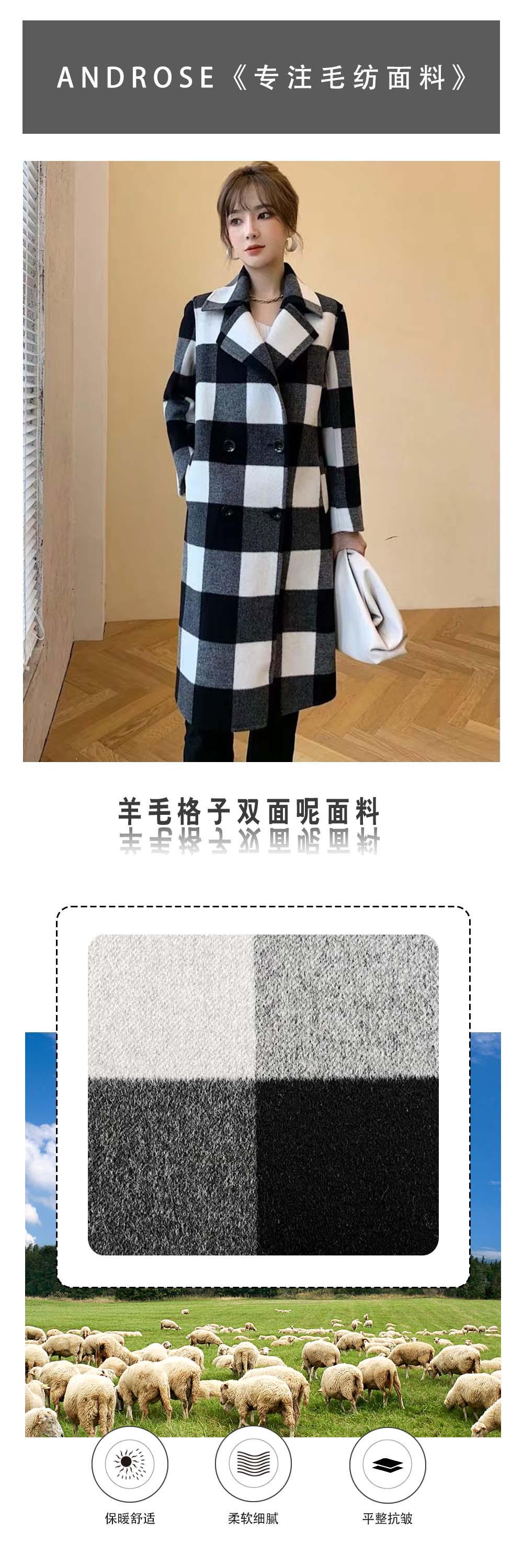 Chaqueta Exterior de Lana Mezclada de Doble Cara a Cuadros de Lana Tejido de Moda Tejido Clásico a Cuadros Tejido de Lana