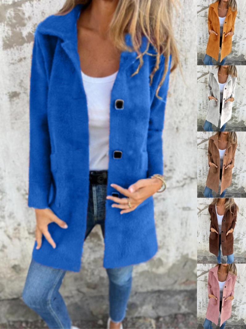 Abrigo de cachemir de doble cara con bolsillo de solapa de color liso, cruzado de Amazon, de otoño e invierno de 2024, de longitud media para mujer