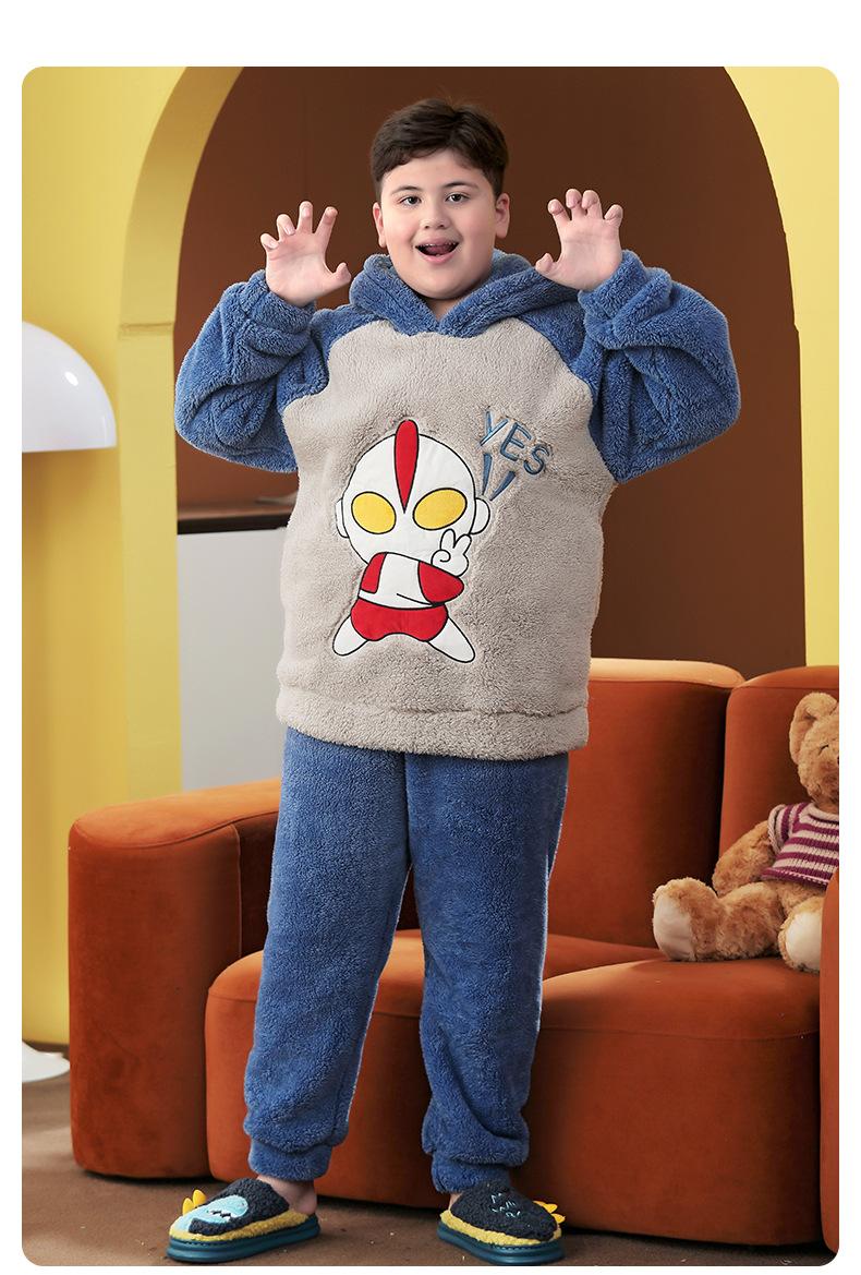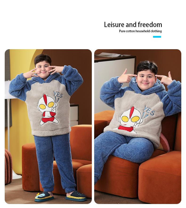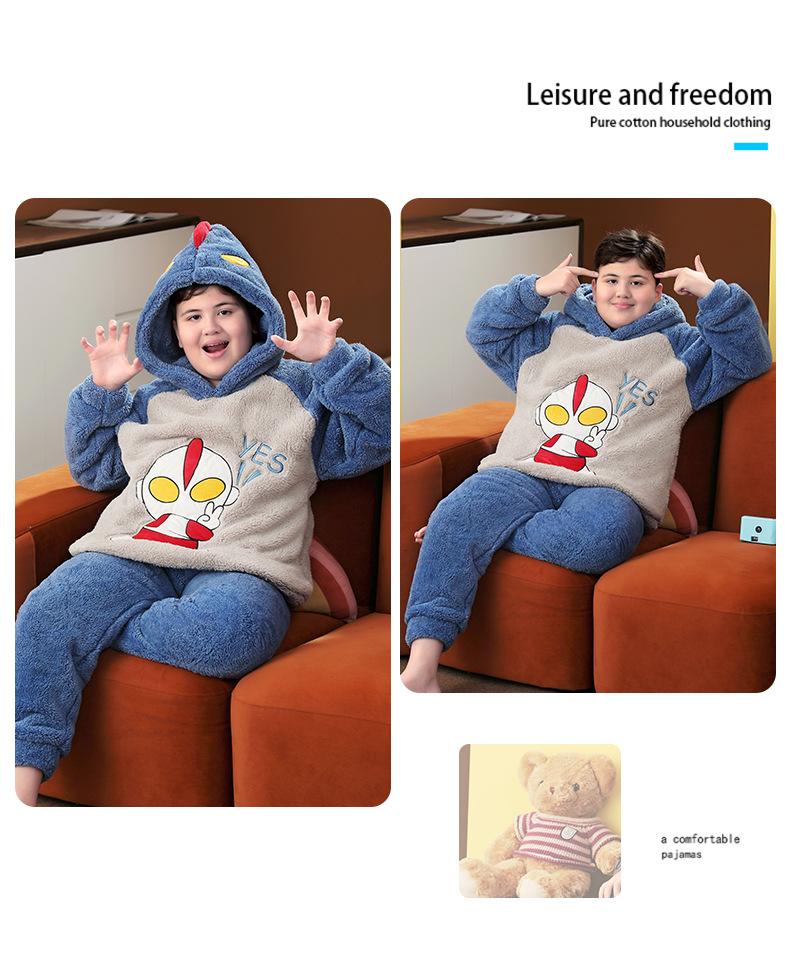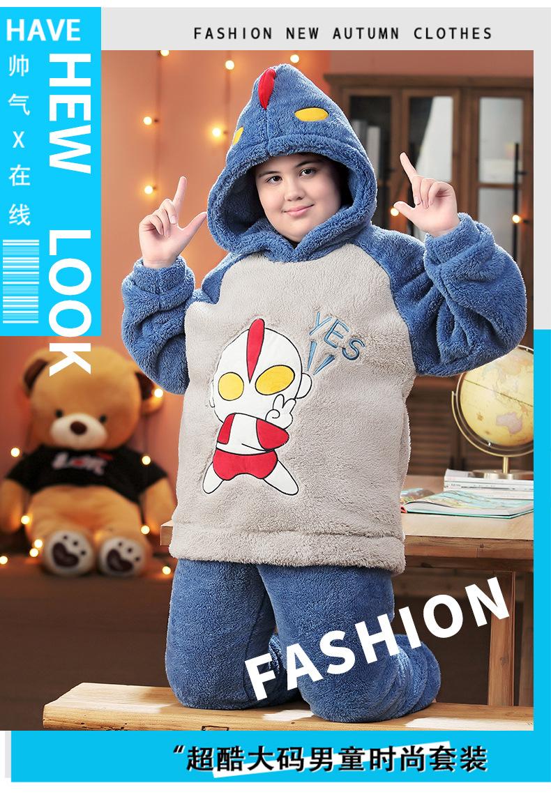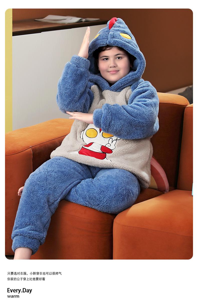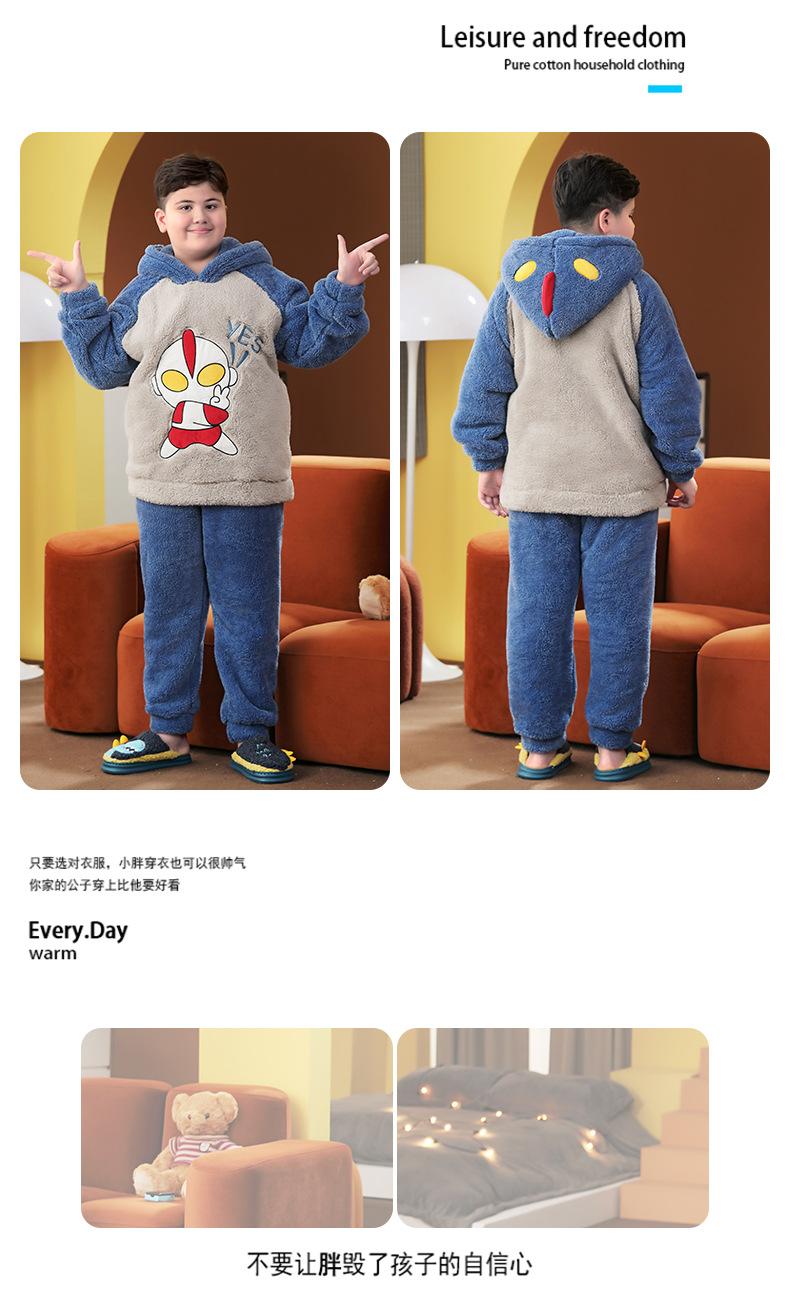 Pijama infantil para niños gorditos talla extra grande para niños otoño e invierno forro polar de coral niños franela traje para estar en casa niños mayores