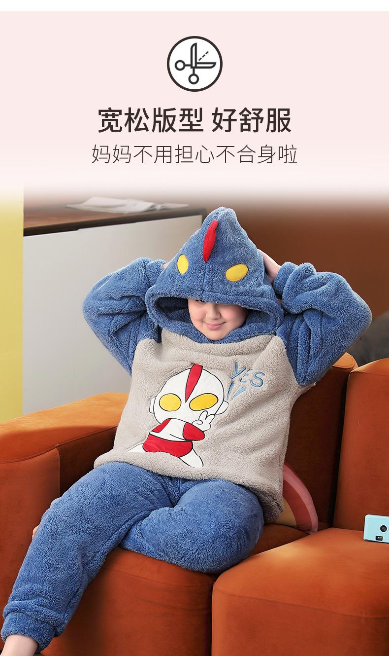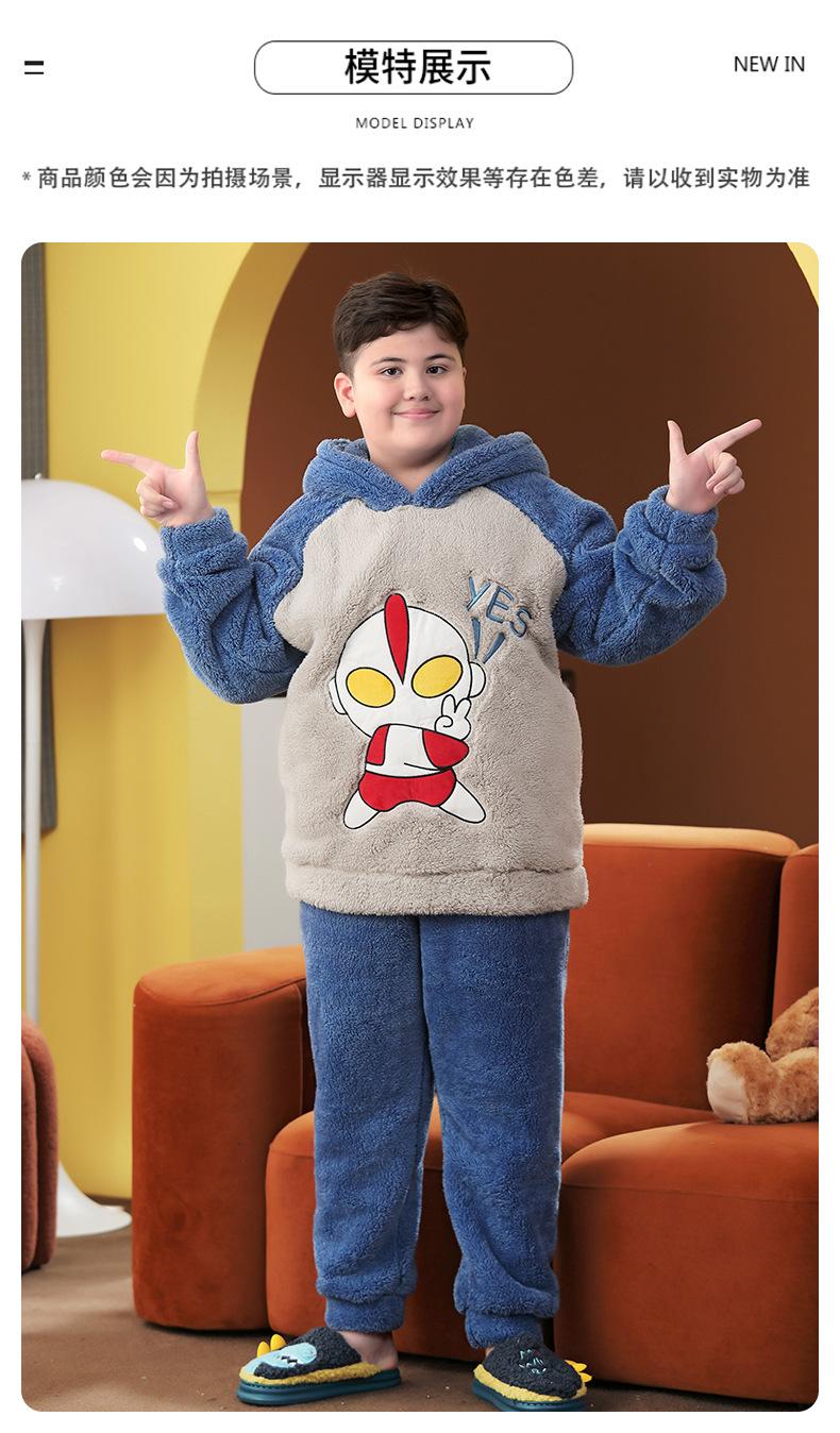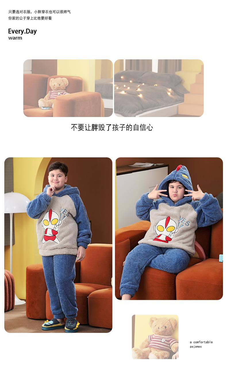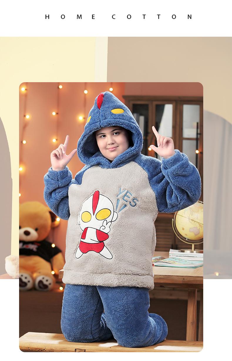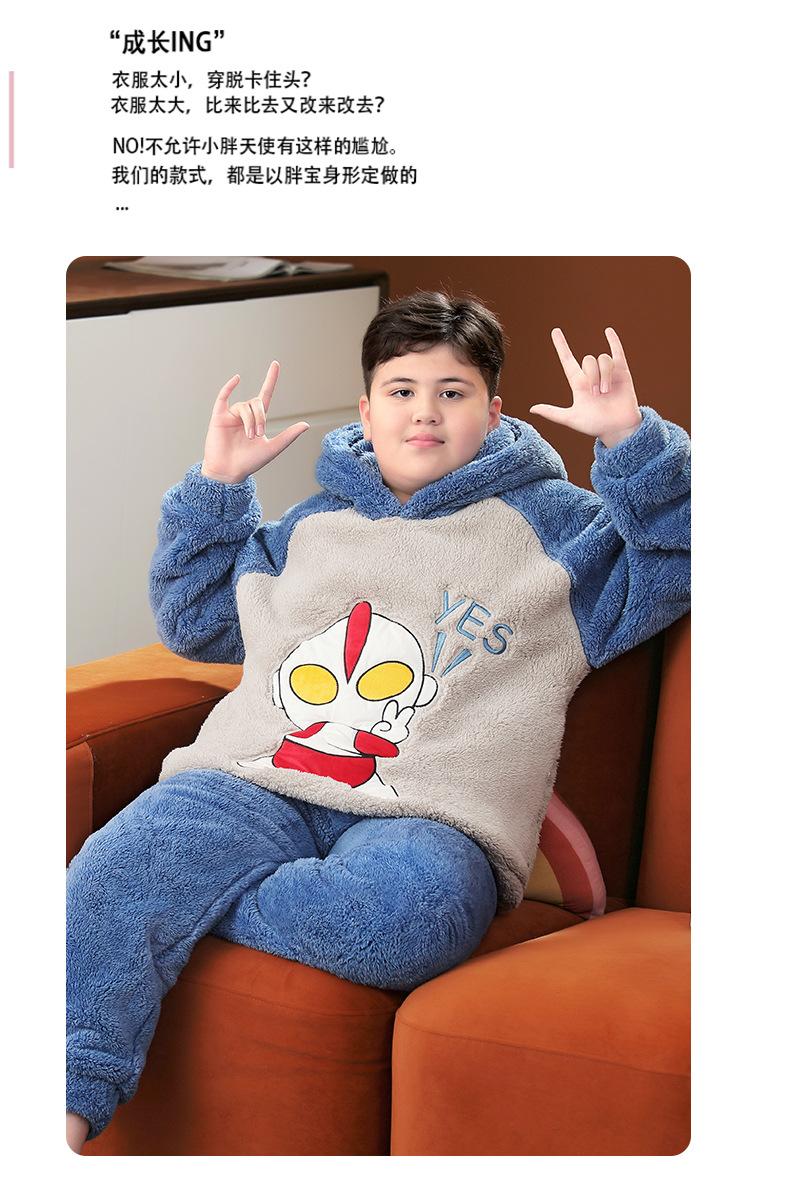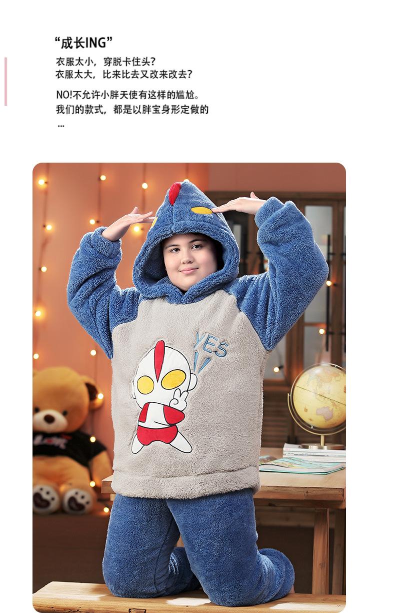 Pijama infantil para niños gorditos talla extra grande para niños otoño e invierno forro polar de coral niños franela traje para estar en casa niños mayores
