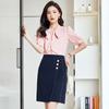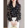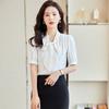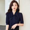 Camisa de gasa elegante con cuello en V y lazo para mujer, estilo francés, color rosa, novedad de verano