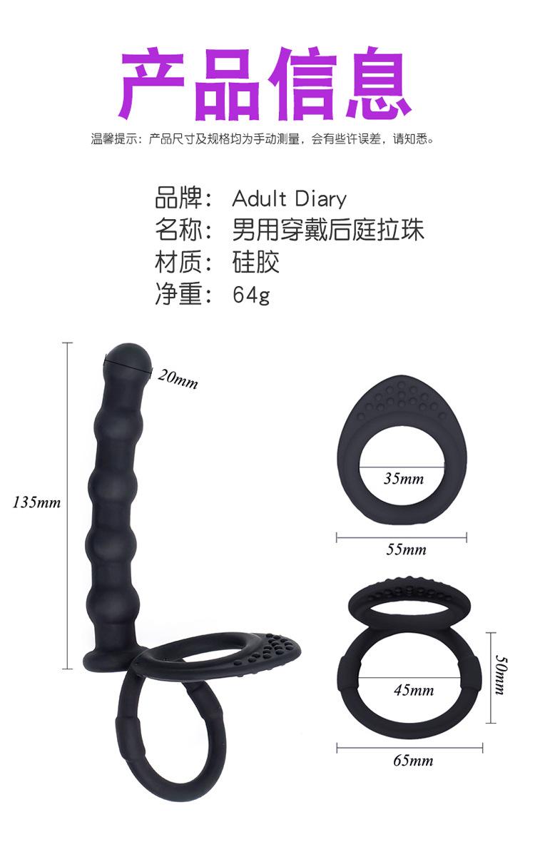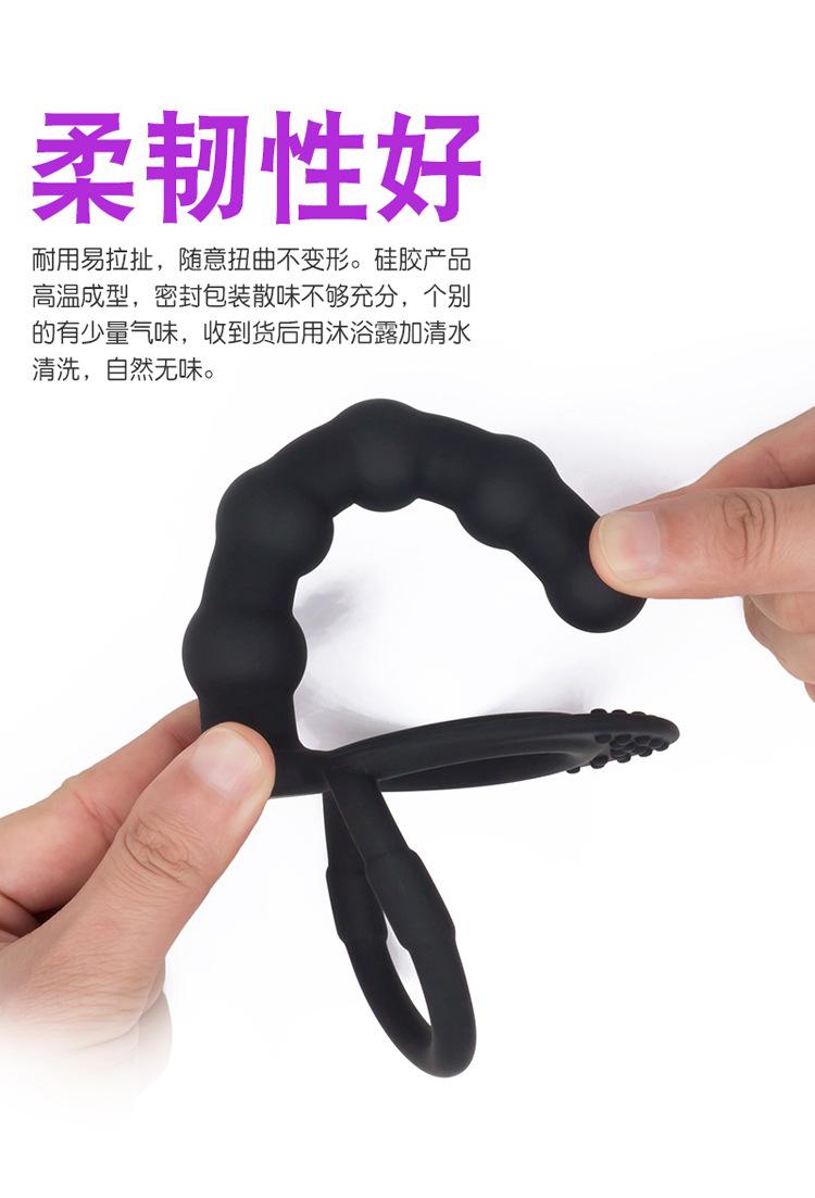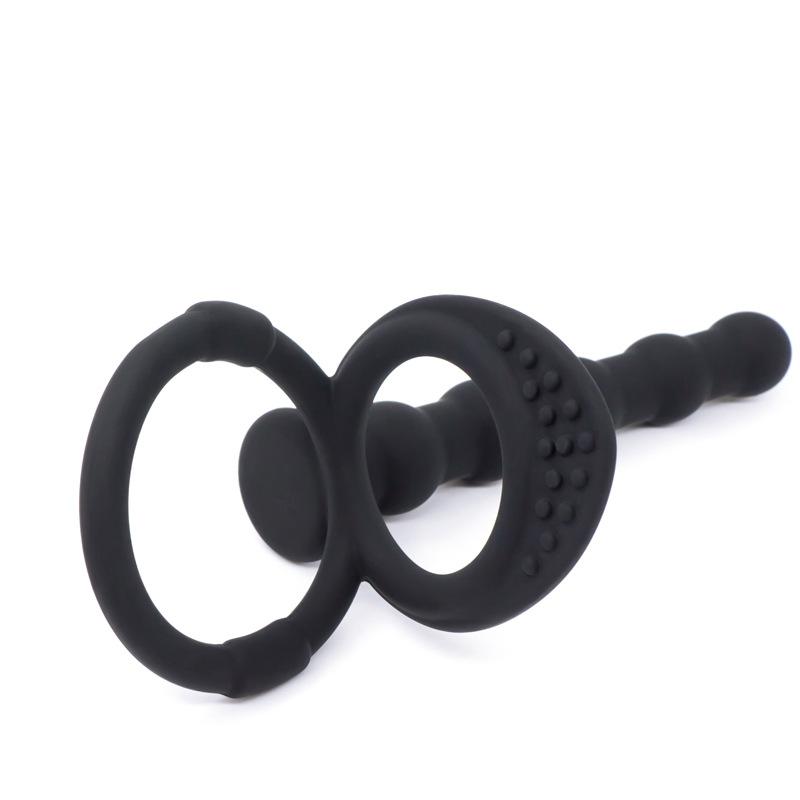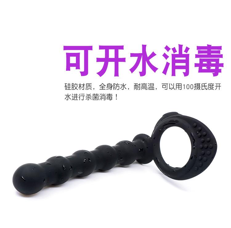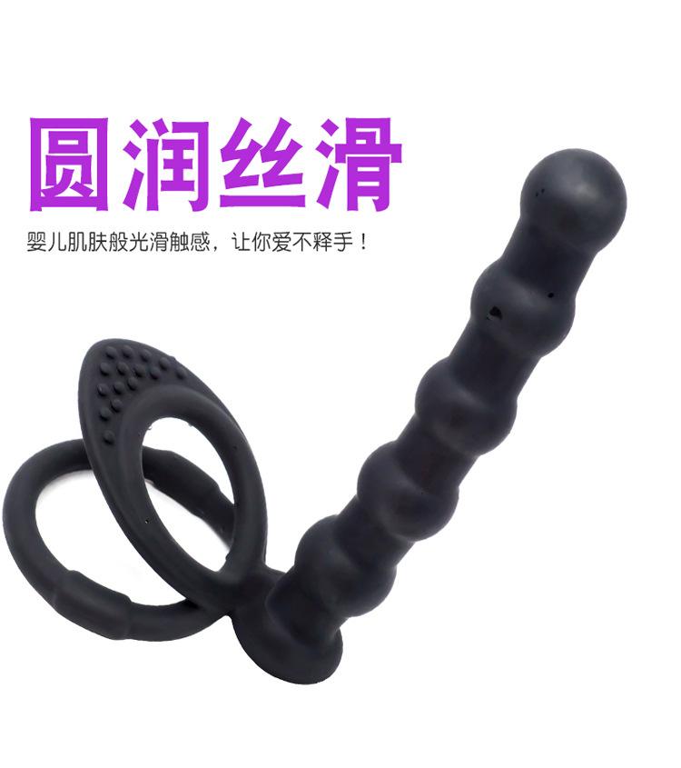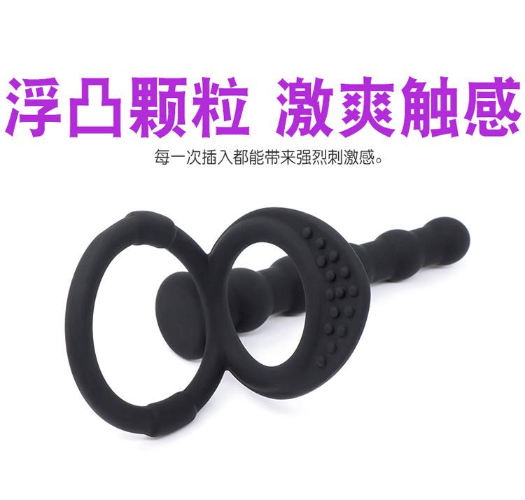 Tapón anal de próstata unisex con doble anilla de silicona y cuentas posteriores. Suministros sexuales para adultos.