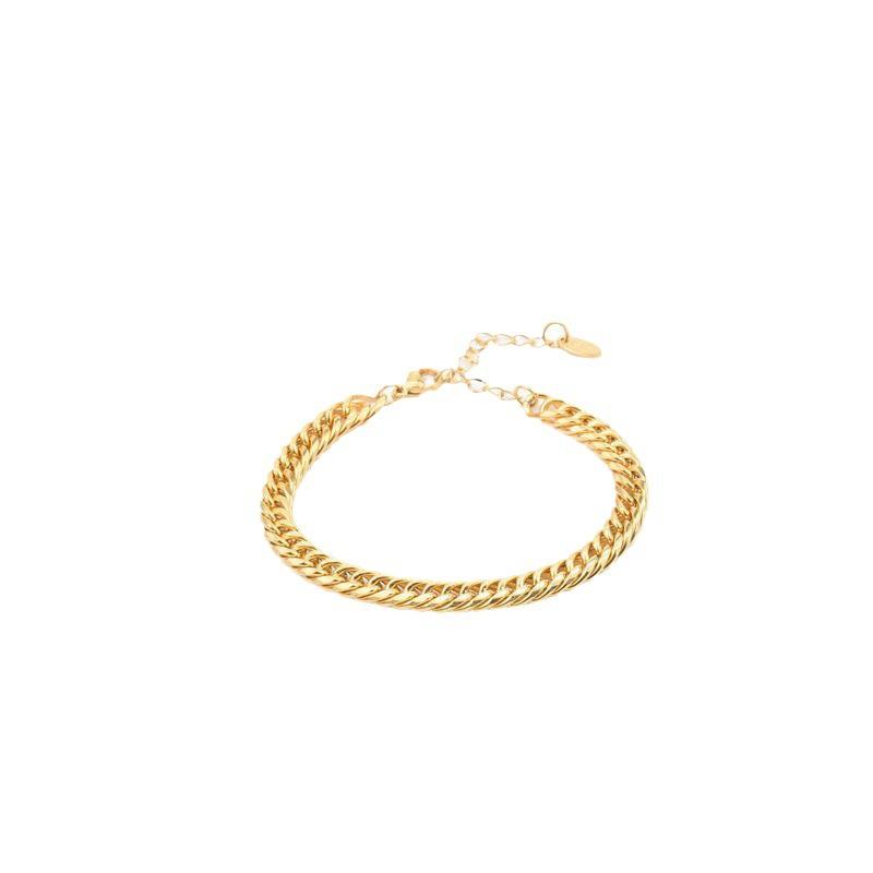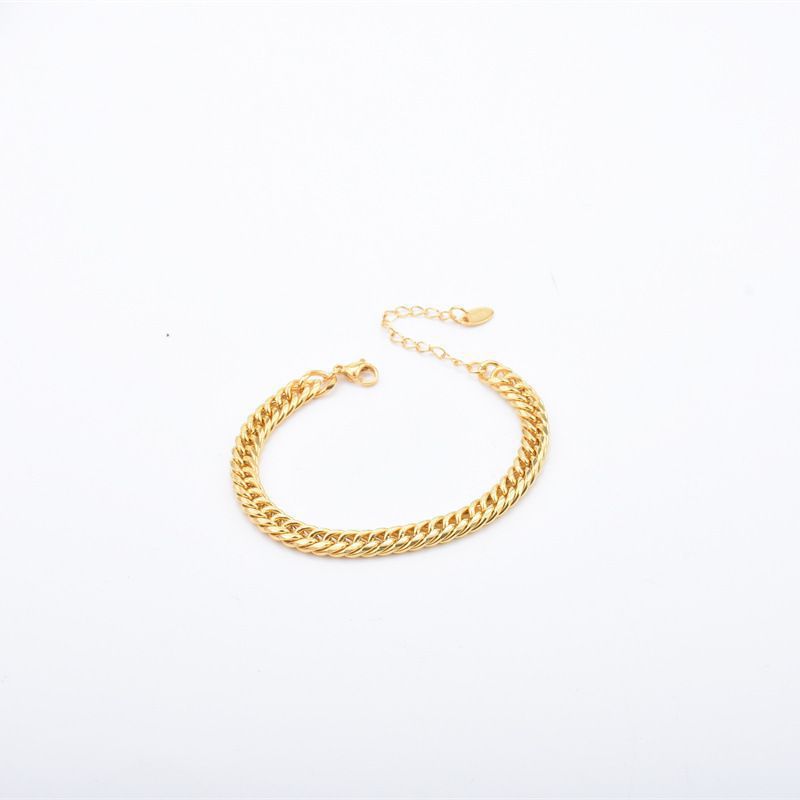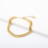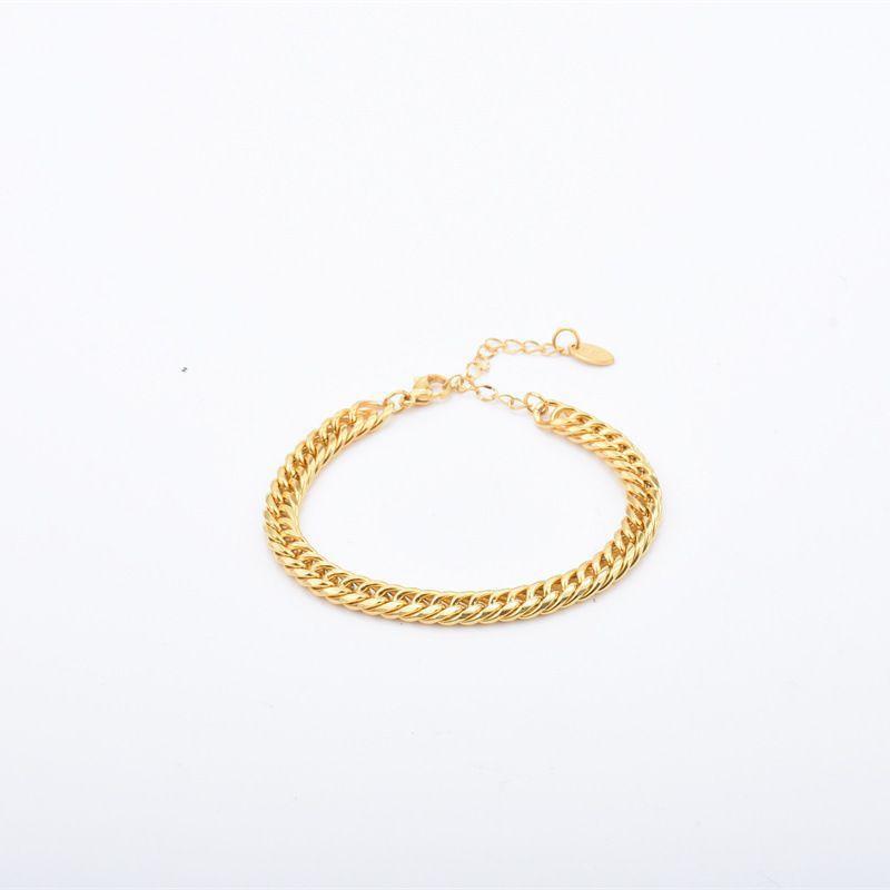 Pulseras Trenzadas de Moda Europea y Americana para Mujer Cadena Cuadrada con Hebilla Doble Cadena Lisa Acero Inoxidable Joyería Personalizada Joyería Dorada