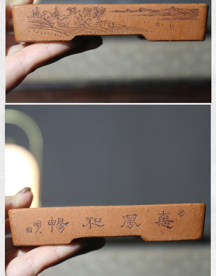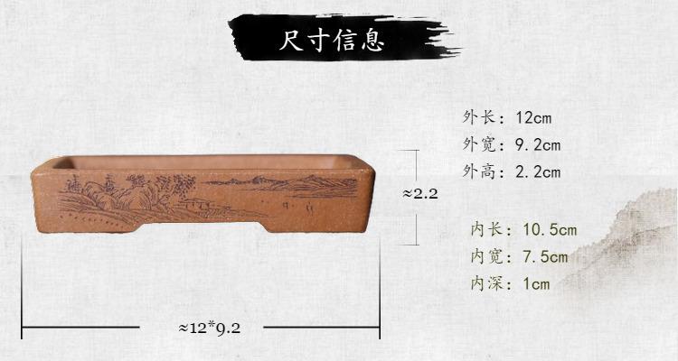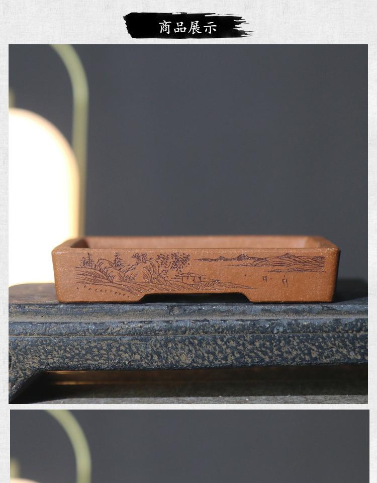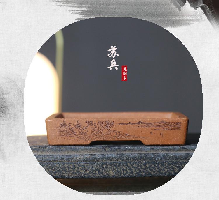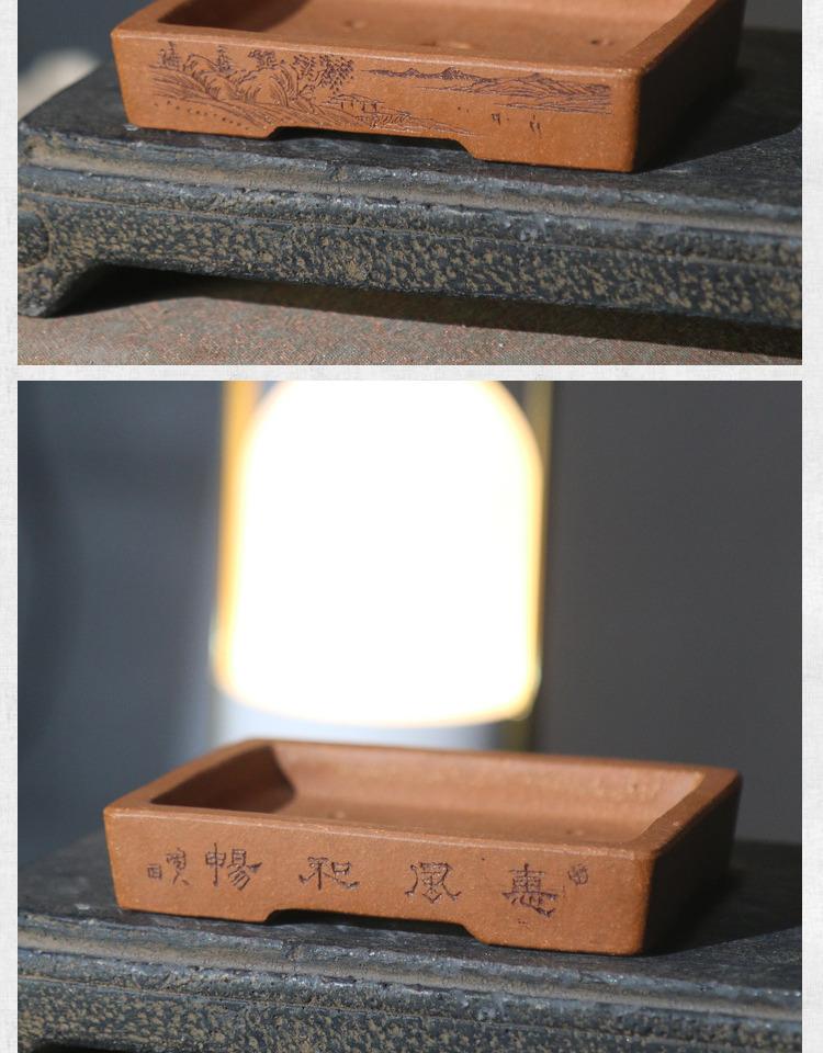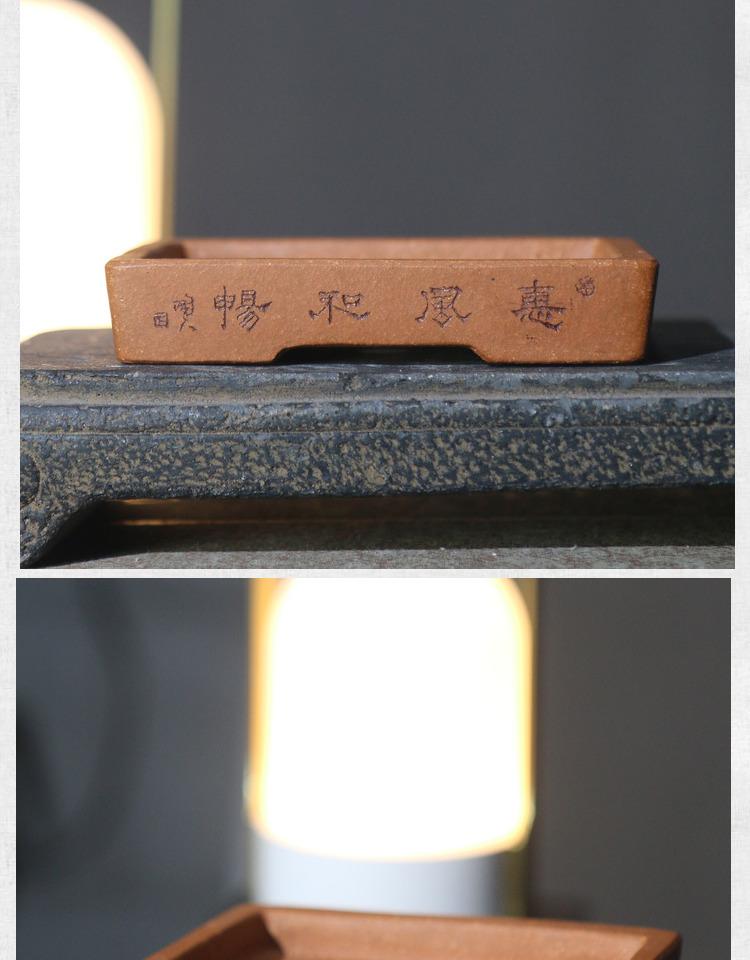 Maceta de arena morada rectangular para bonsái con letras talladas de Su Bing, maceta de piedra de tamaño pequeño, maceta falsa para escritorio, maceta en miniatura
