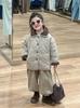 Abrigo de algodón para niños, versión coreana de invierno 2024, abrigo de algodón con cuello de lana marrón acolchado grueso y cálido para niños y niñas
