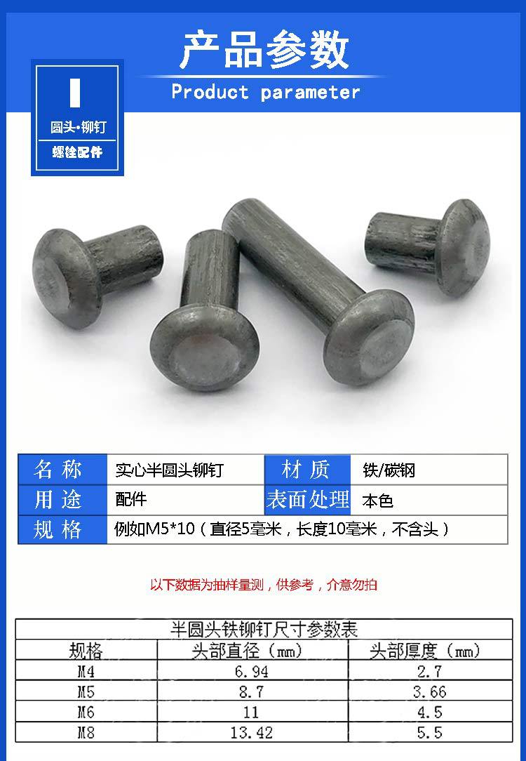 Remaches de Hierro Sólido de Cabeza Semirredonda Directos del Fabricante/Remaches de Mano/Remaches de Semicírculo/m4 M5 M6 M8 M10