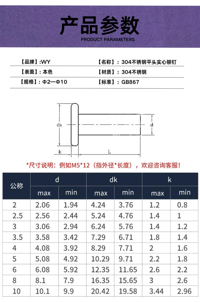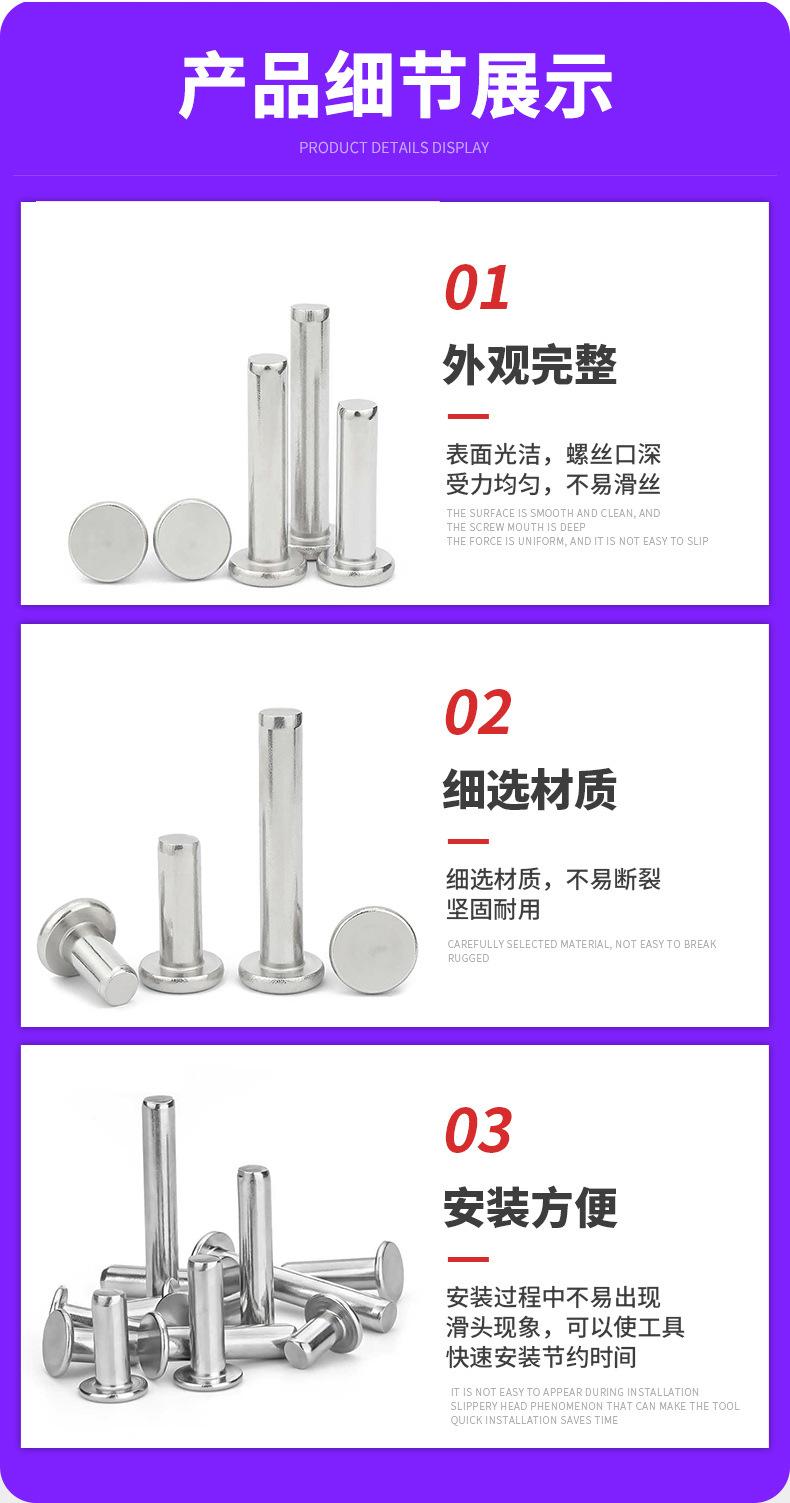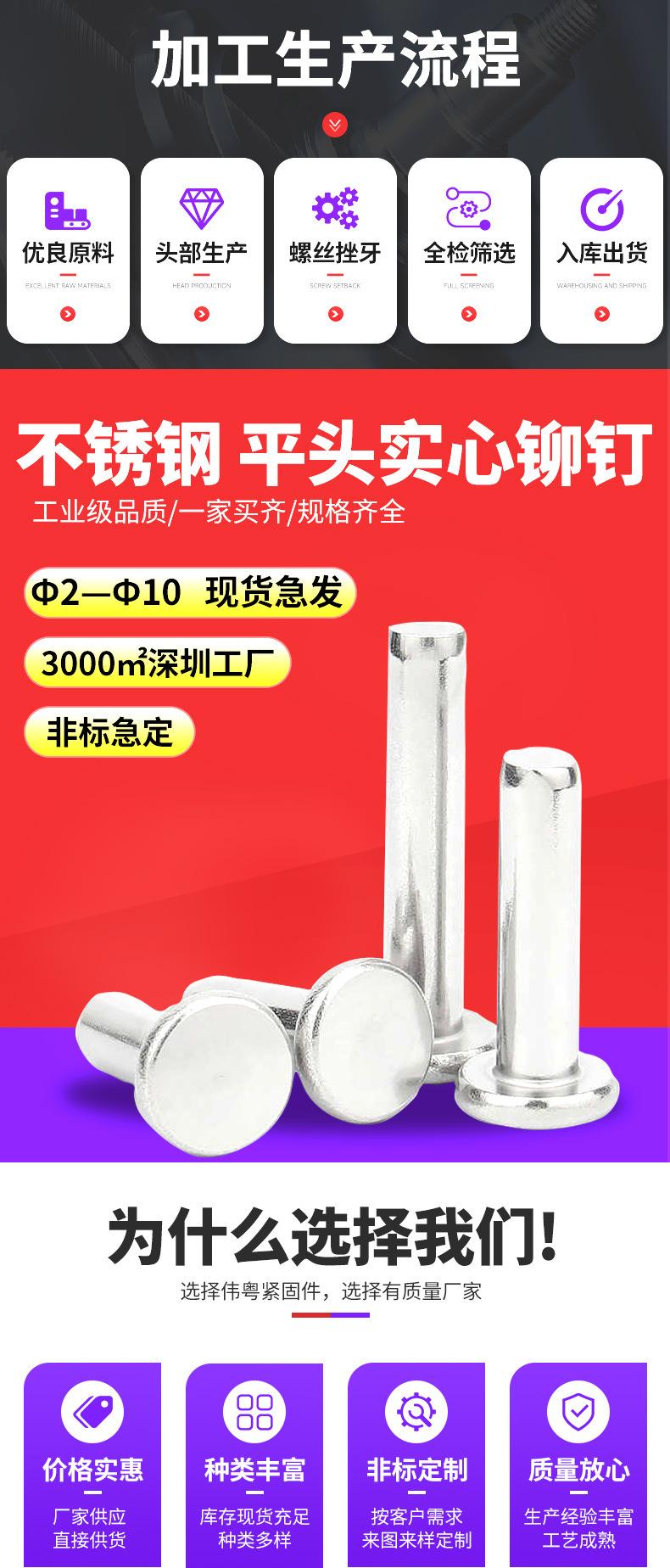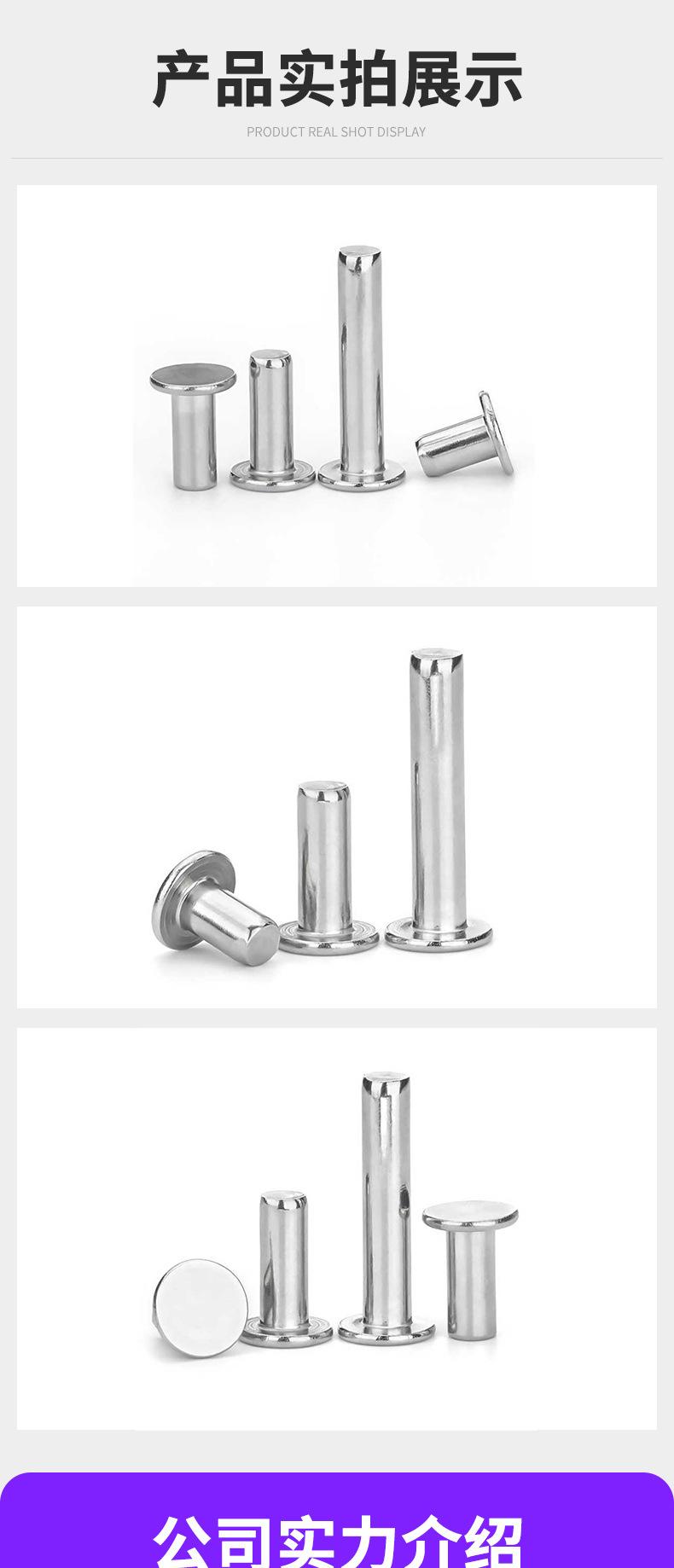 Remache de cabeza plana de acero inoxidable 304, venta al por mayor, remache sólido de cabeza plana GB109, tornillo de mano, clavo de percusión M6