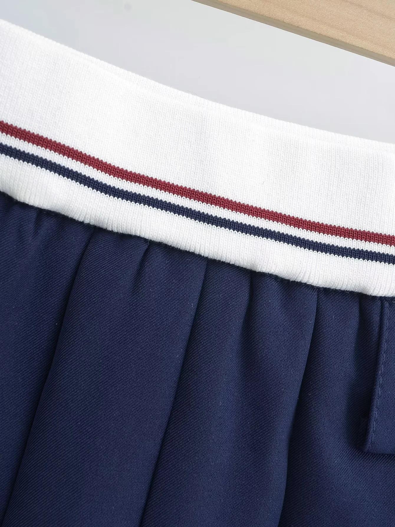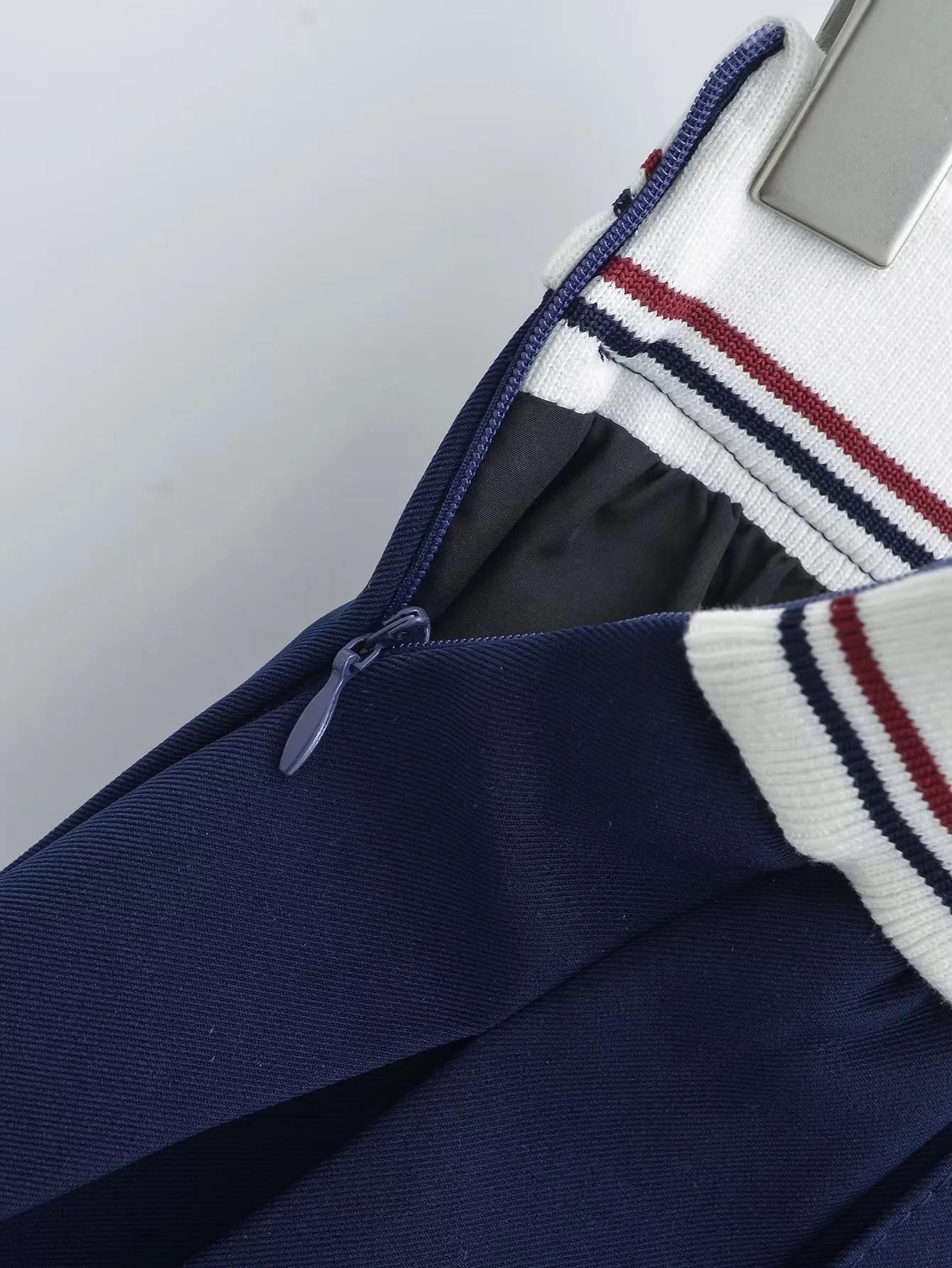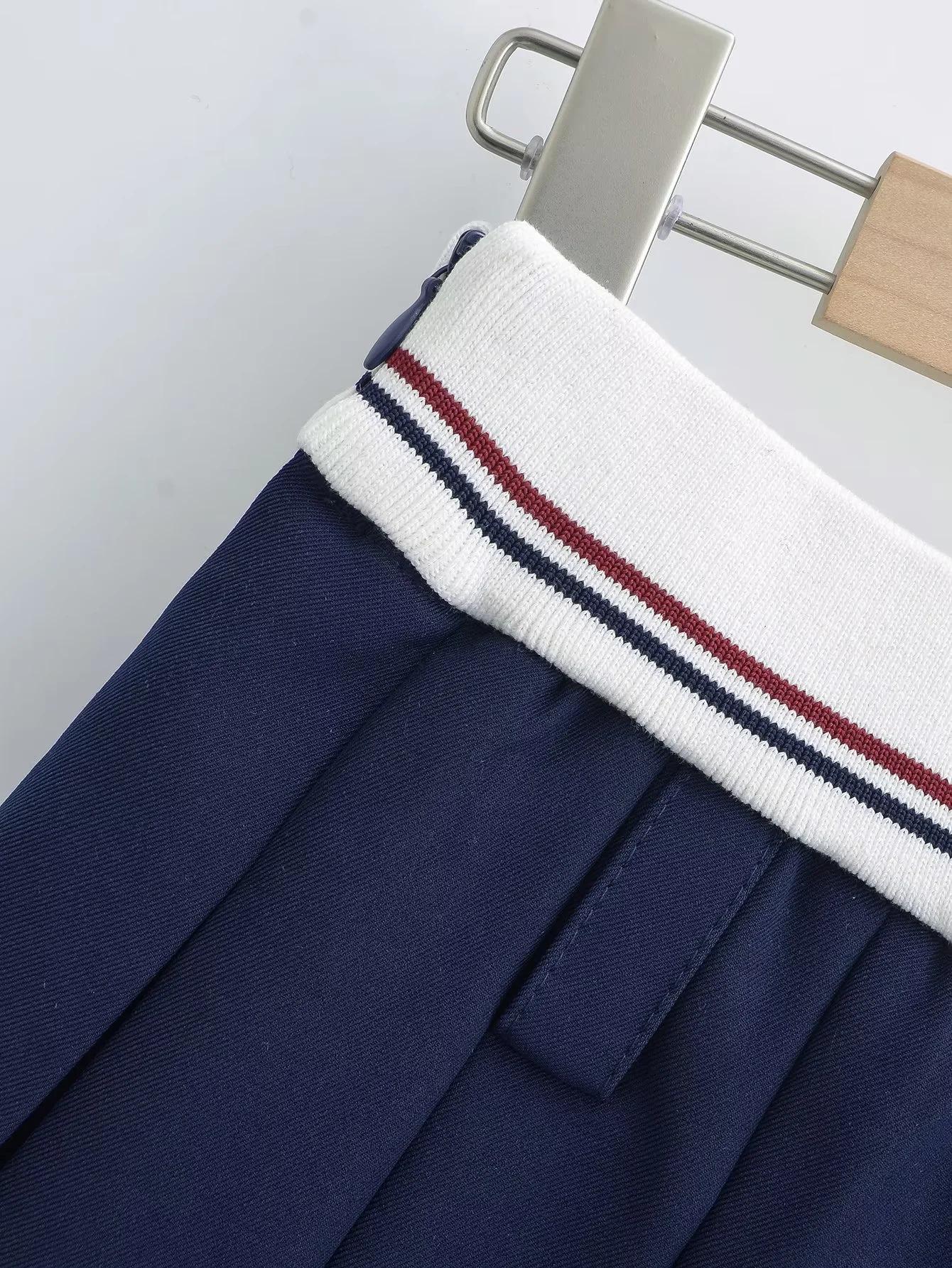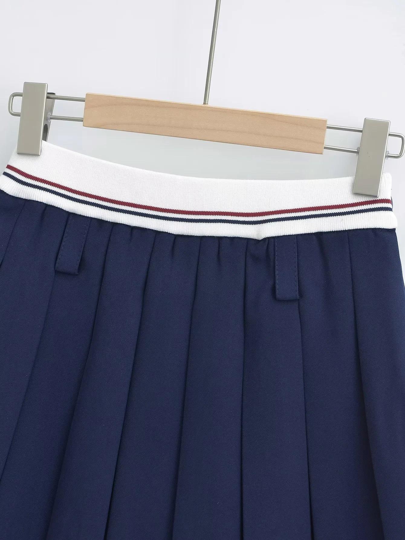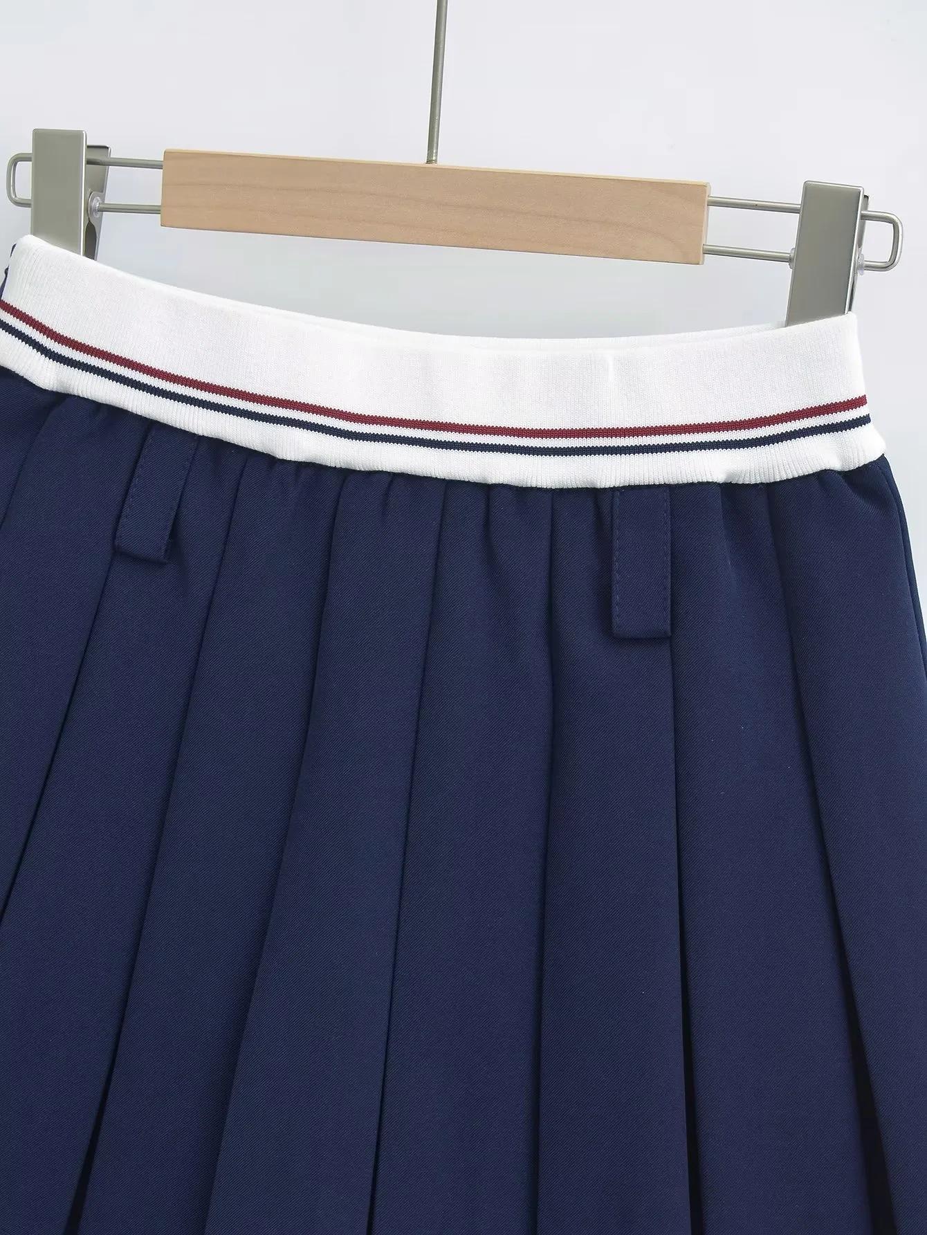Falda plisada de retazos a rayas para primavera y verano 2022, estilo europeo y americano, con cintura elástica, ajustada y sexy.