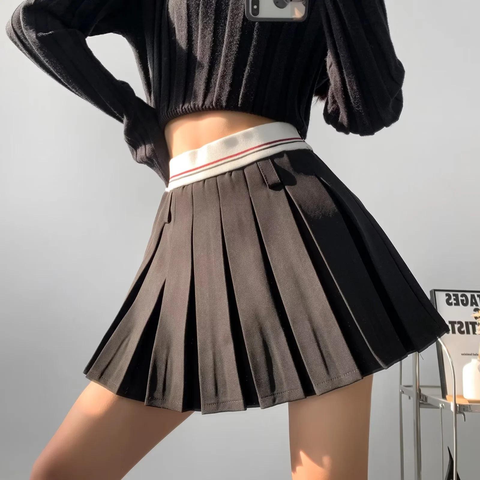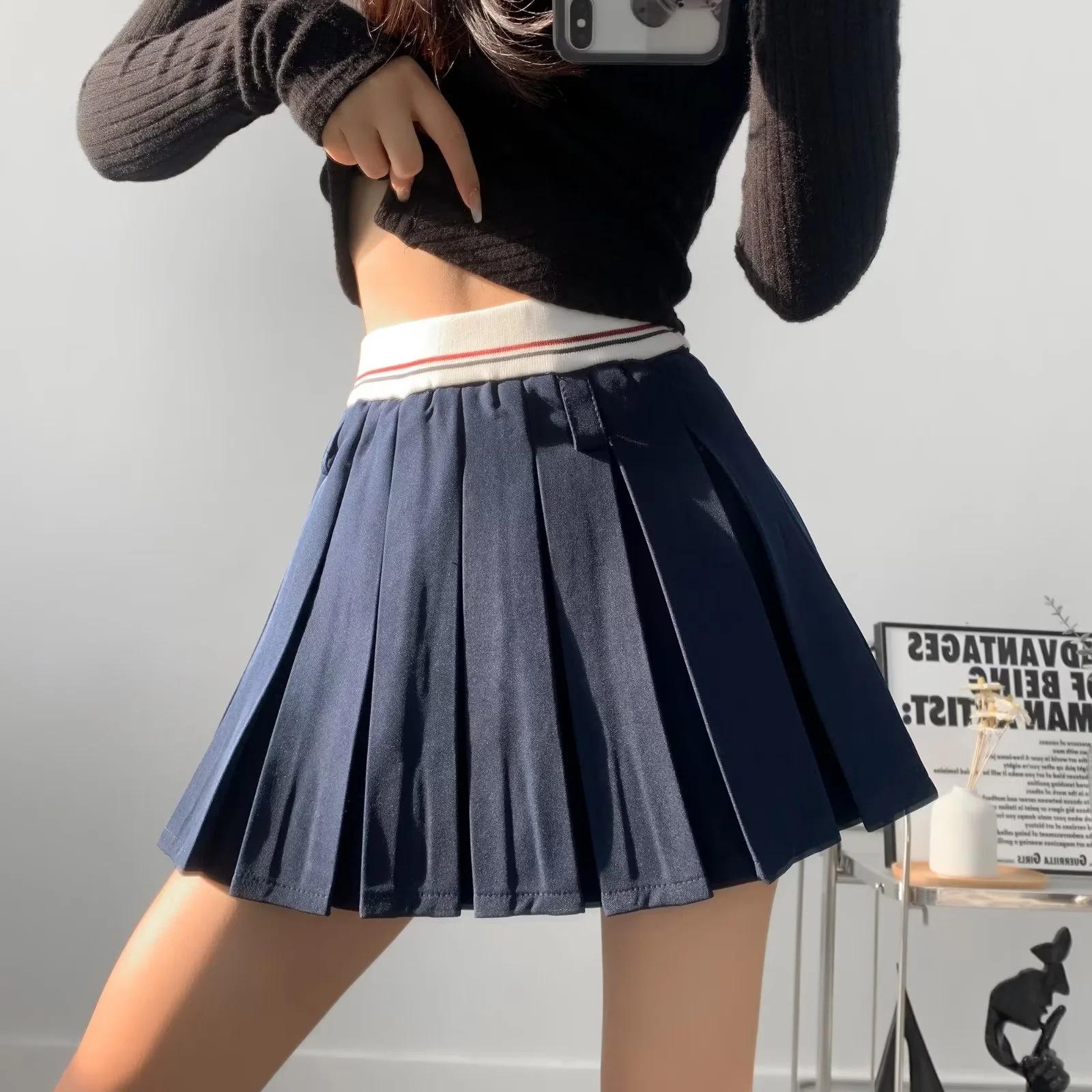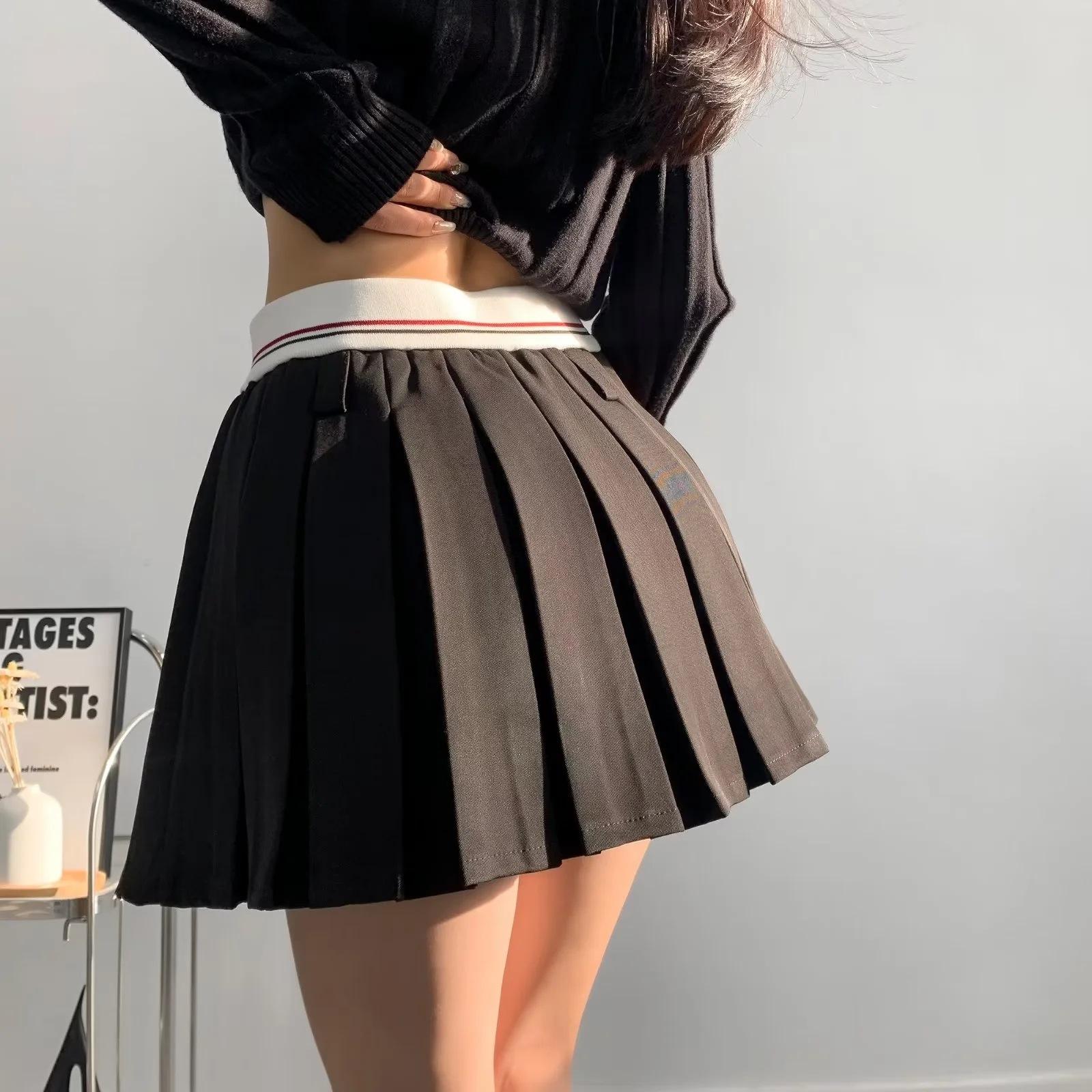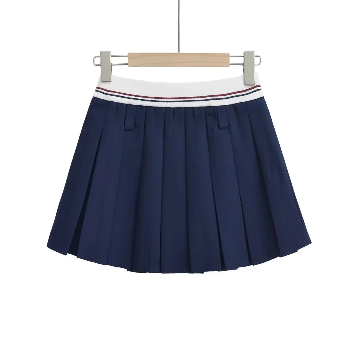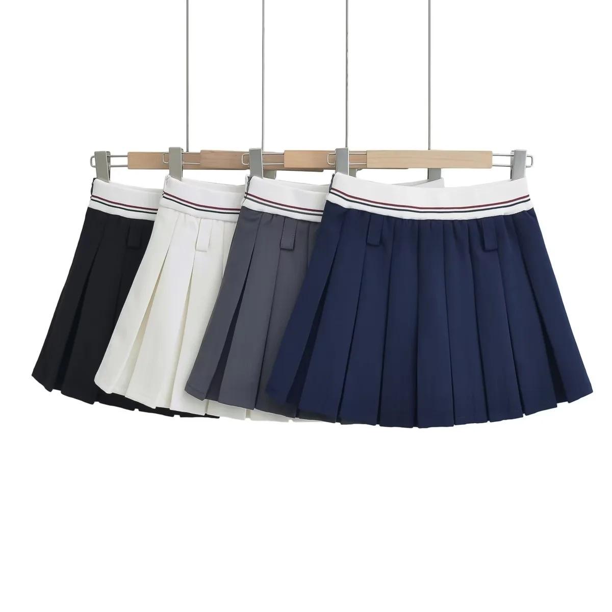 Falda plisada de retazos a rayas para primavera y verano 2022, estilo europeo y americano, con cintura elástica, ajustada y sexy.