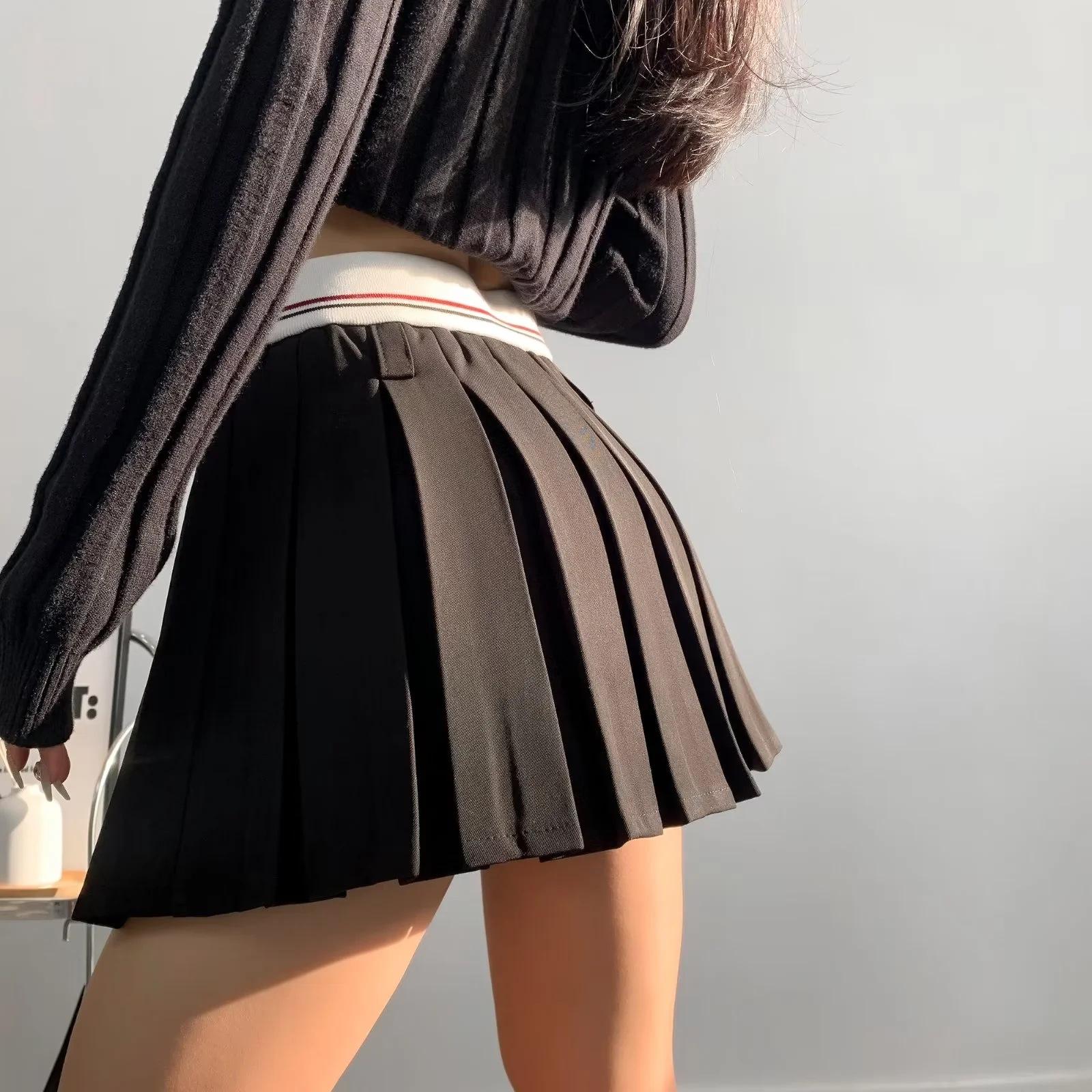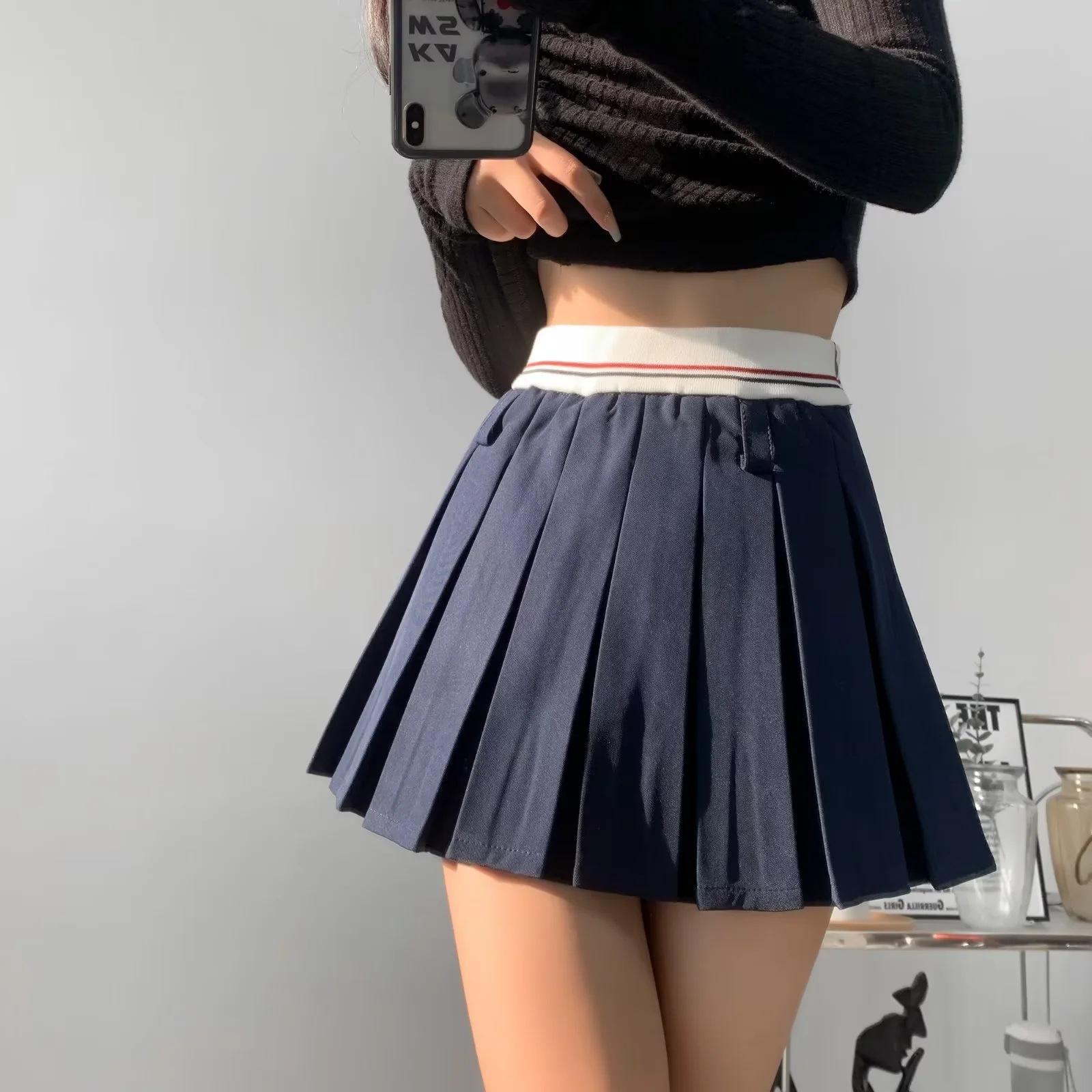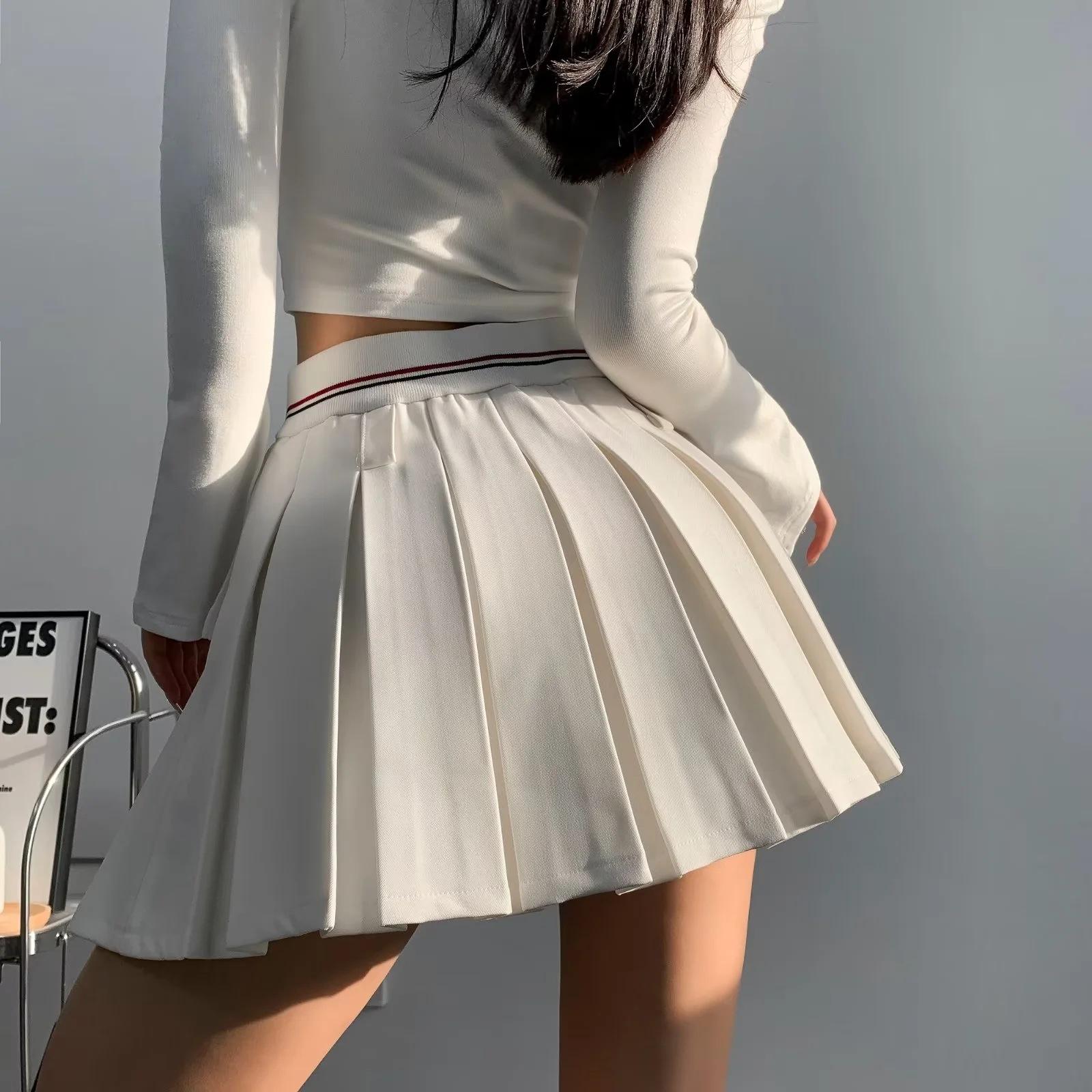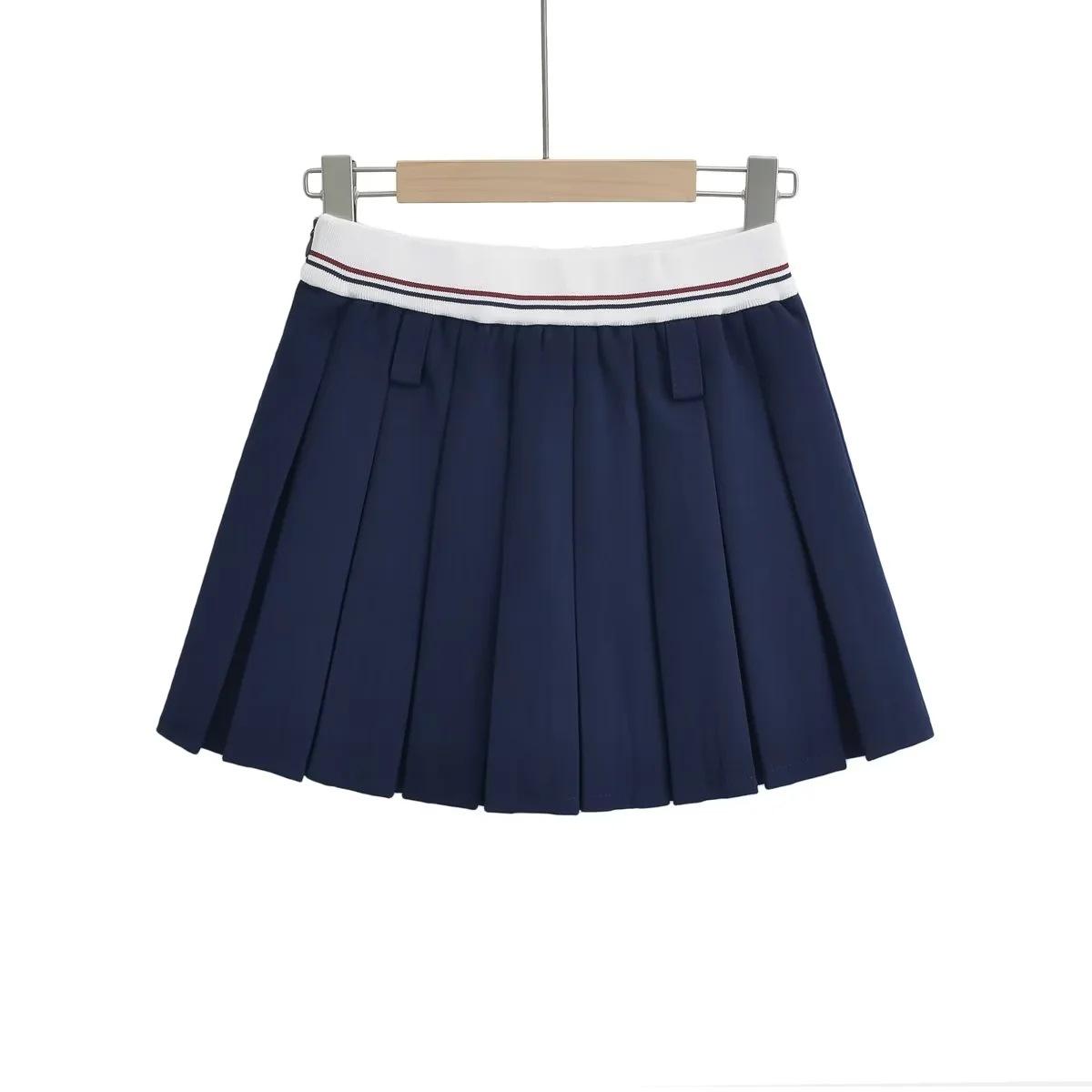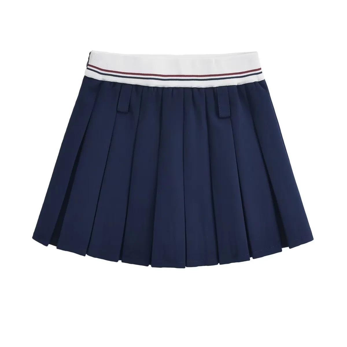 Falda plisada de retazos a rayas para primavera y verano 2022, estilo europeo y americano, con cintura elástica, ajustada y sexy.