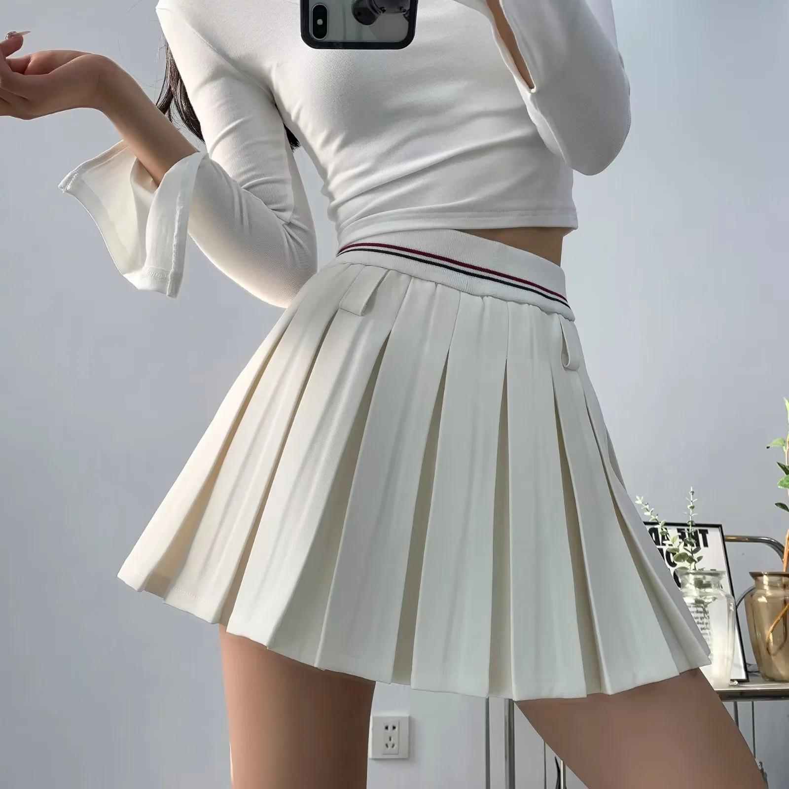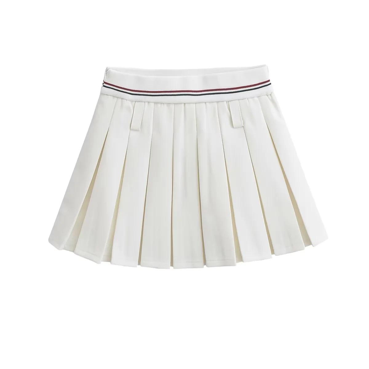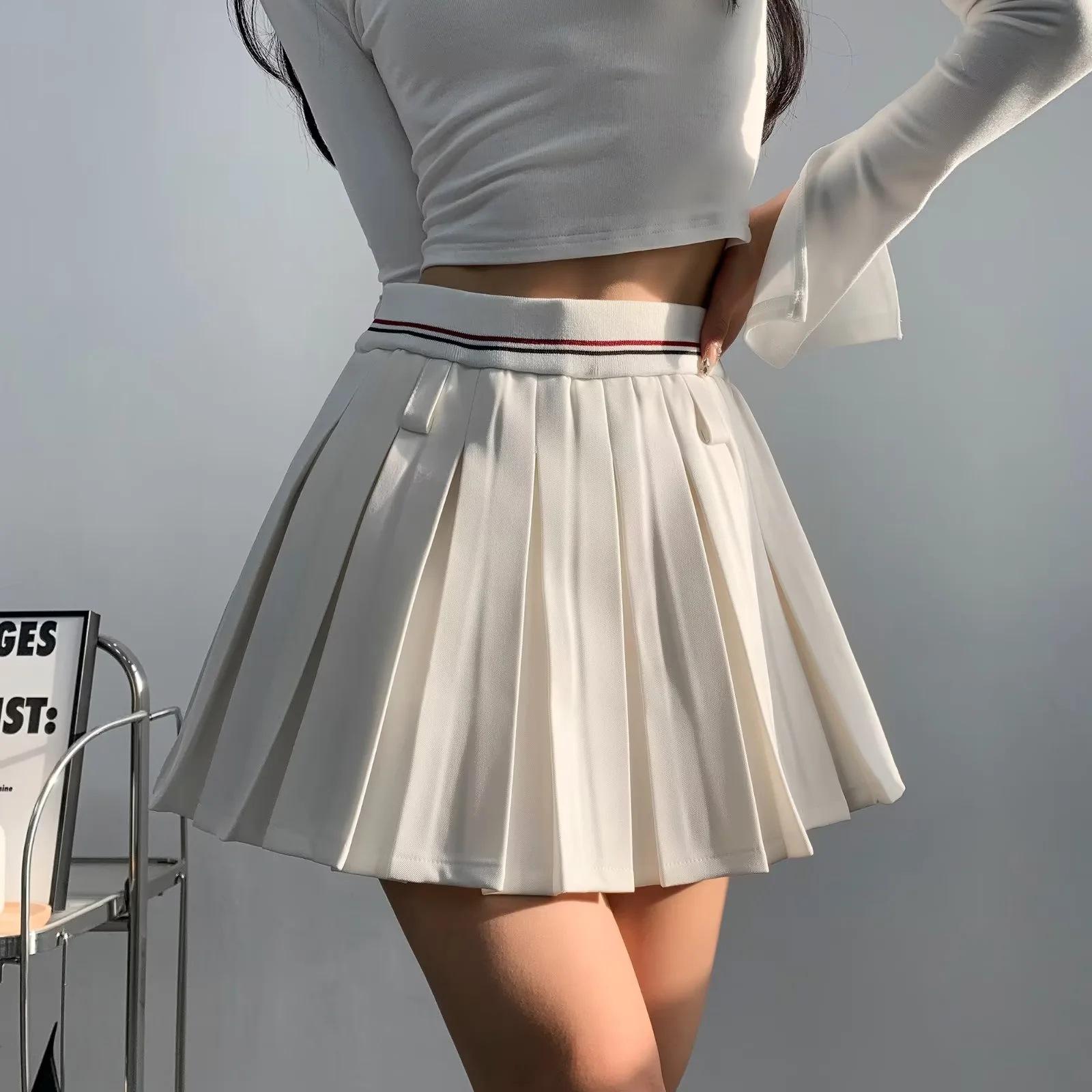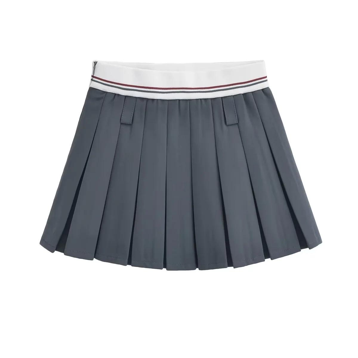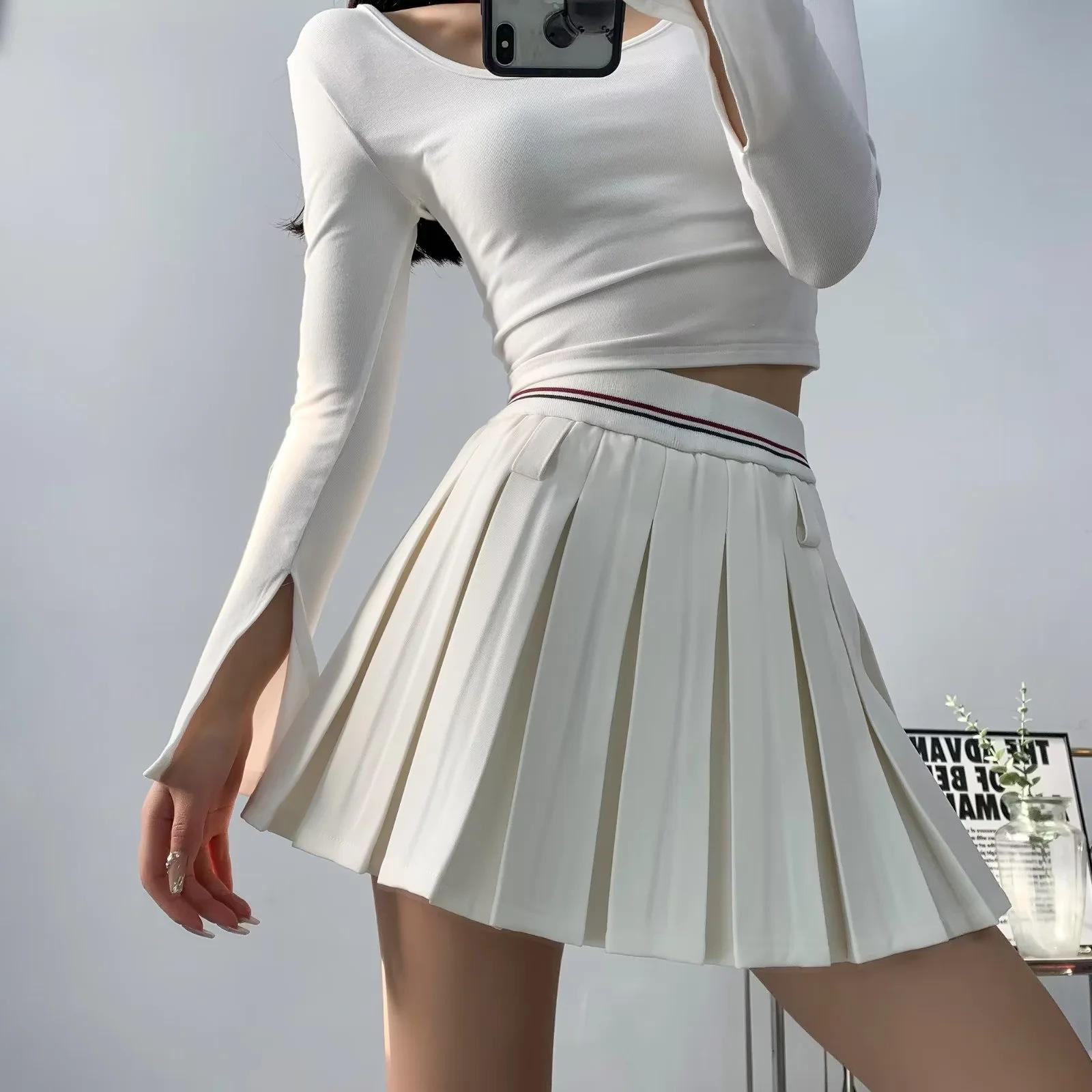Falda plisada de retazos a rayas para primavera y verano 2022, estilo europeo y americano, con cintura elástica, ajustada y sexy.