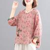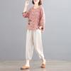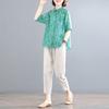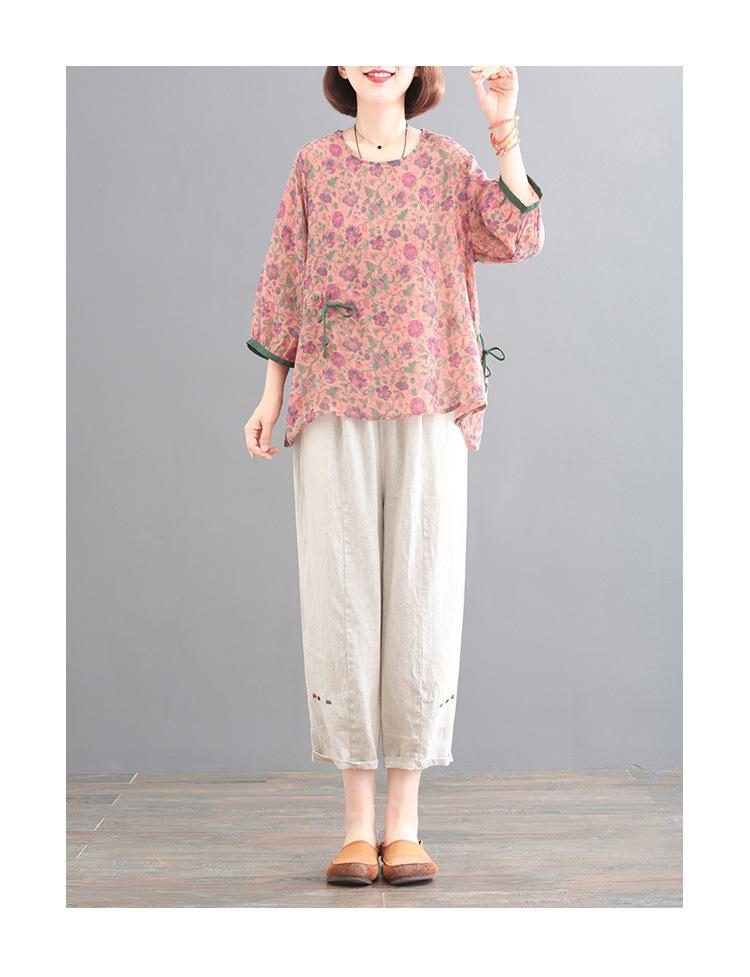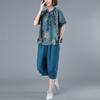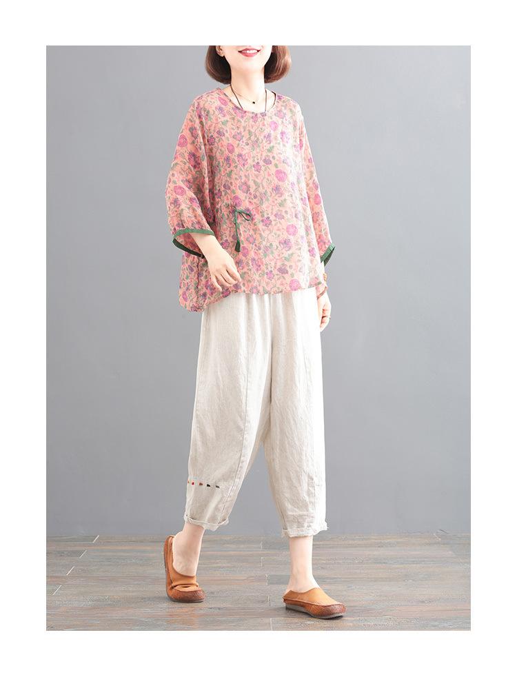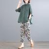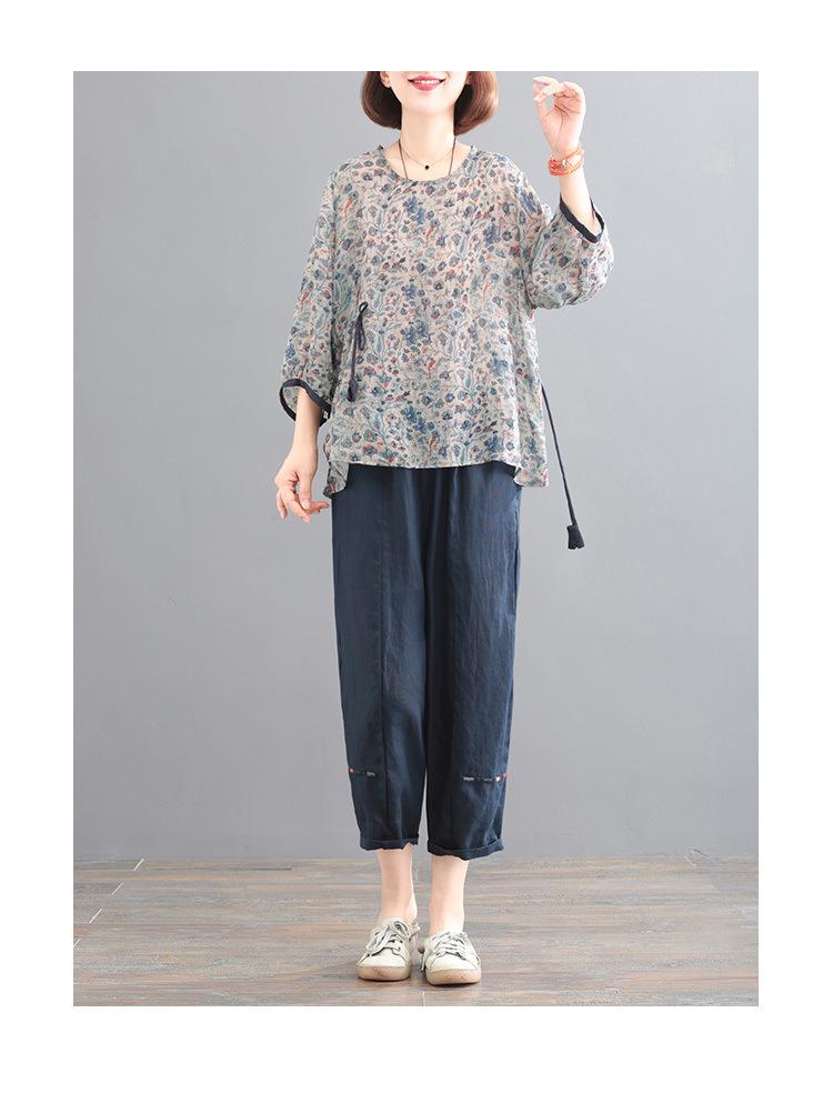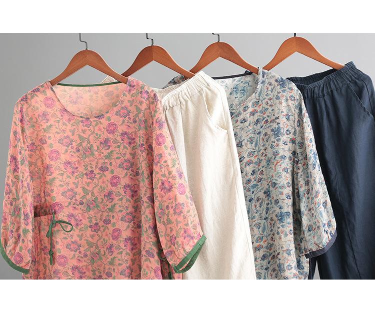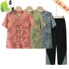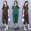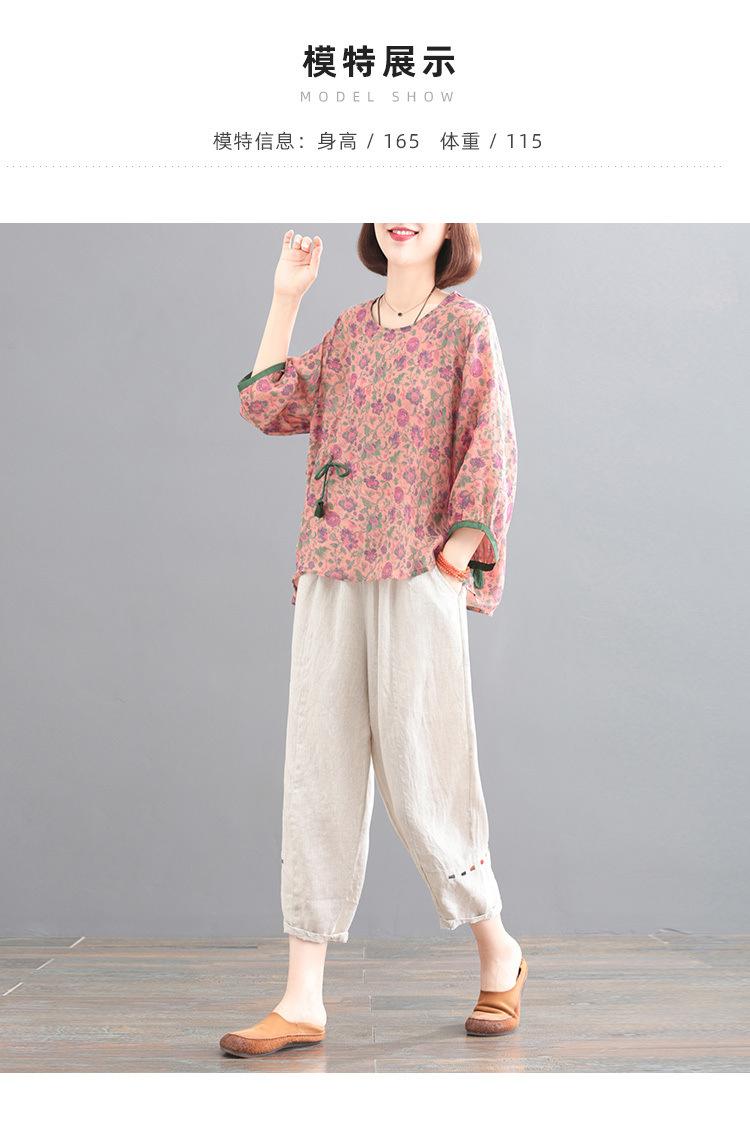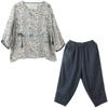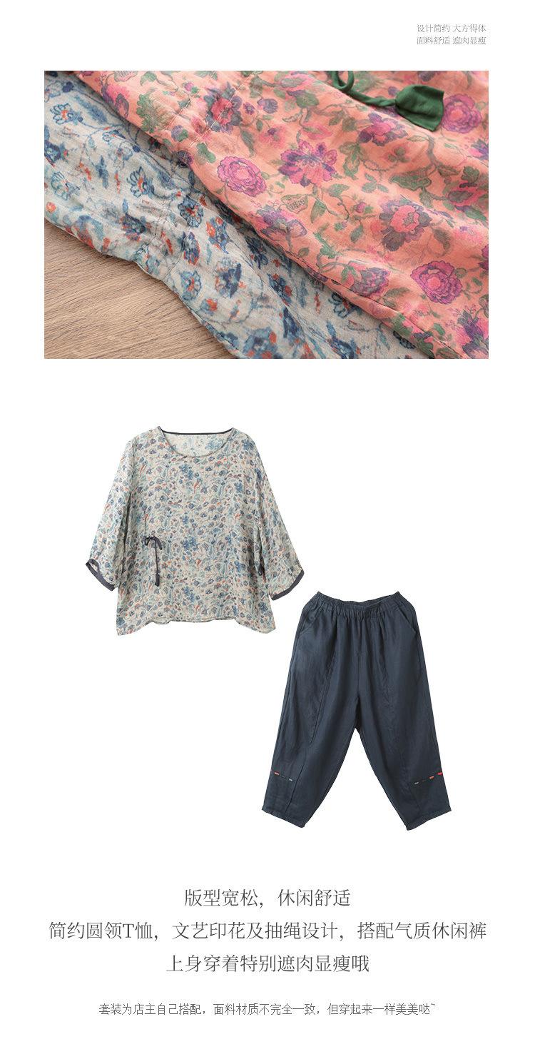Verano Nuevo Estilo Estilo Coreano Talla Grande Cubre Carne Estampado Conjunto de Dos Piezas Traje de Algodón y Lino para Mujer a la Moda