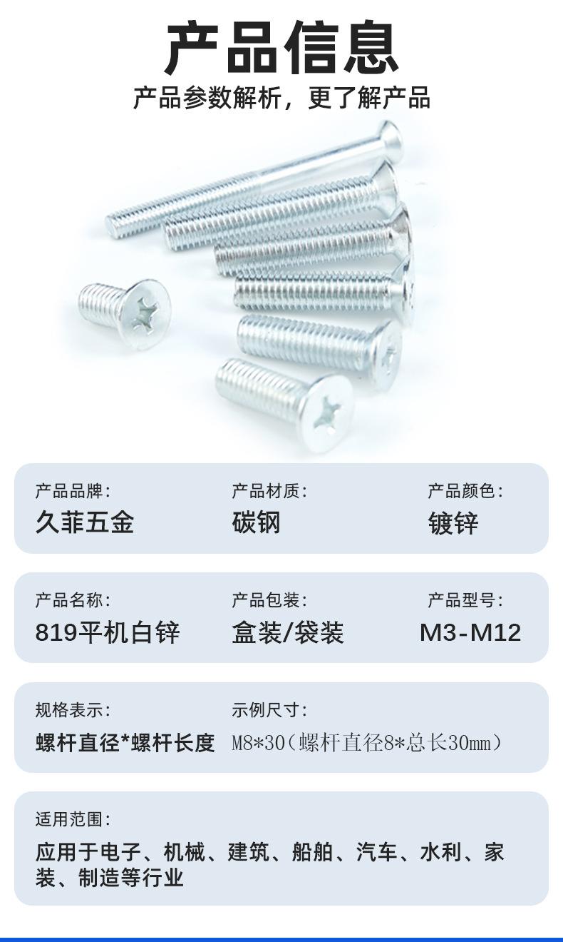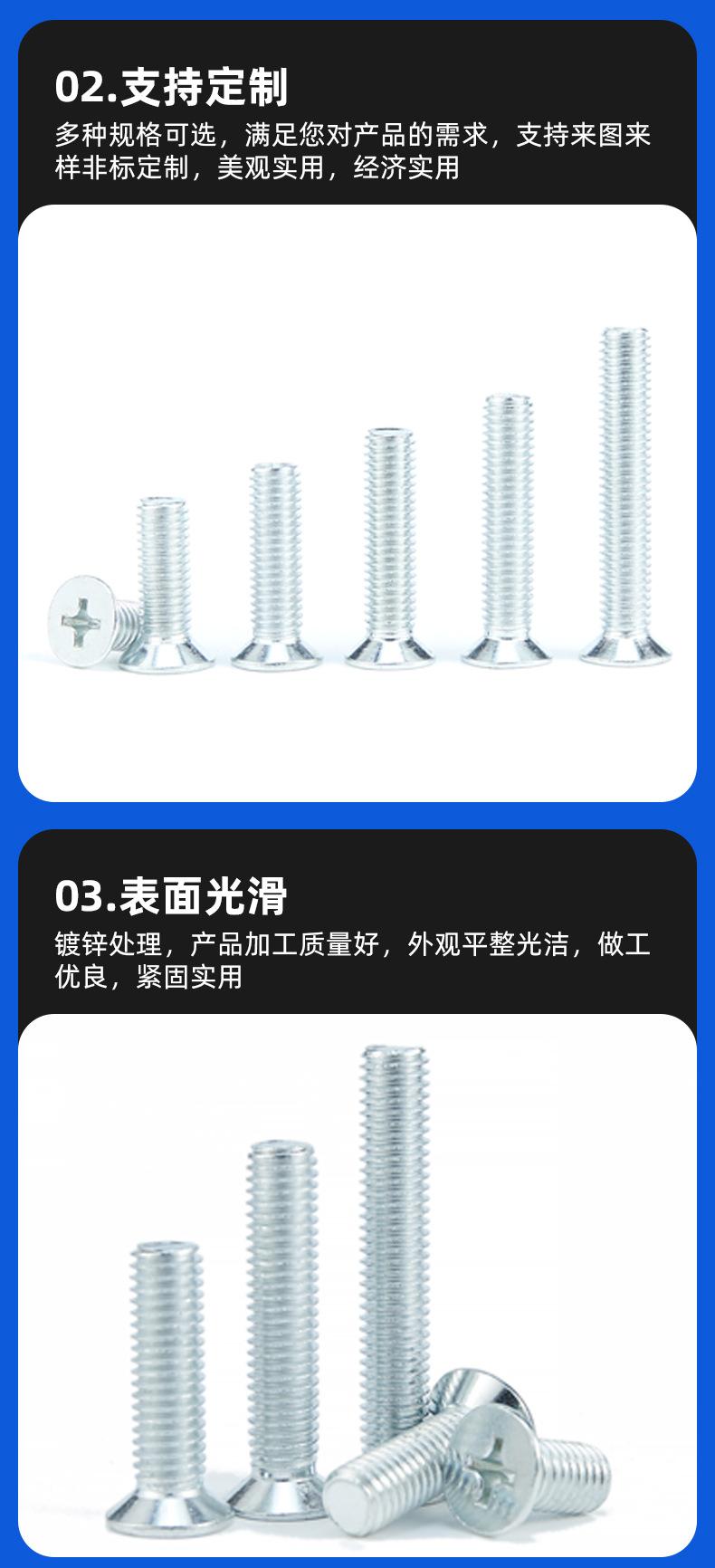 Tornillo de máquina plano galvanizado GB819 con cabeza avellanada, directo de fábrica Tornillo de máquina en cruz con cabeza avellanada M6 M8 M10