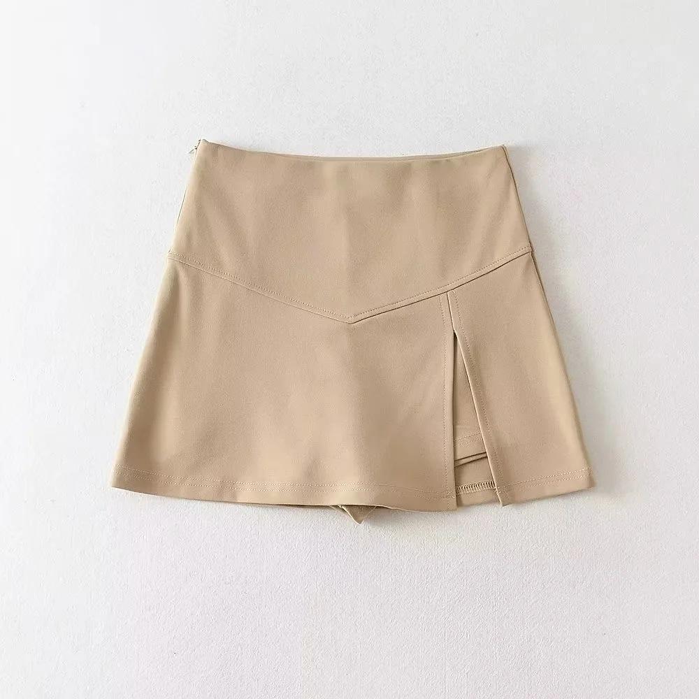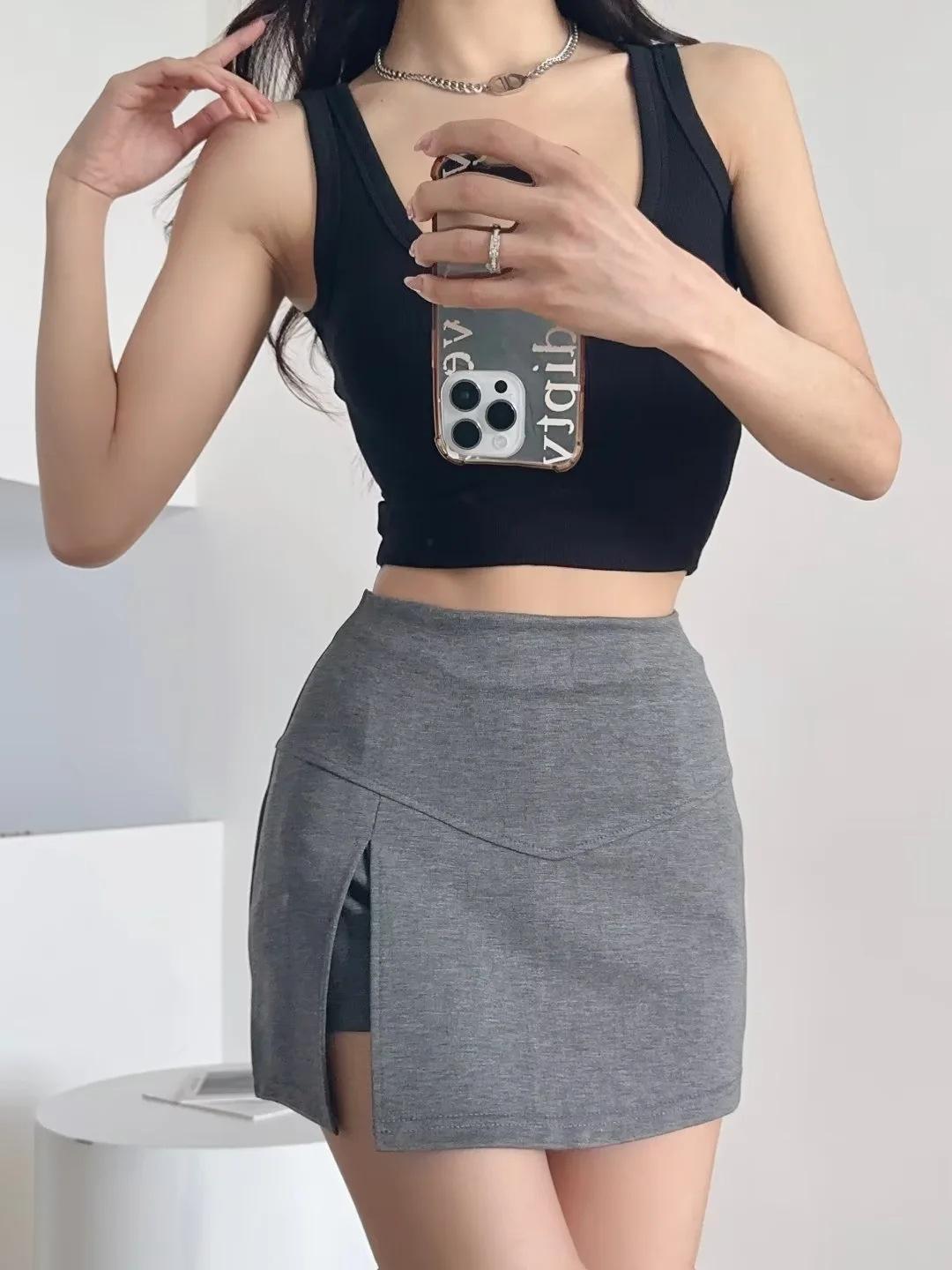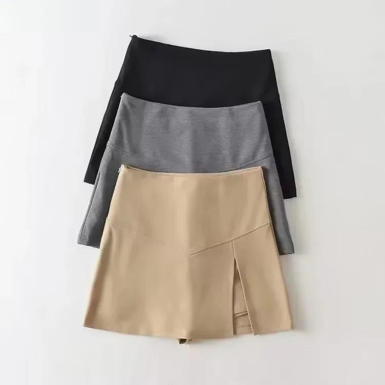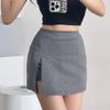 Falda anti-correr para chicas calientes, estilo americano, cintura alta, pierna larga en forma de V, costuras laterales, abertura en forma de A, falda de cadera pura