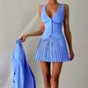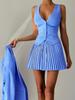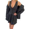 Tendencia europea y americana en transfronterizos nuevo traje sexy de moda de color sólido con cuello en V sin mangas chaleco falda plisada dos