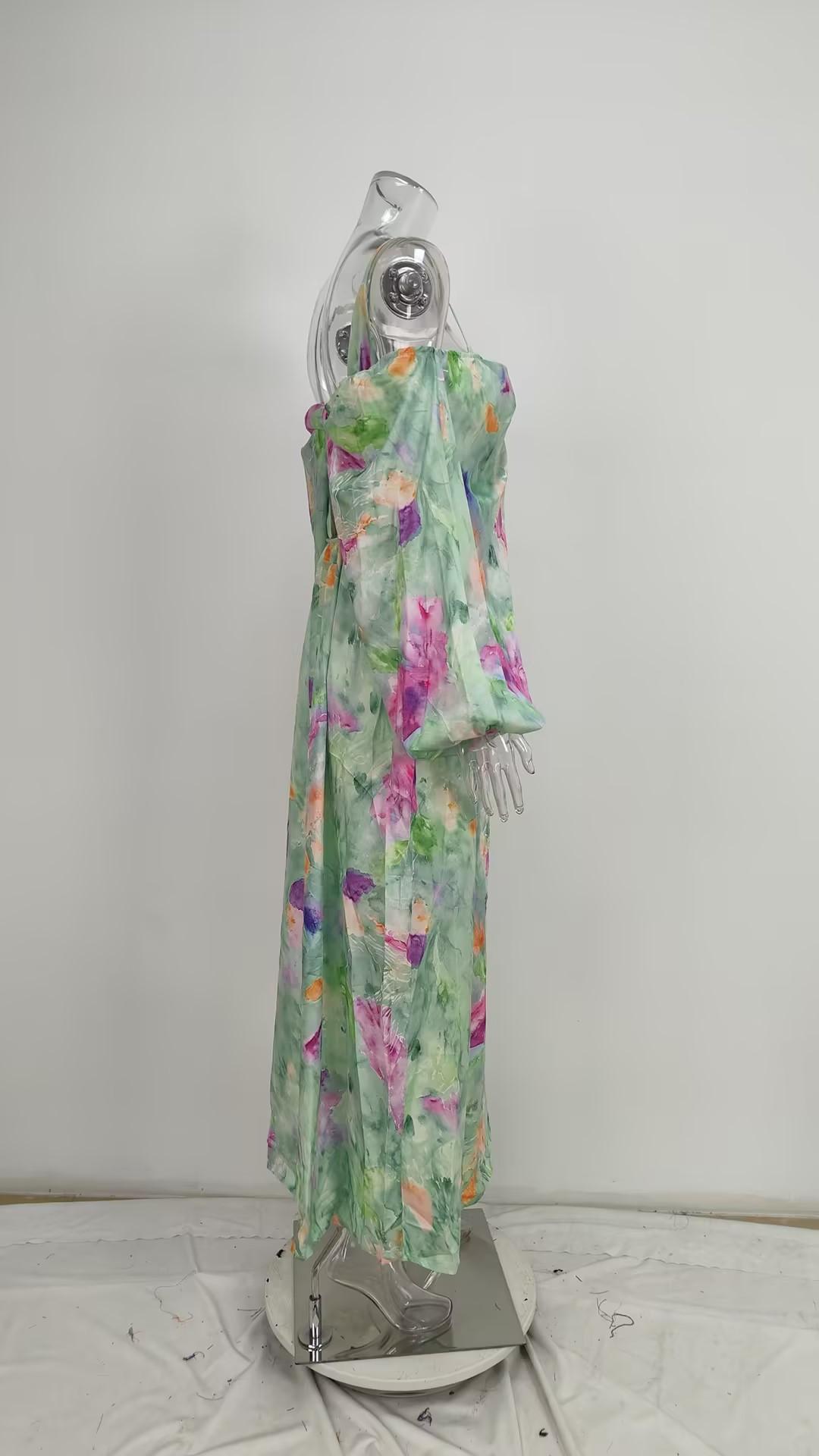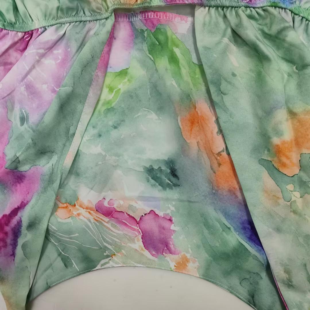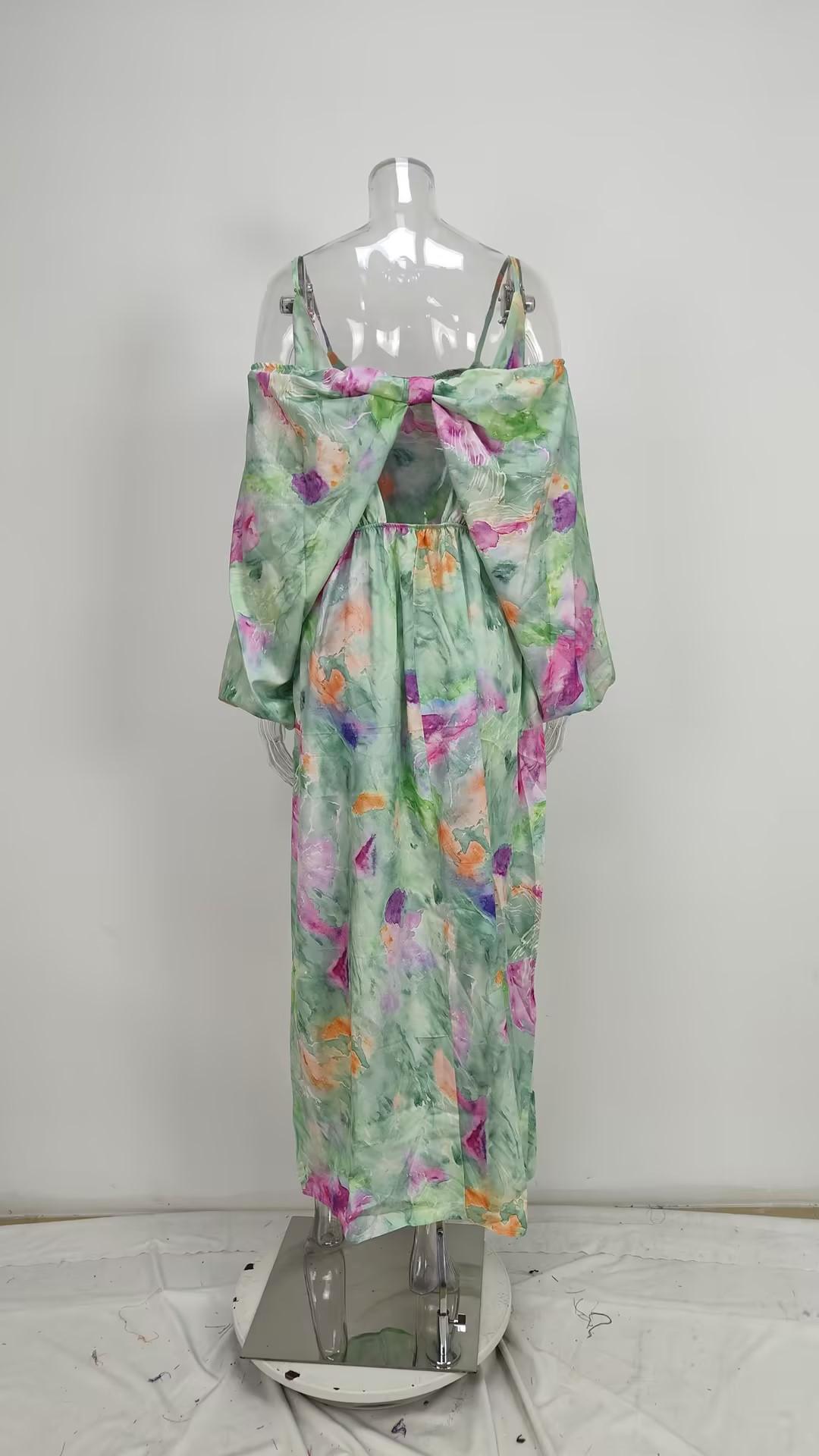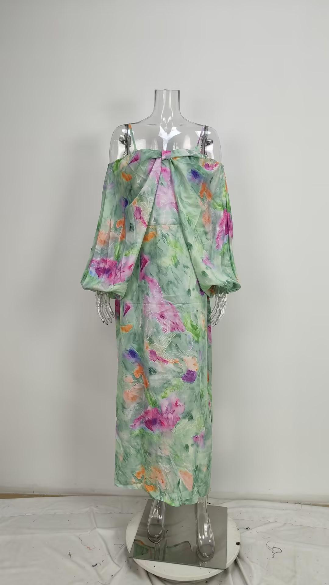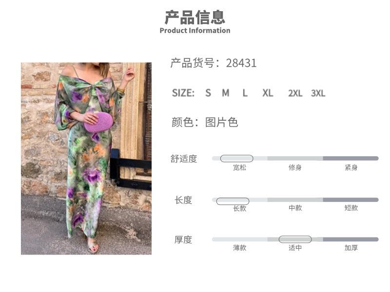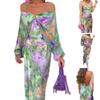 Ropa Nueva de Primavera 2025 Europea y Americana Elegante Sexy Un Hombro Teñido Anudado Estampado Tirantes Chal Traje de Moda para Mujer