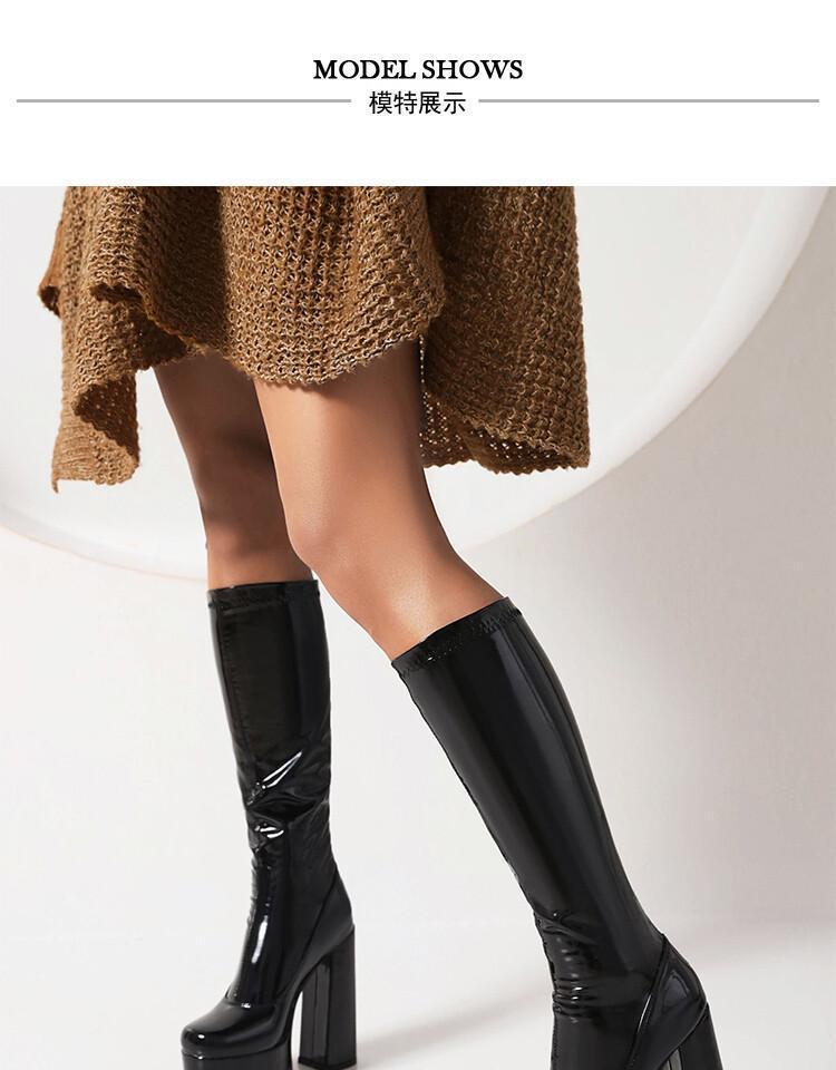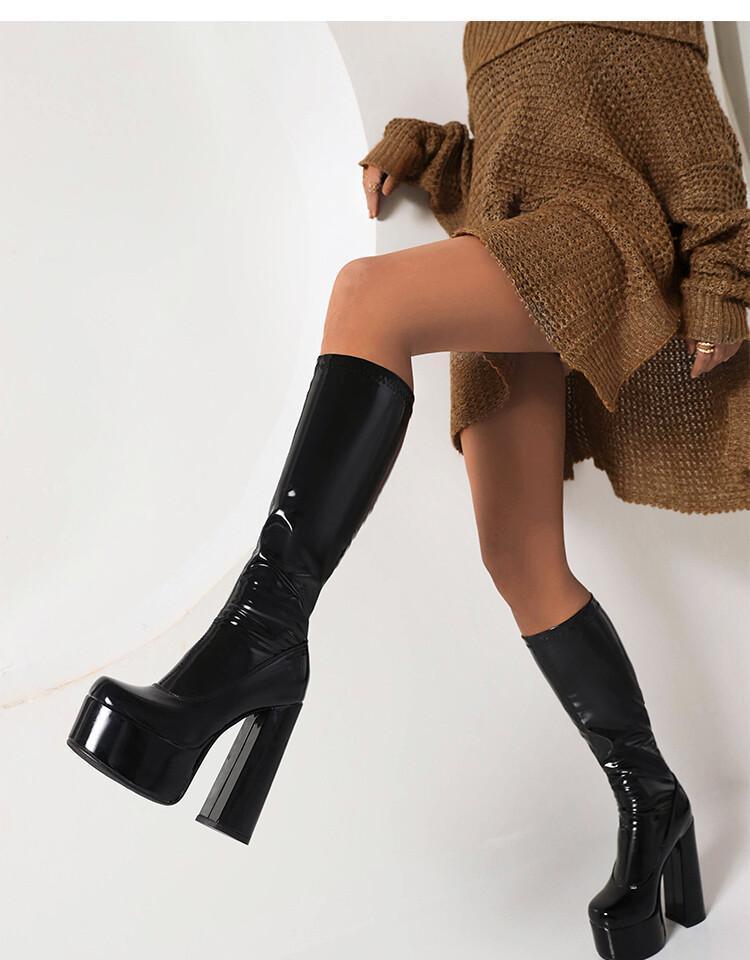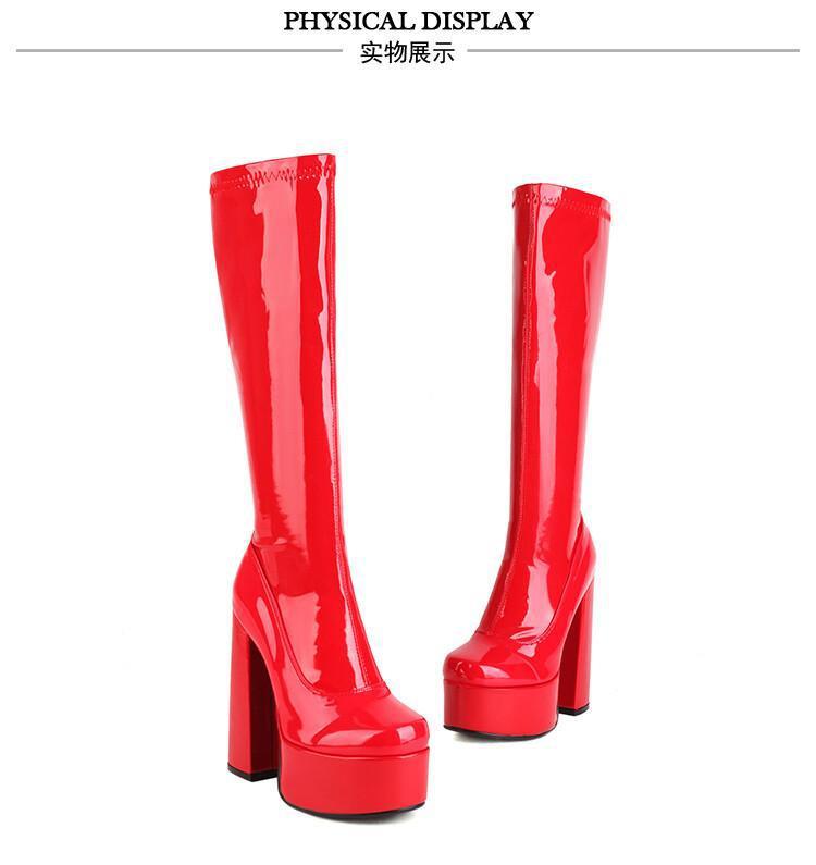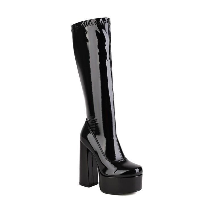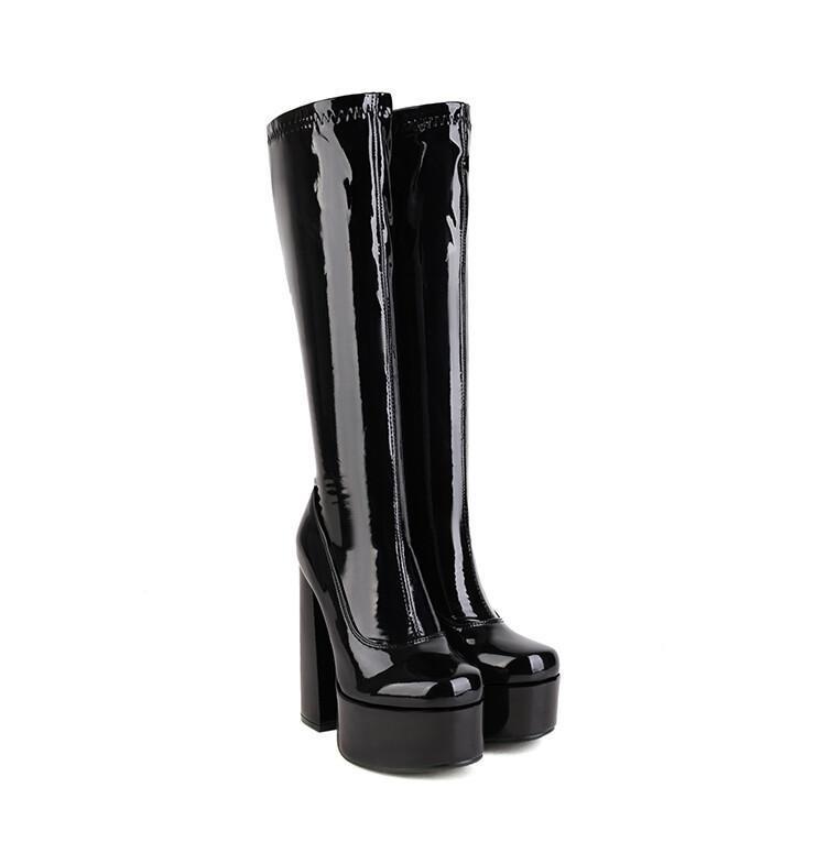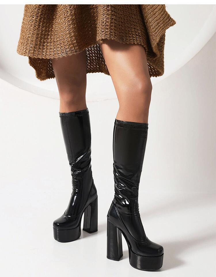 Botas de punta redonda Yingmeier para mujer, otoño e invierno 2022, botas altas de tacón grueso, botas de caballero, botas largas de charol hasta la rodilla