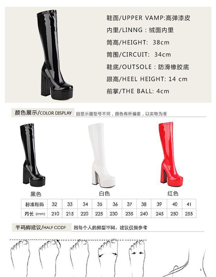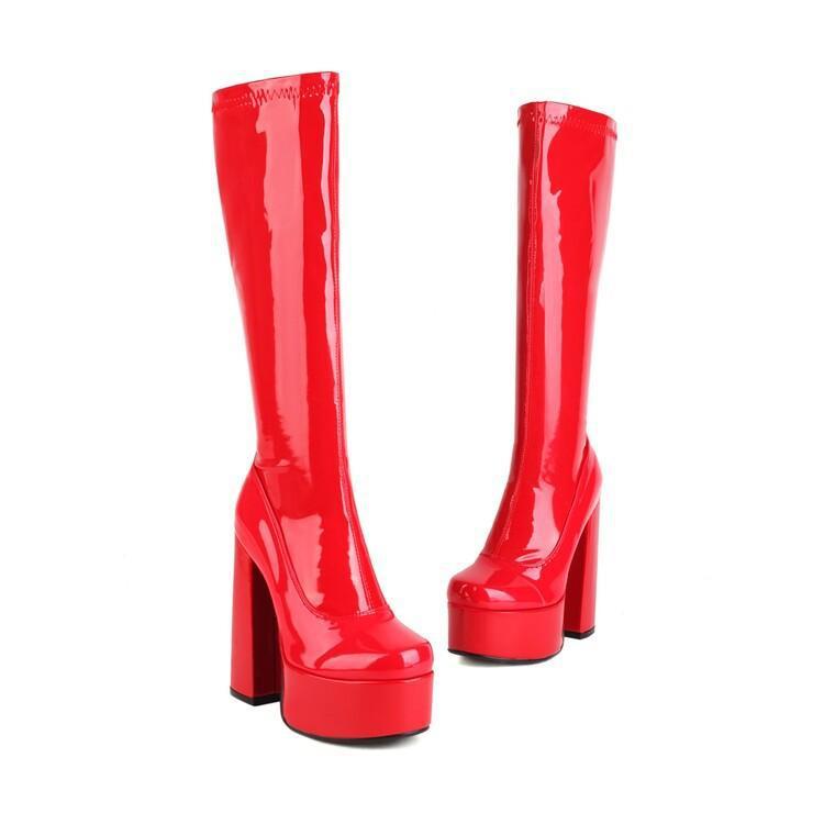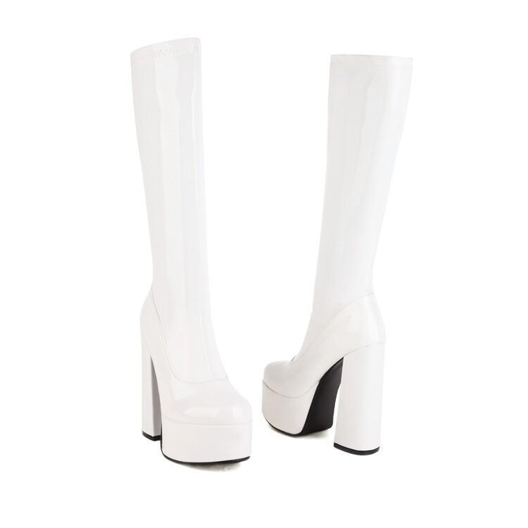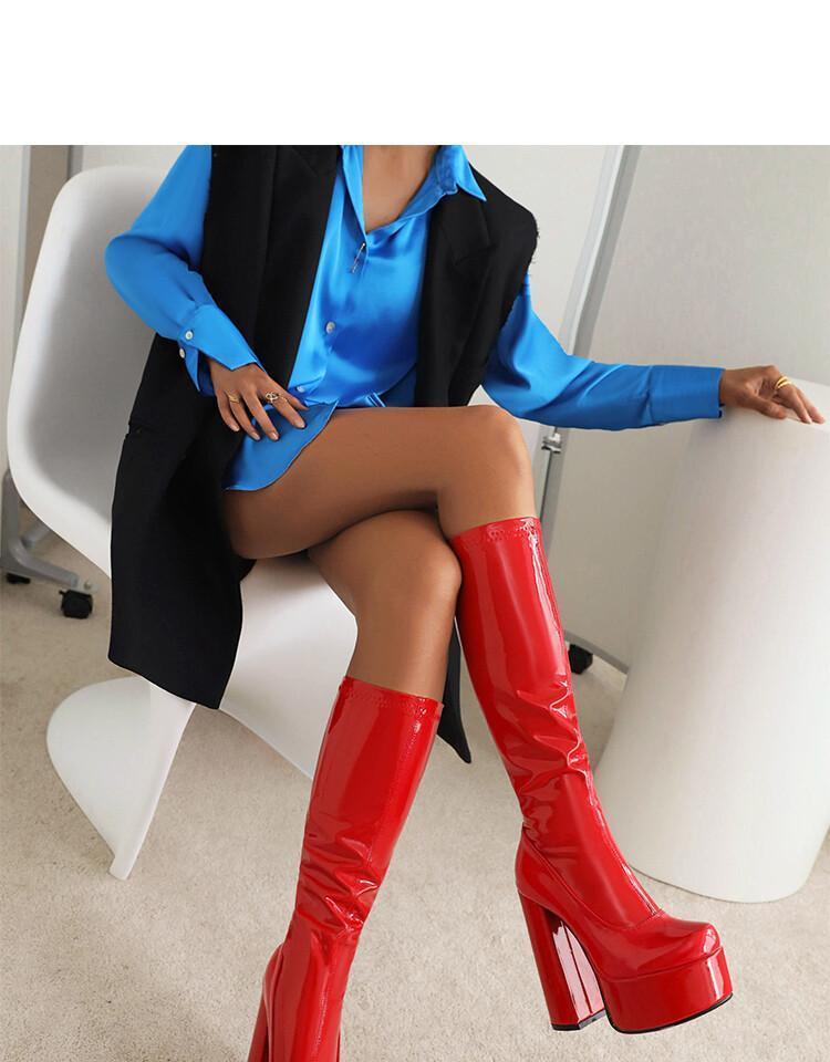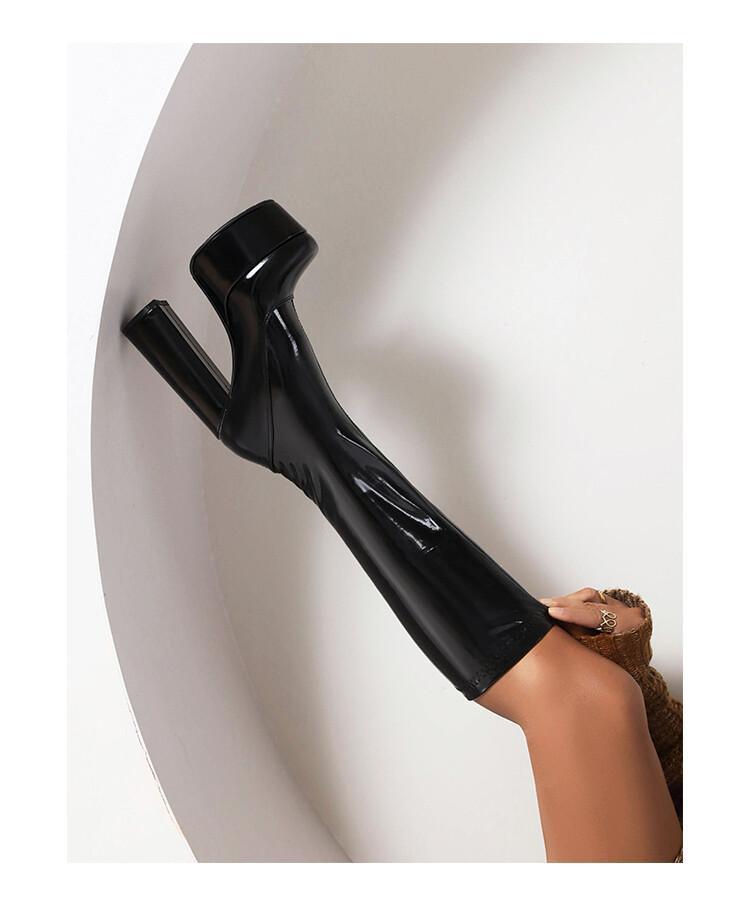 Botas de punta redonda Yingmeier para mujer, otoño e invierno 2022, botas altas de tacón grueso, botas de caballero, botas largas de charol hasta la rodilla