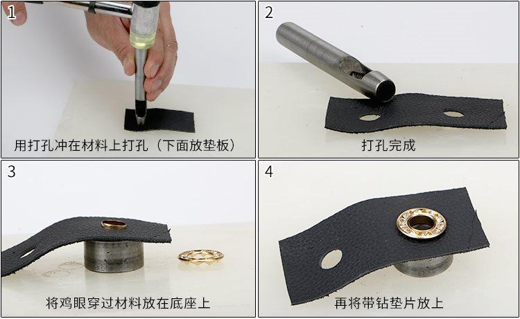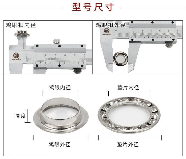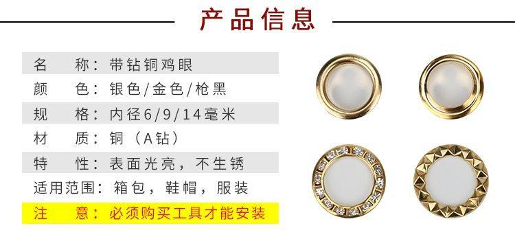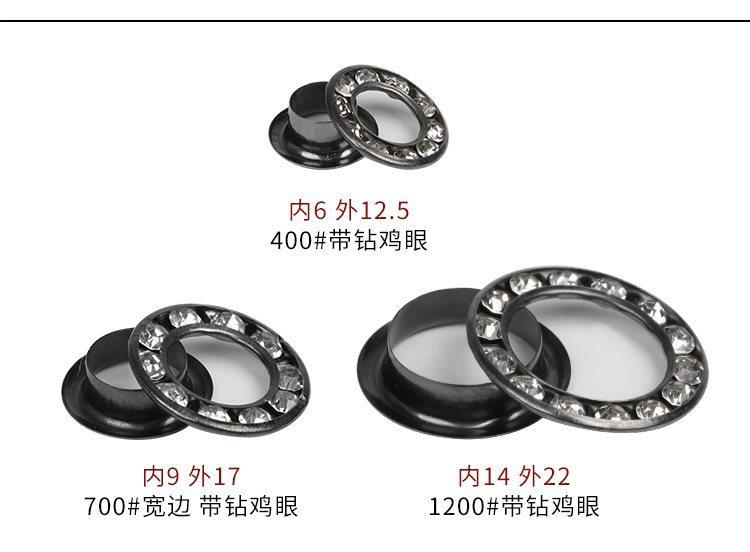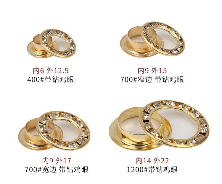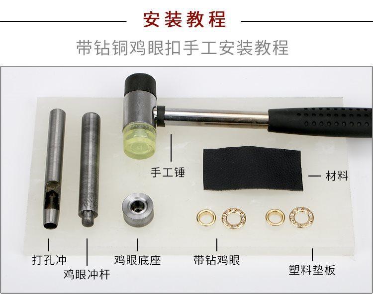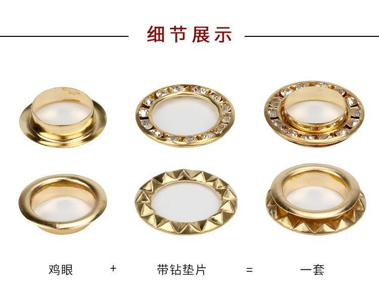 Hebilla de ojo de aire de cobre con incrustaciones de diamante con juego de herramientas de instalación de hebilla de ojo de taladro, hebilla de ojo de zapato, remache hueco, molde de hebilla de prenda