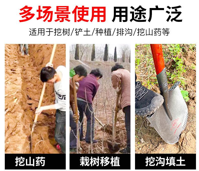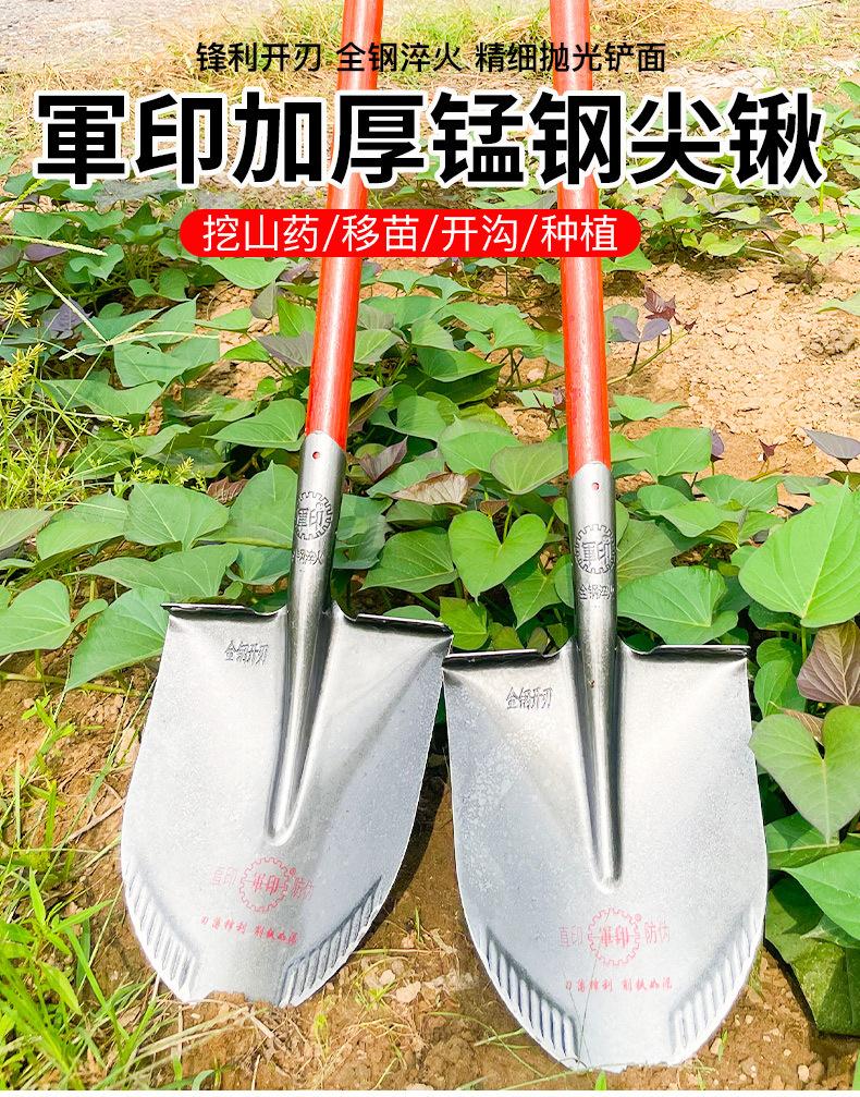 Venta al por mayor de palas de acero puntiagudas de acero al manganeso, palas gruesas para excavar árboles, herramientas agrícolas, palas grandes y puntiagudas.