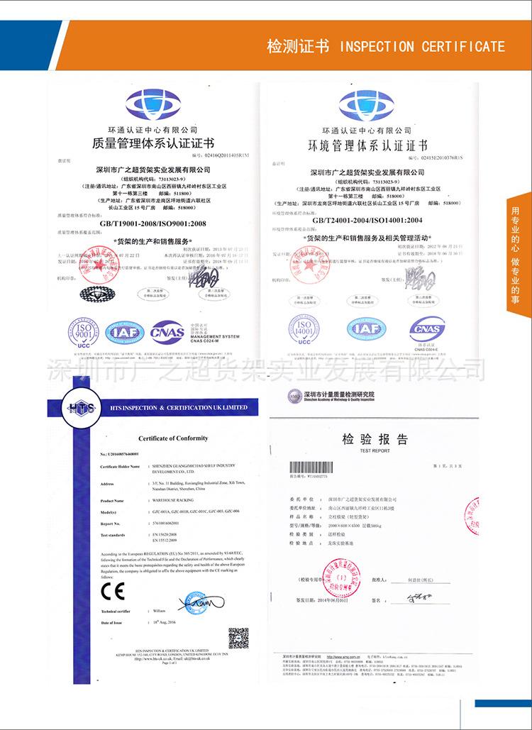 Nuestra empresa es una de las primeras empresas en la industria de estanterías en pasar la certificación del sistema de calidad ISO9001:2000.