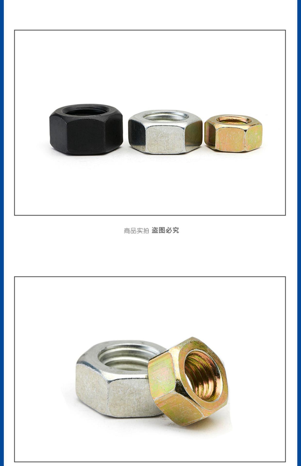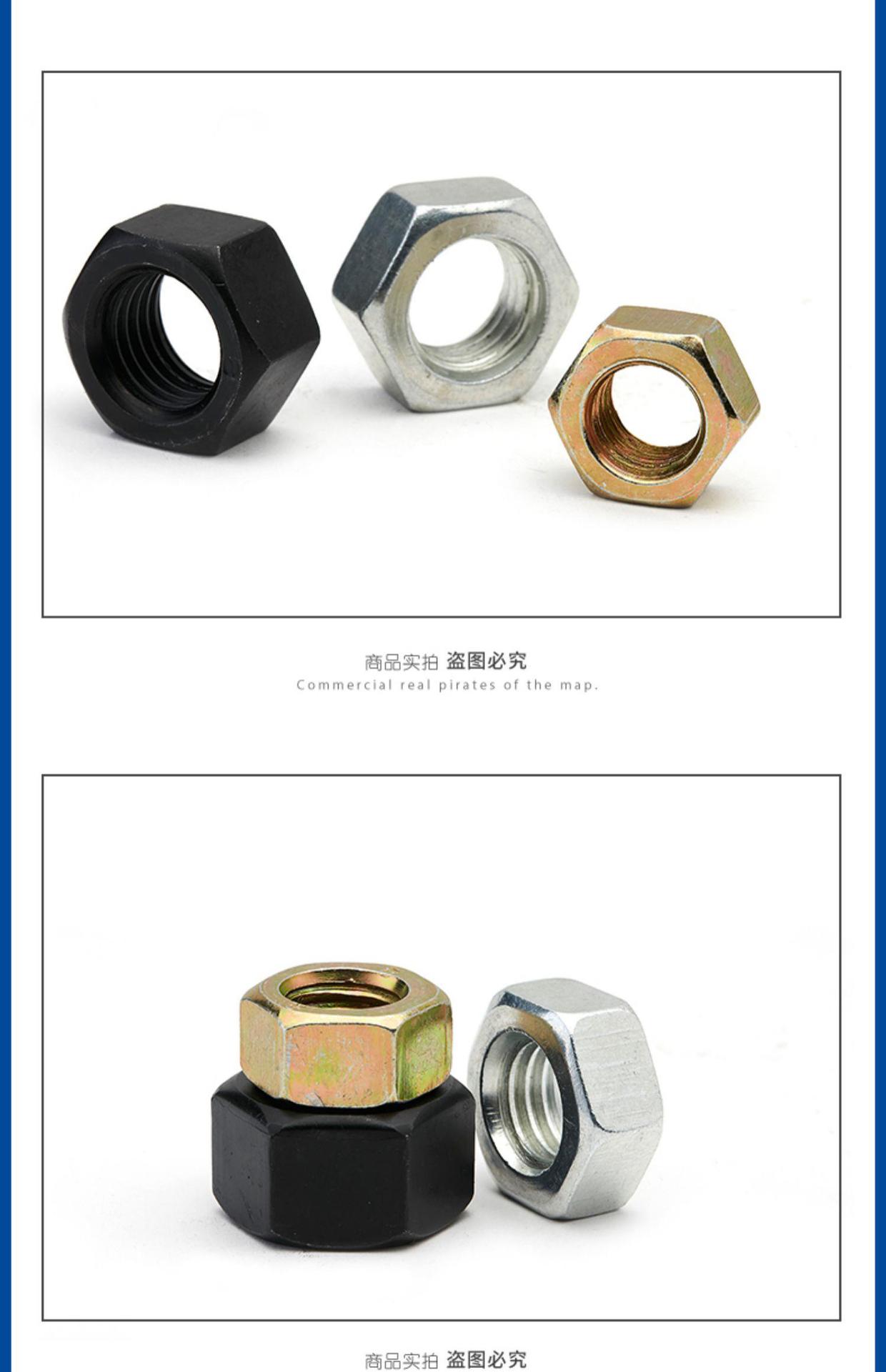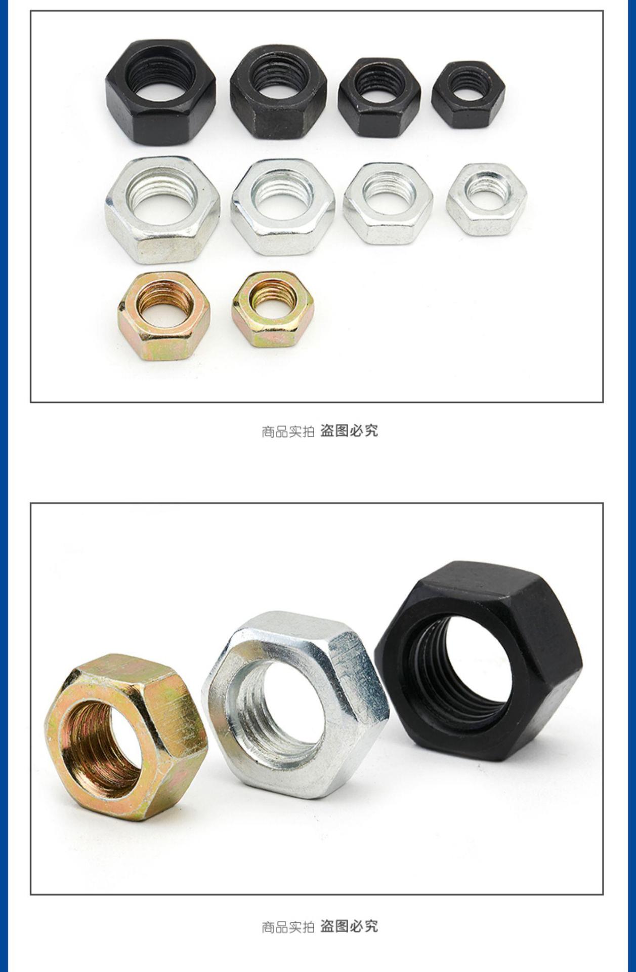 Tuerca hexagonal galvanizada de grado 4.8, tuerca hexagonal exterior coloreada de grado 8, tuerca hexagonal ennegrecida M2-M56 7L
