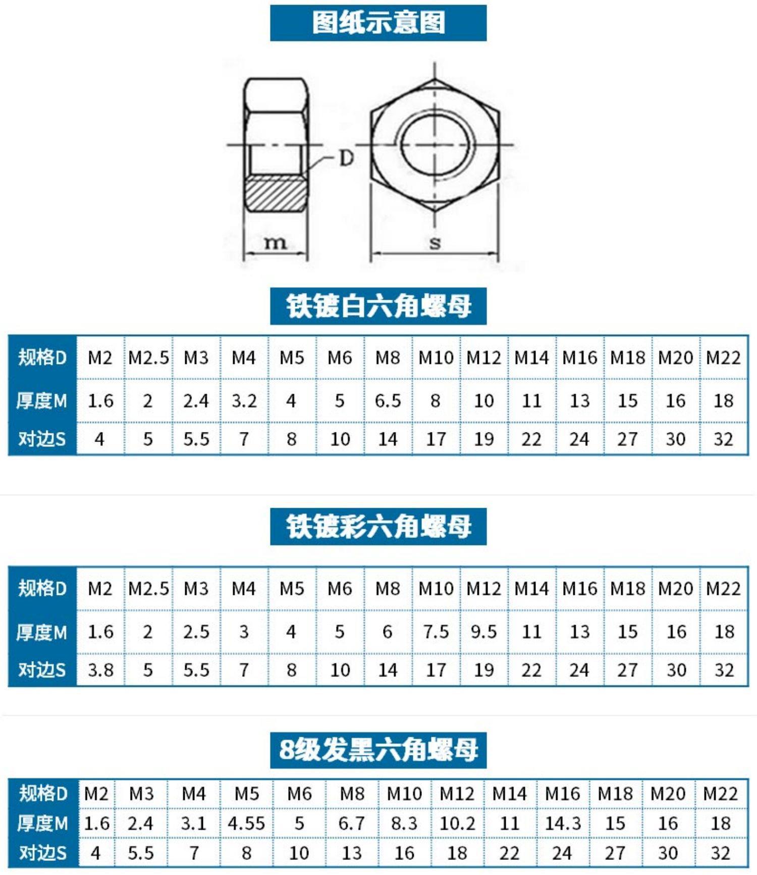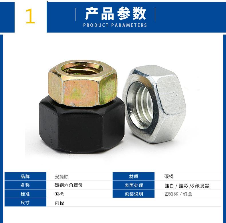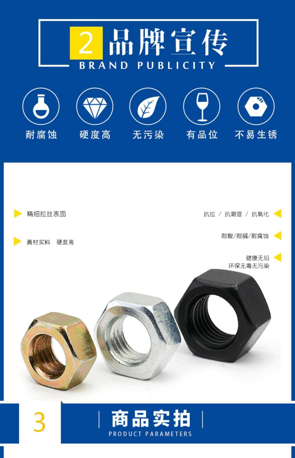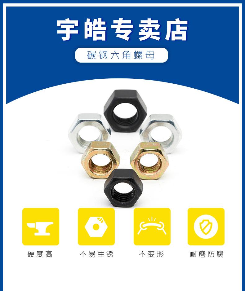 Tuerca hexagonal galvanizada de grado 4.8, tuerca hexagonal exterior coloreada de grado 8, tuerca hexagonal ennegrecida M2-M56 7L