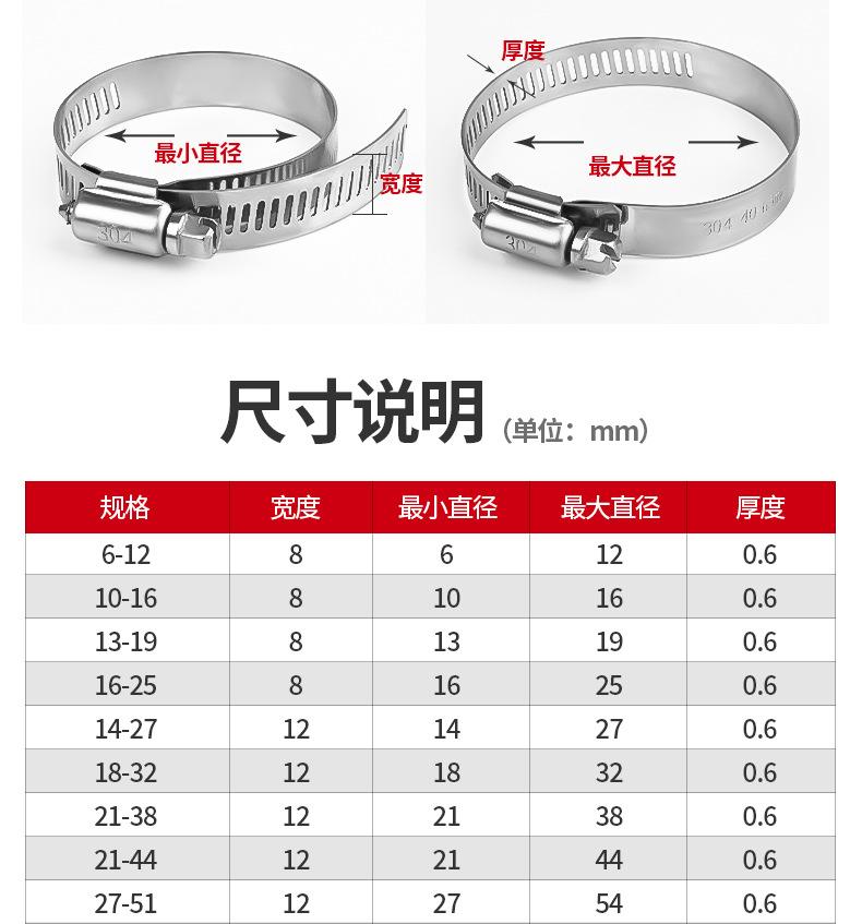 Abrazadera de gancho de acero inoxidable 304, abrazadera de garganta, abrazadera de tubería, abrazadera de tubería de agua, campana, tubería de gas, hebilla de tubería