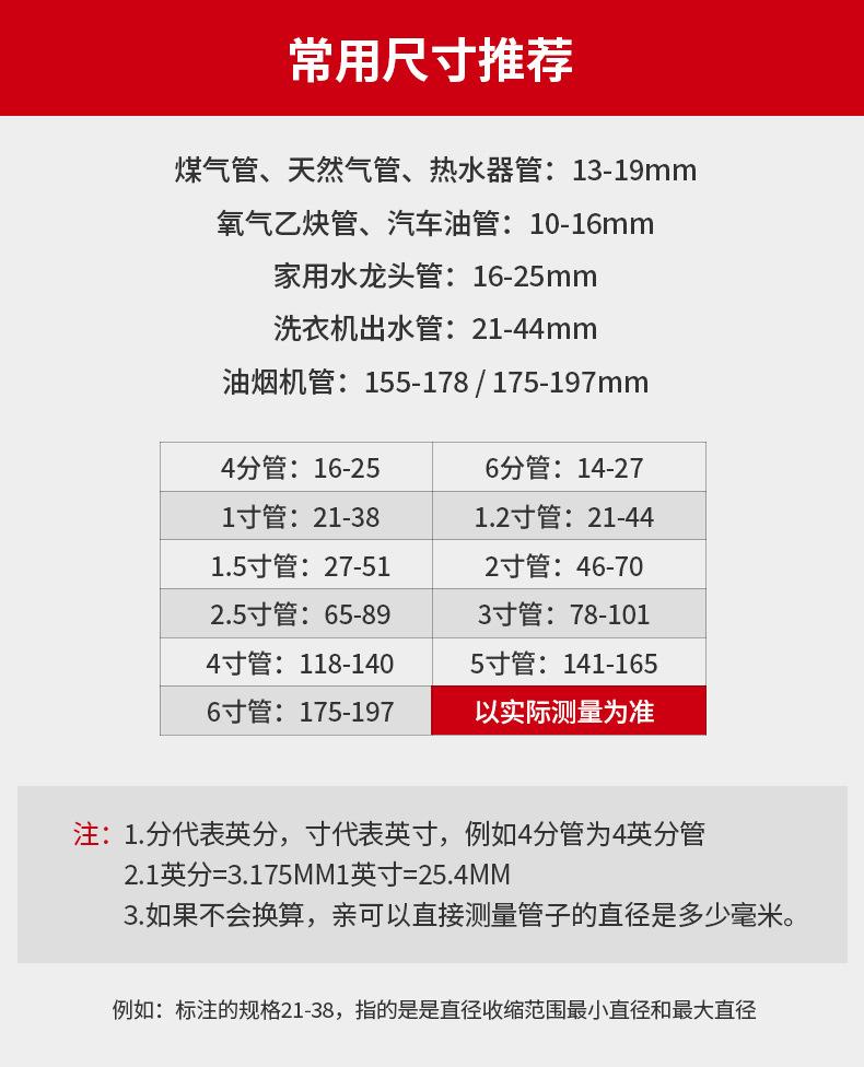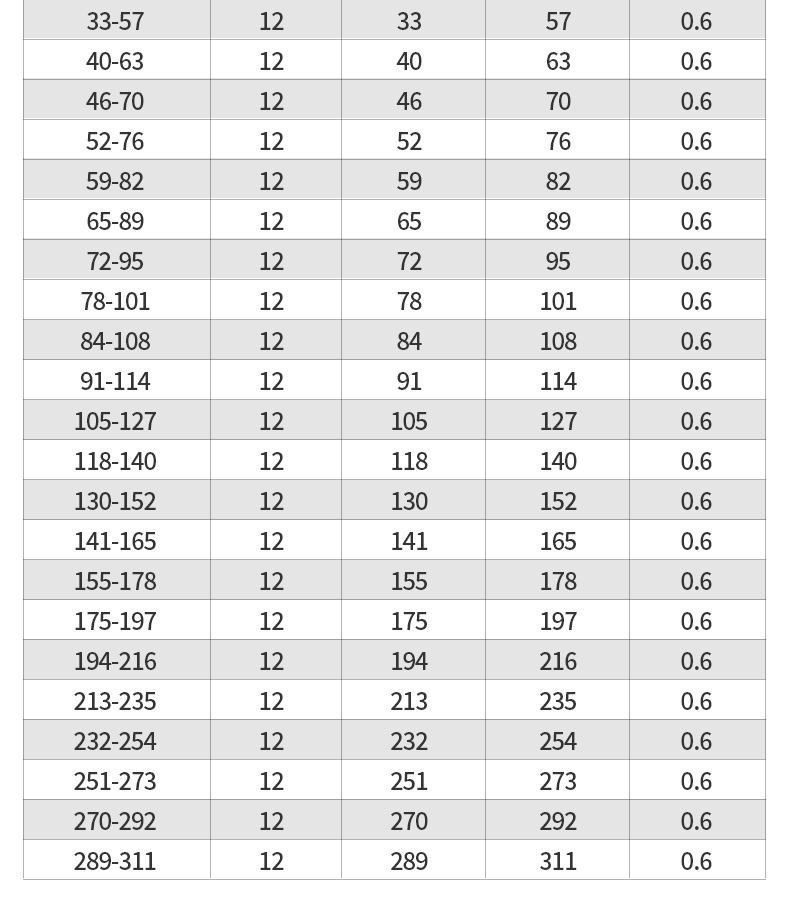 Diameter 6-12mm (1 piece) diameter 10-16mm (1 piece) diameter 13-19mm (1 piece) diameter 16-25mm
